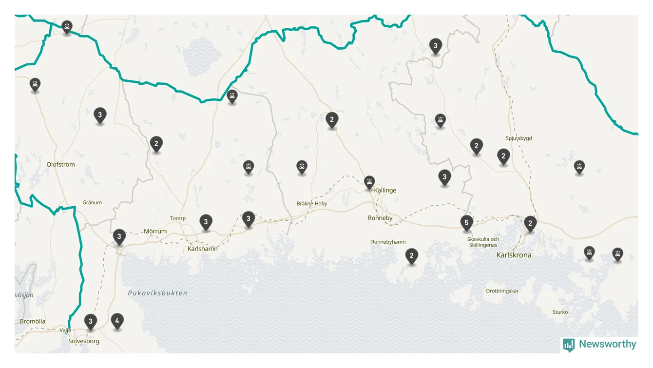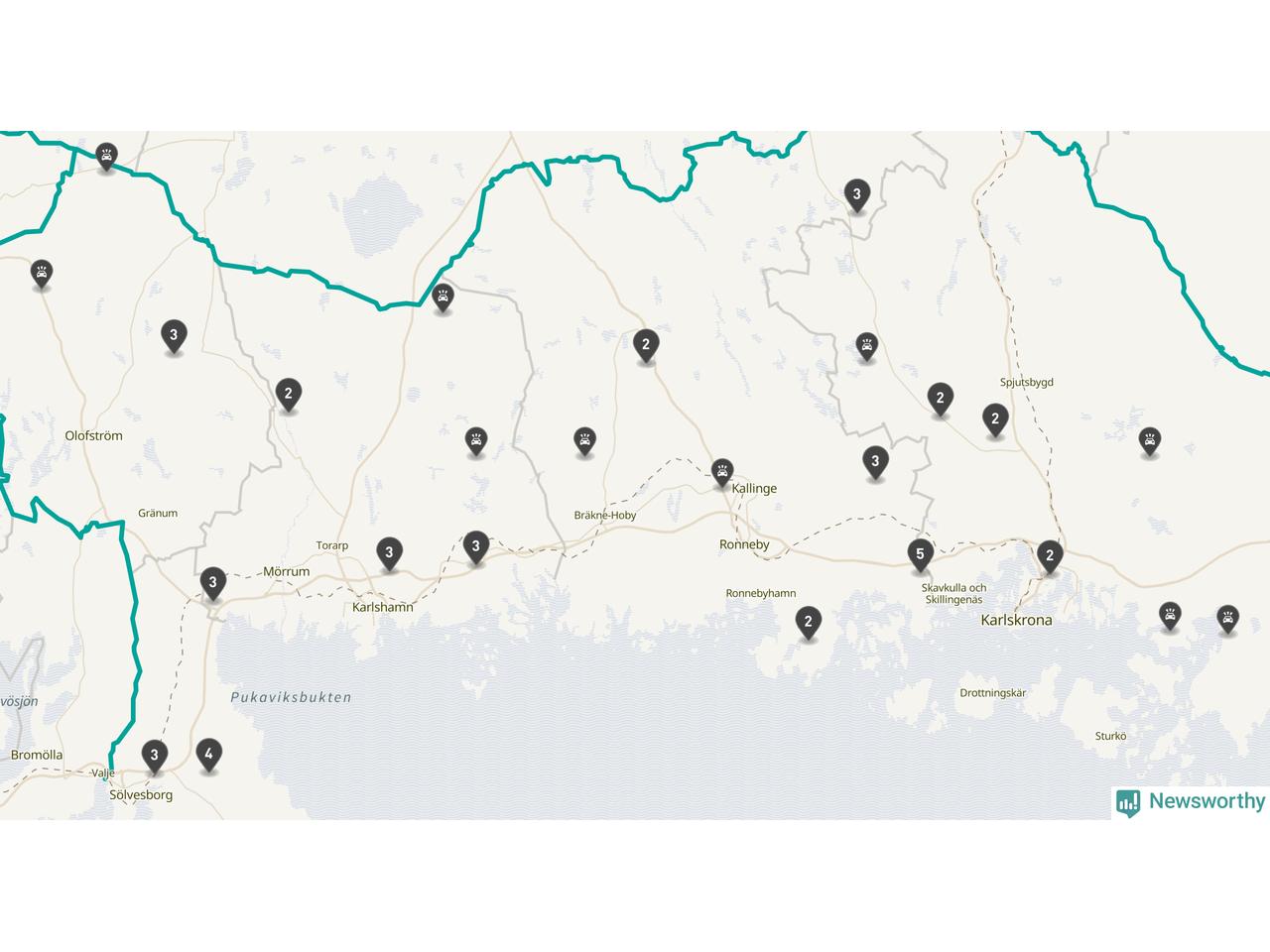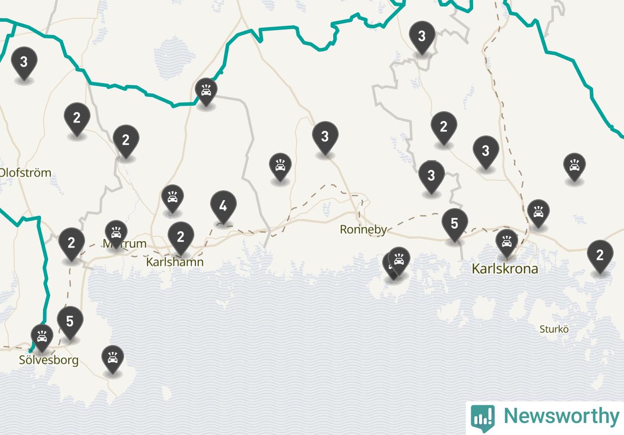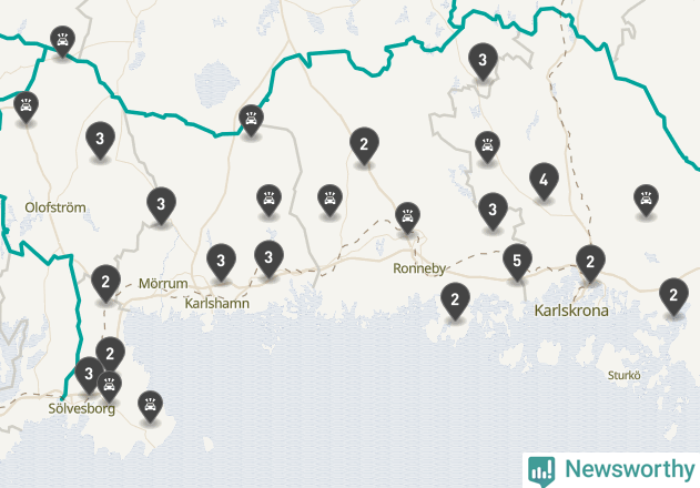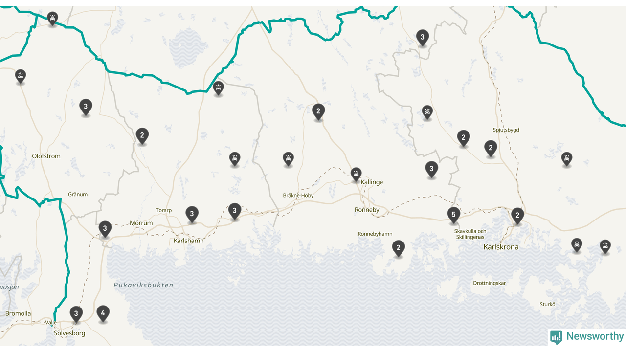 Av förra veckans viltolyckor inträffade sex längs eller nära E22. Det är också där flest viltolyckor brukat rapporteras det senaste decenniet.