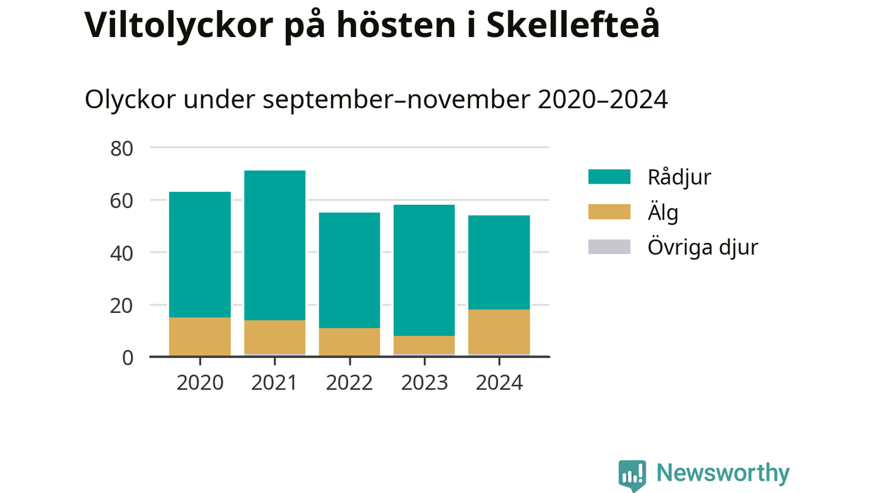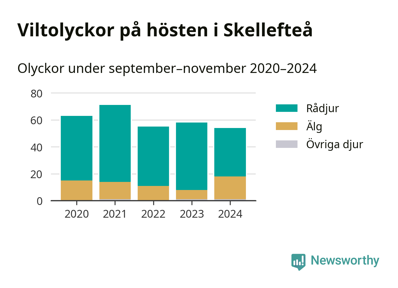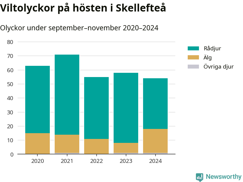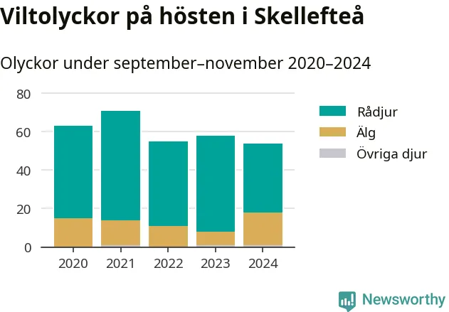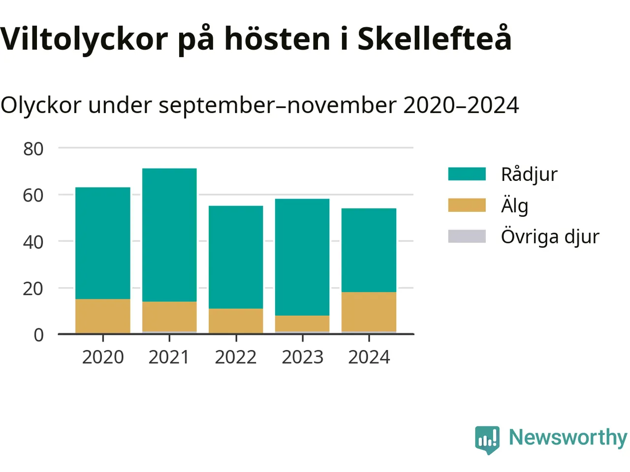 Under de senaste höstarna har antalet viltolyckor ökat i Sverige. I fjol höst noterades dock färst viltolyckor i Skellefteå hittills under 2020-talet, totalt 54 stycken.