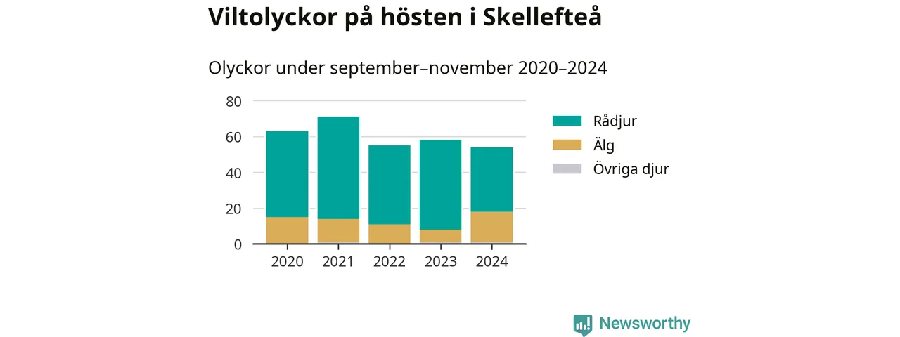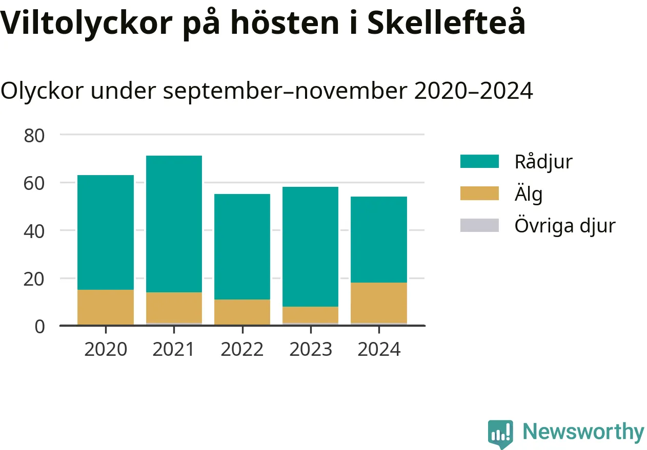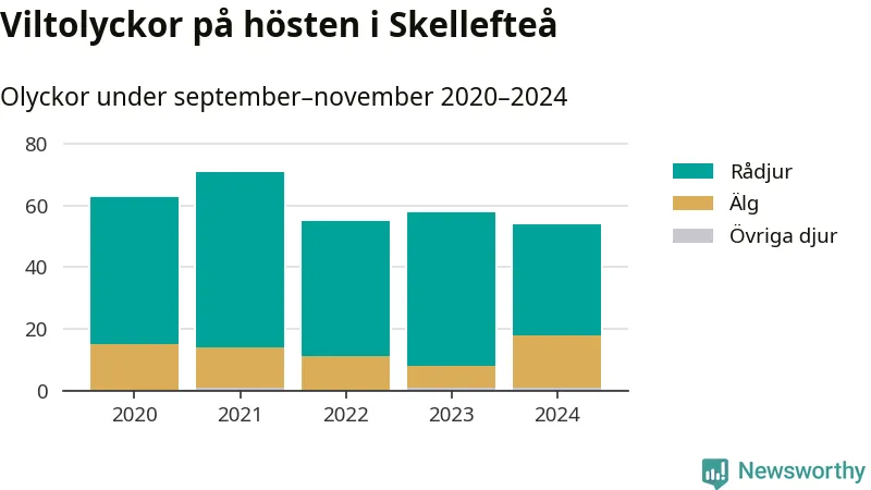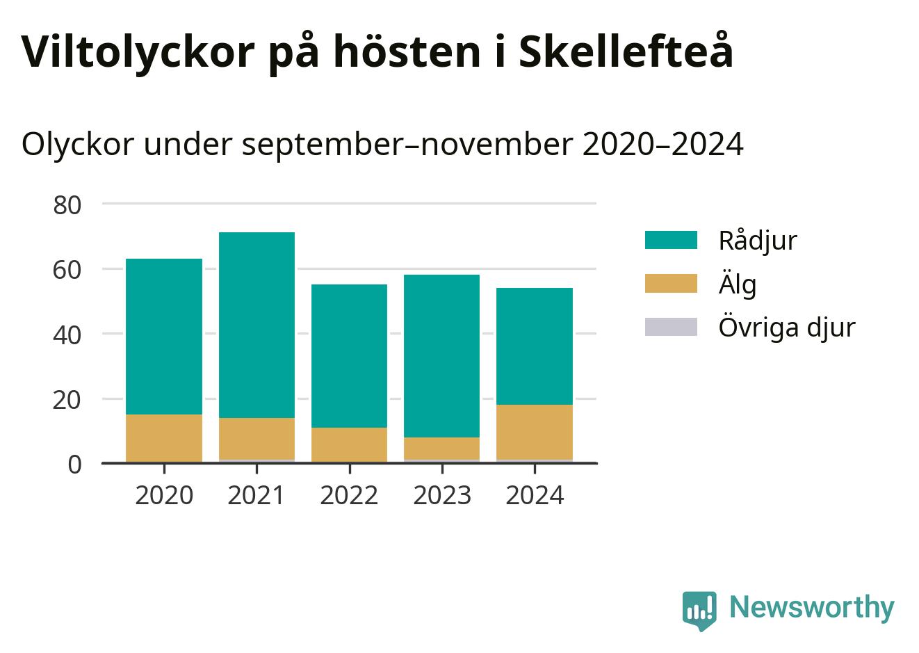 Under de senaste höstarna har antalet viltolyckor ökat i Sverige. I fjol höst noterades dock färst viltolyckor i Skellefteå hittills under 2020-talet, totalt 54 stycken.