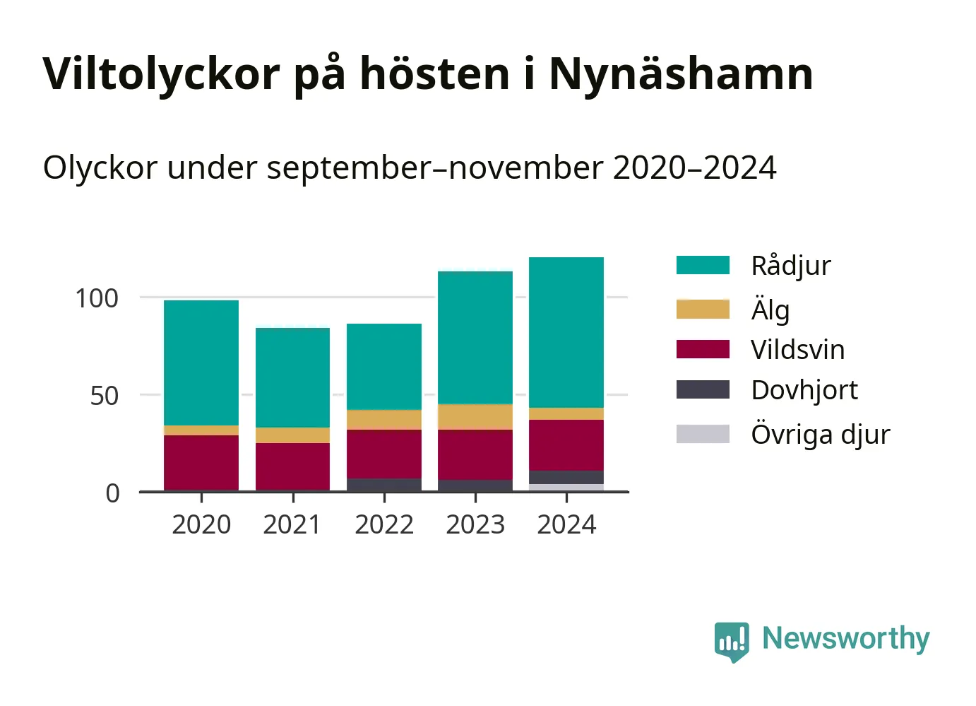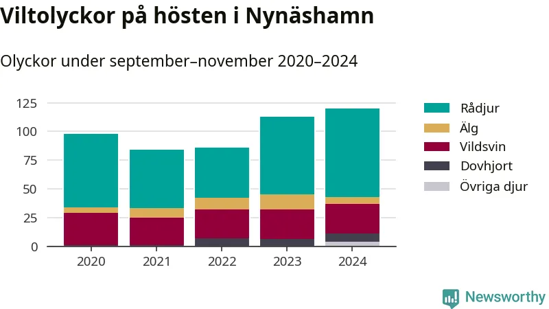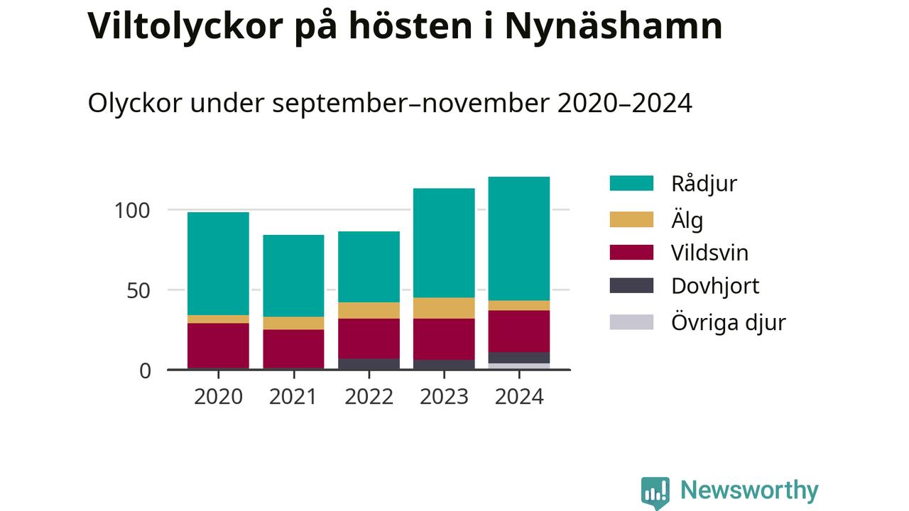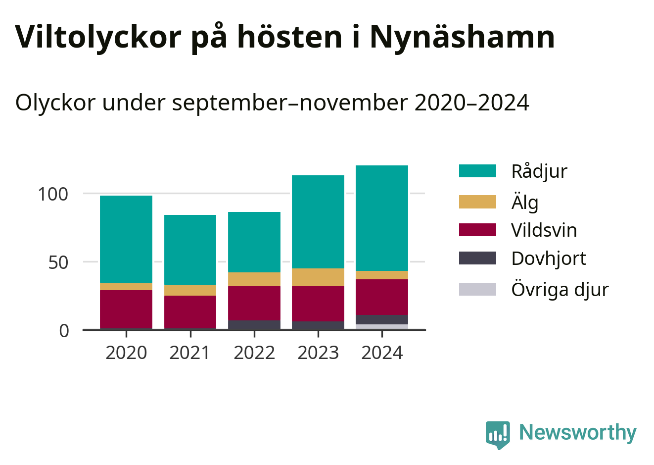 Under de senaste höstarna har antalet viltolyckor ökat i Sverige. I fjol höst noterades också flest viltolyckor i Nynäshamn hittills under 2020-talet, totalt 120 stycken.