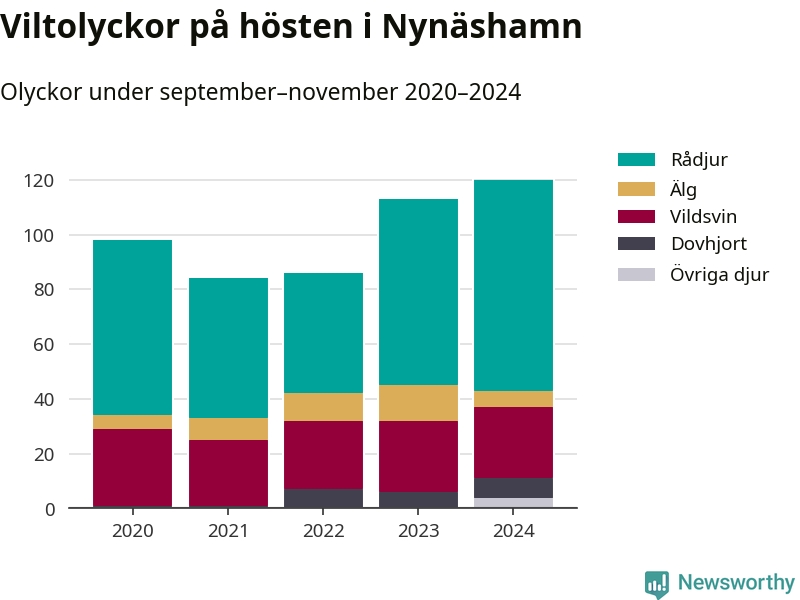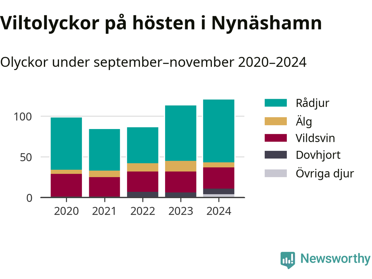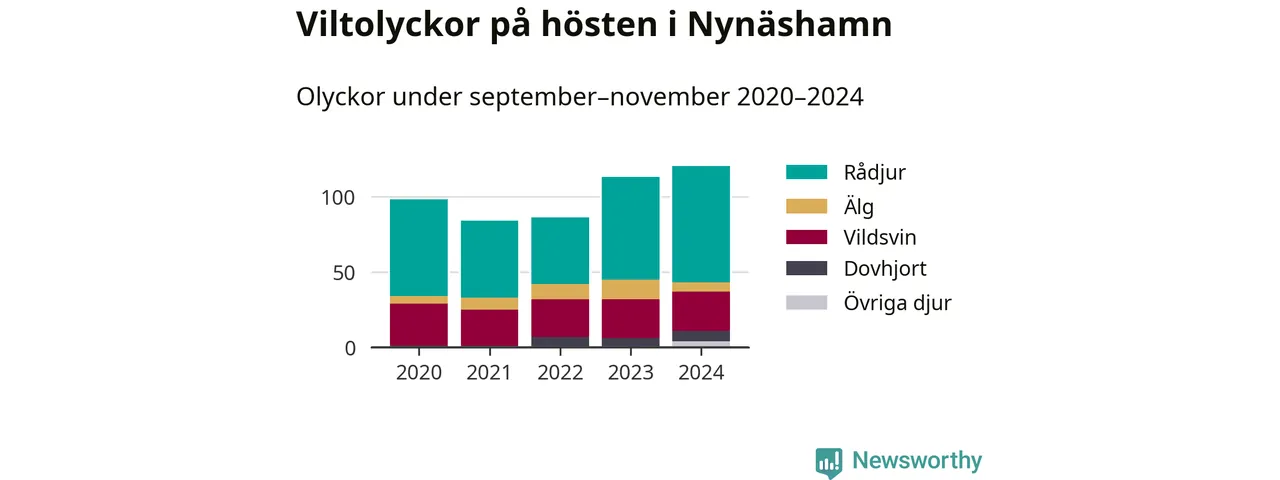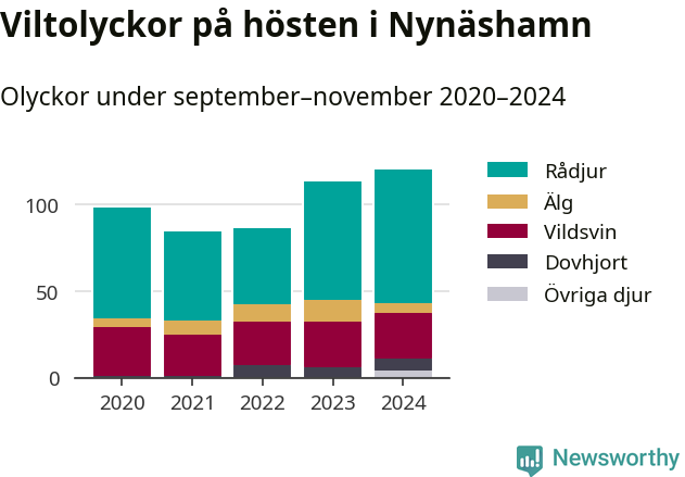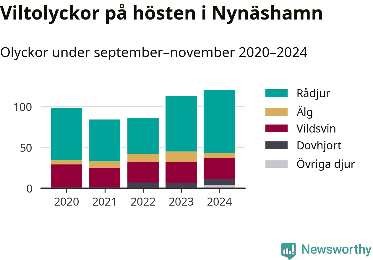 Under de senaste höstarna har antalet viltolyckor ökat i Sverige. I fjol höst noterades också flest viltolyckor i Nynäshamn hittills under 2020-talet, totalt 120 stycken.