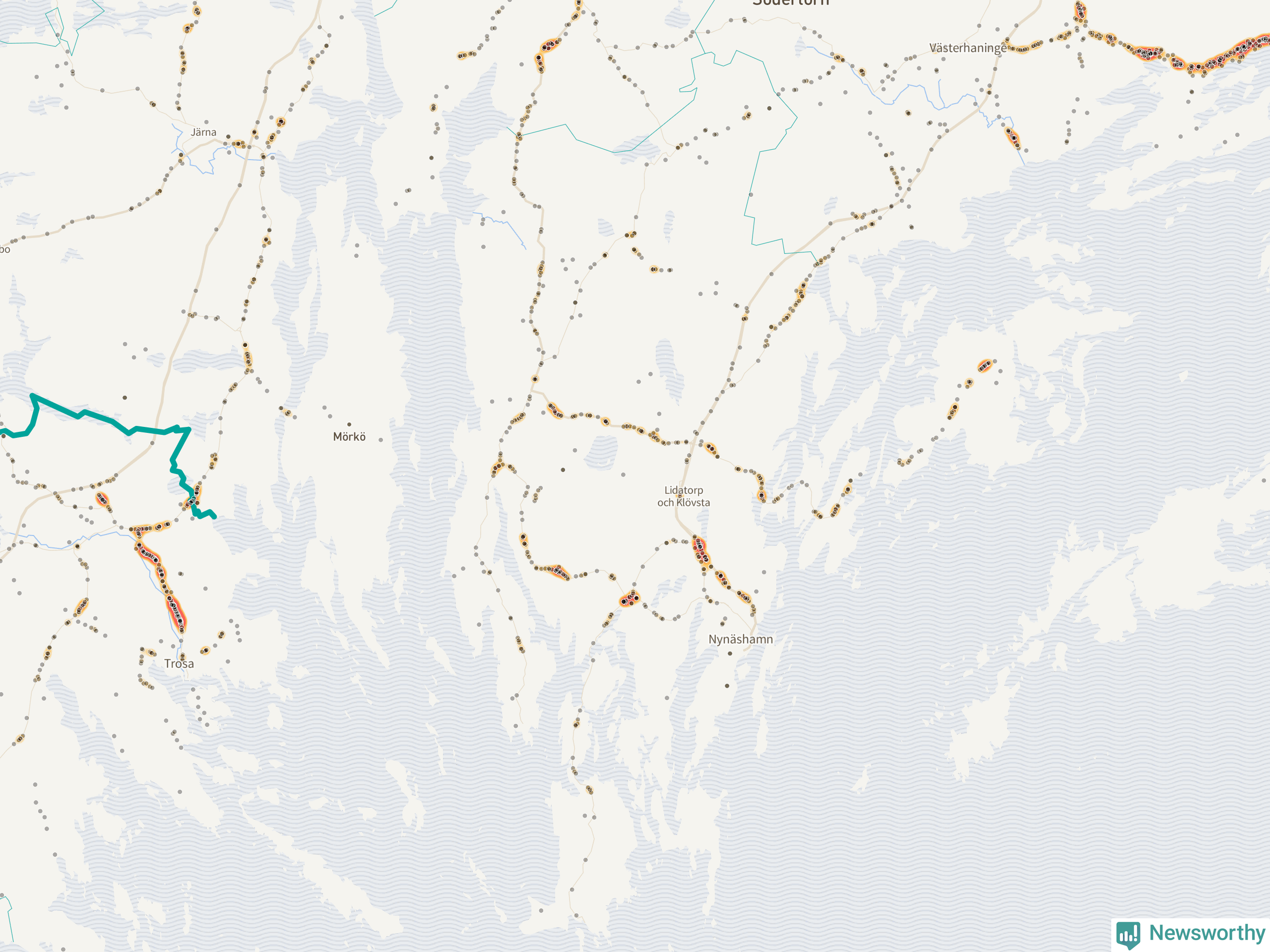 | Nykvarn | väg 576 | rådjur, älg | 150 |