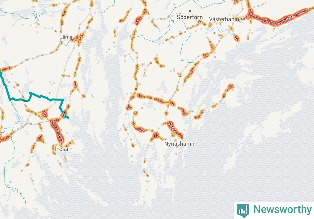 På hösten ökar risken för viltolyckor längs vägarna. Under de senaste fem höstarna har totalt 501 olyckor rapporterats i Nynäshamns kommun. Här är de mest drabbade vägarna.