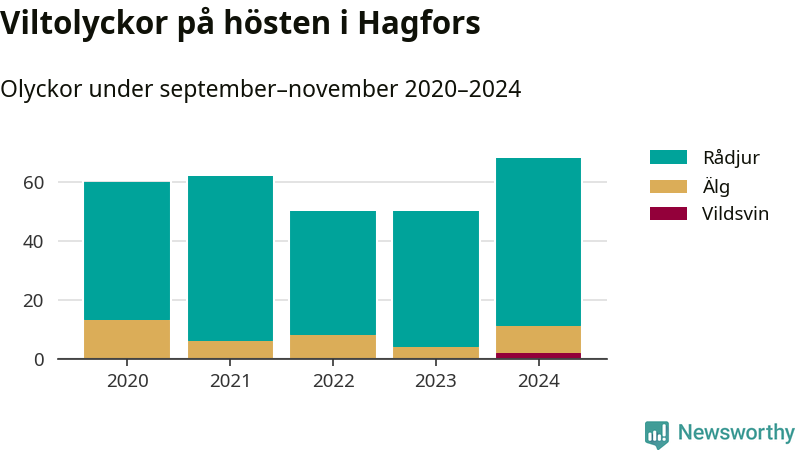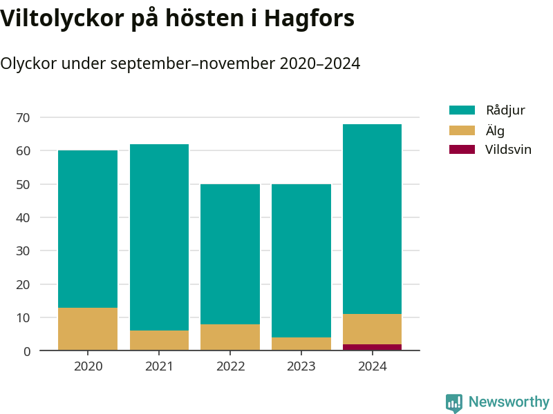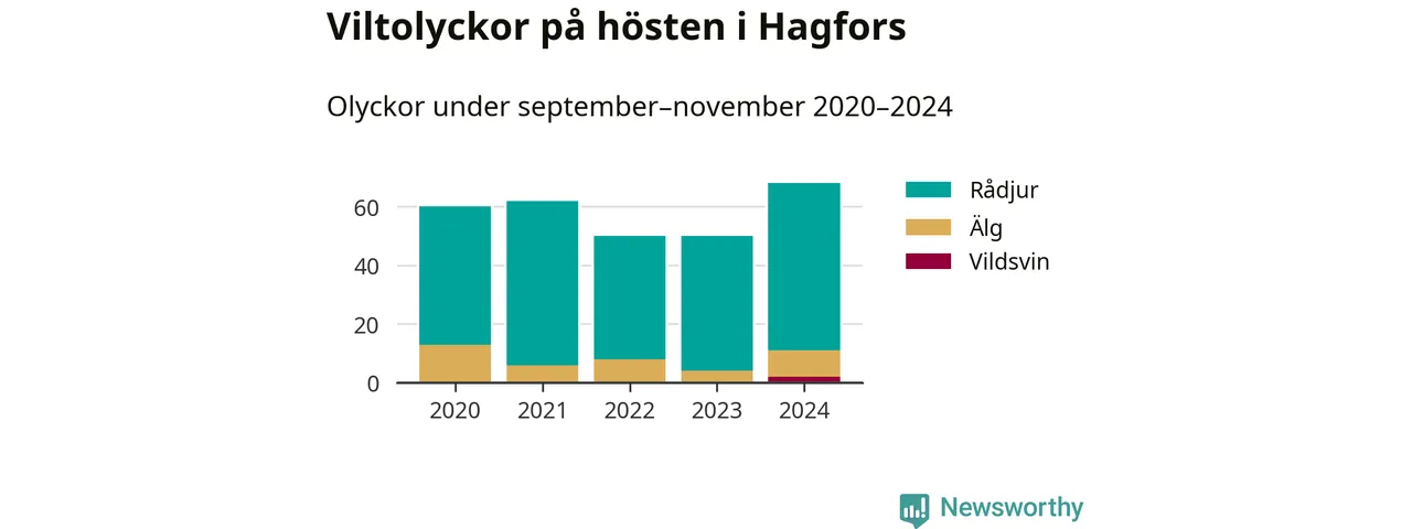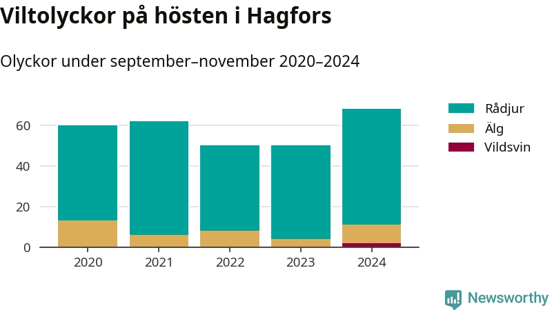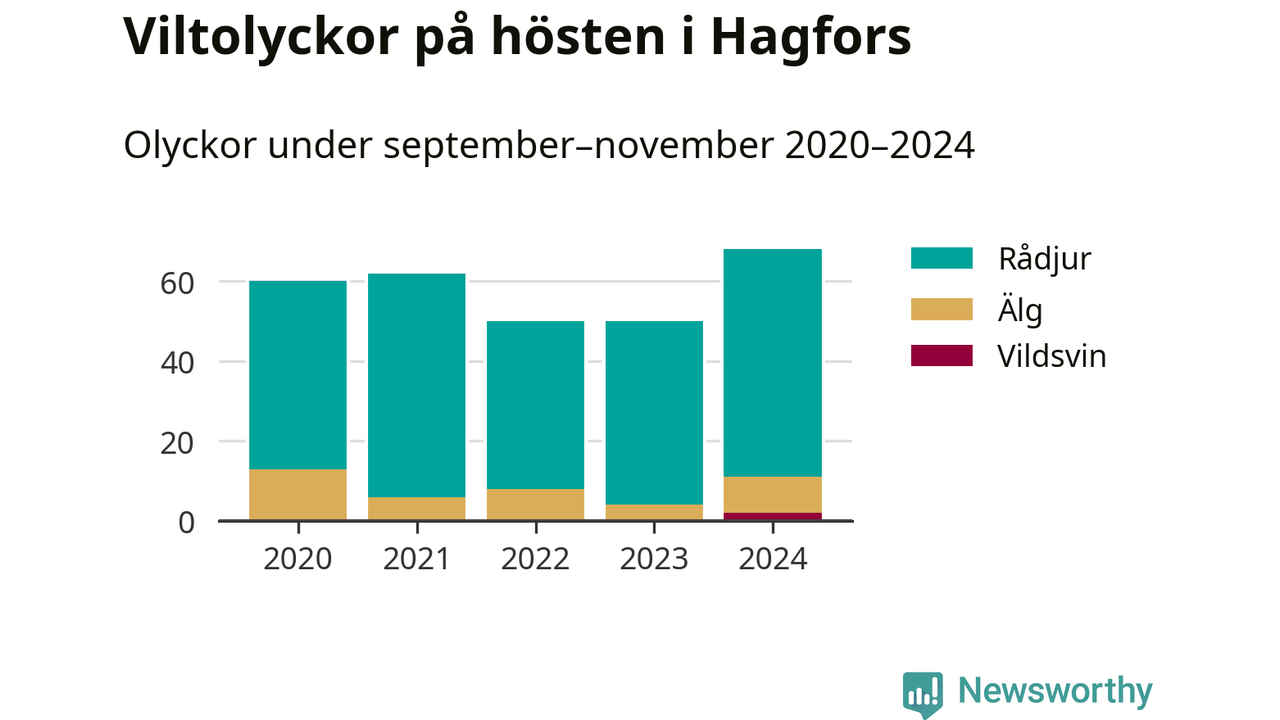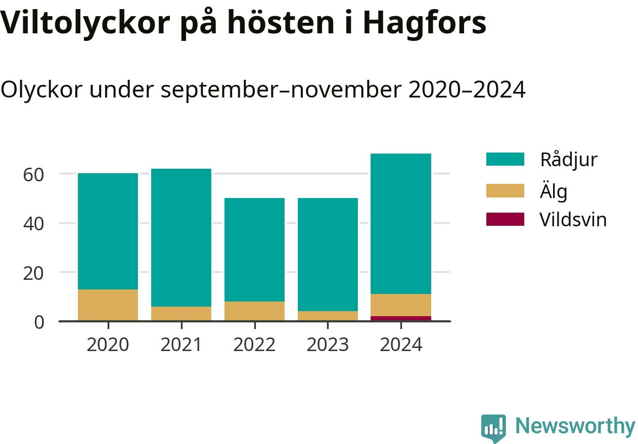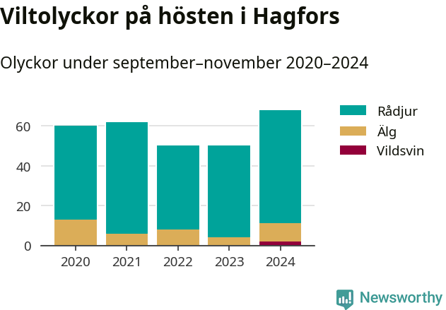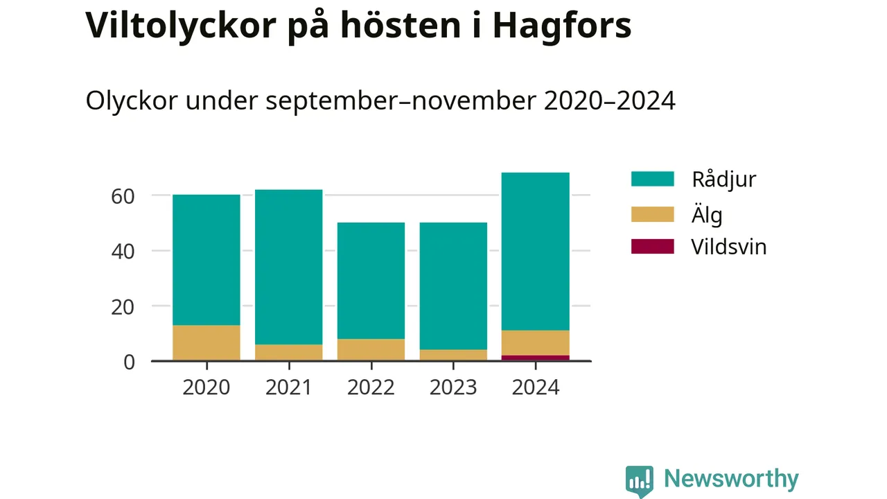 Under de senaste höstarna har antalet viltolyckor ökat i Sverige. I fjol höst noterades också flest viltolyckor i Hagfors hittills under 2020-talet, totalt 68 stycken.