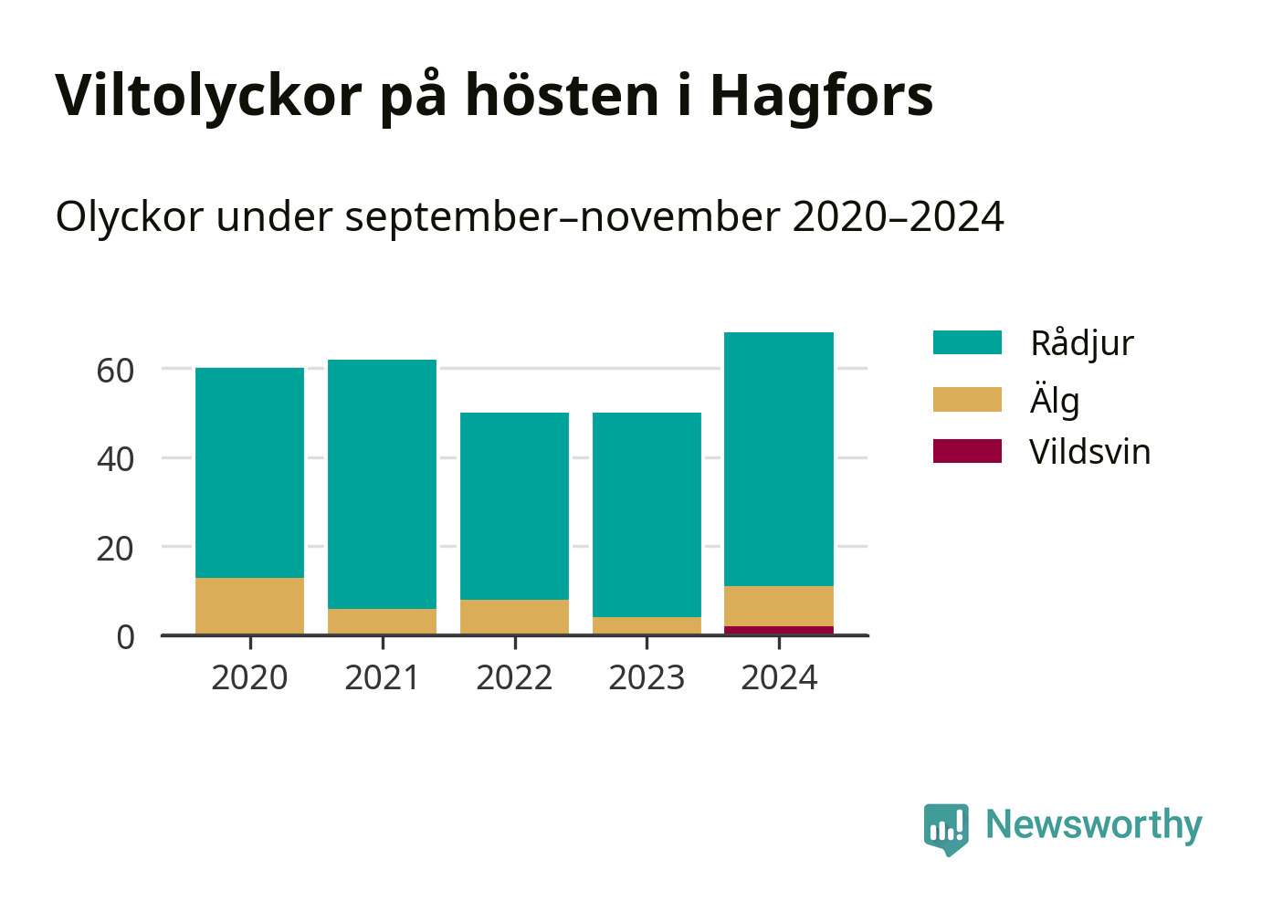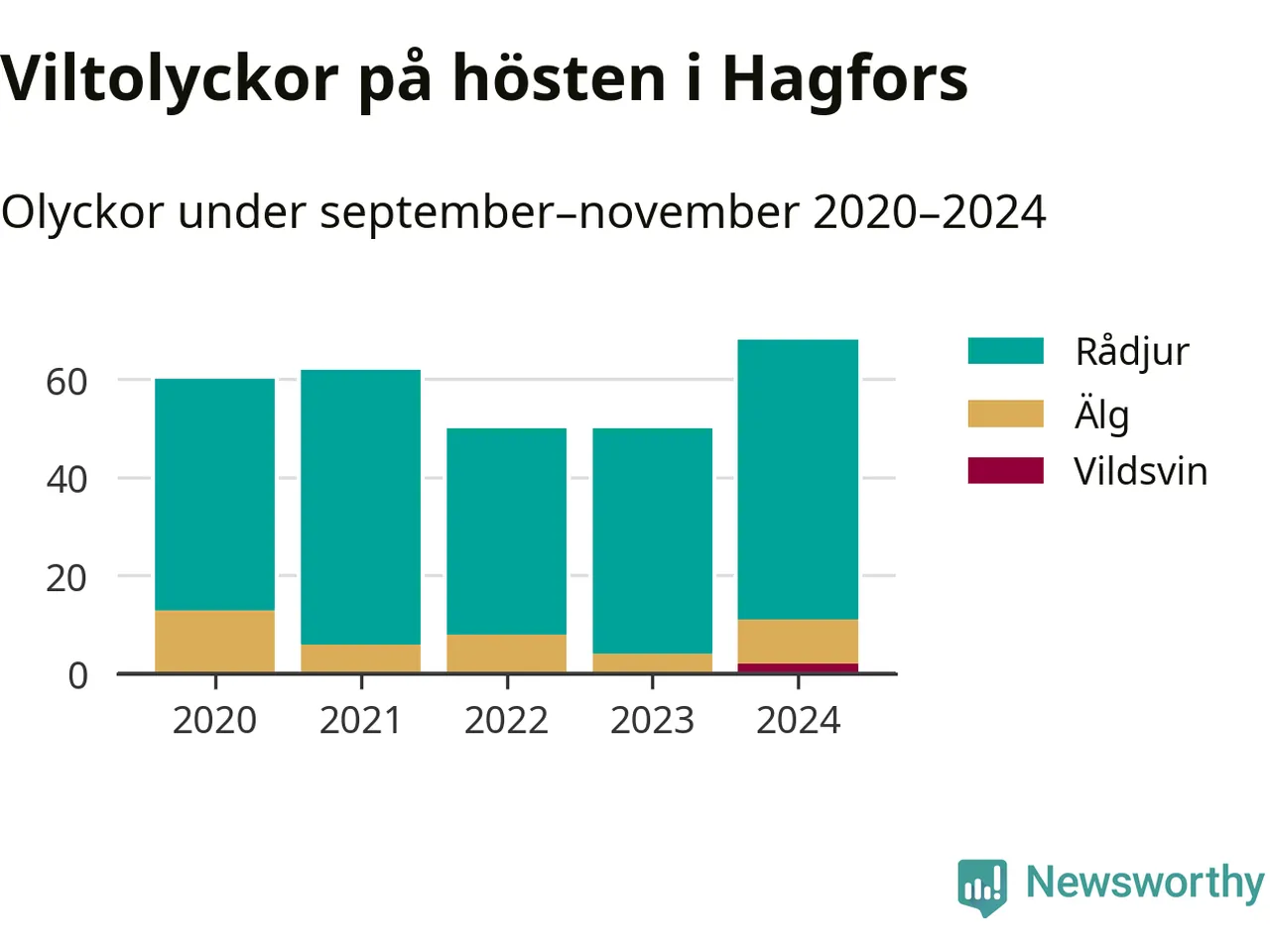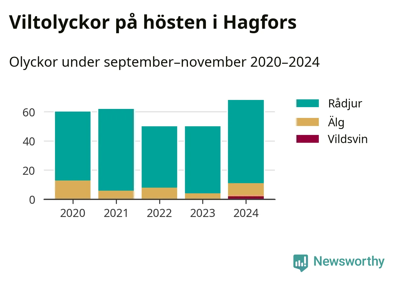 Källa: Nationella viltolycksrådet. Gäller olyckor under månaderna september–november 2020–2024.