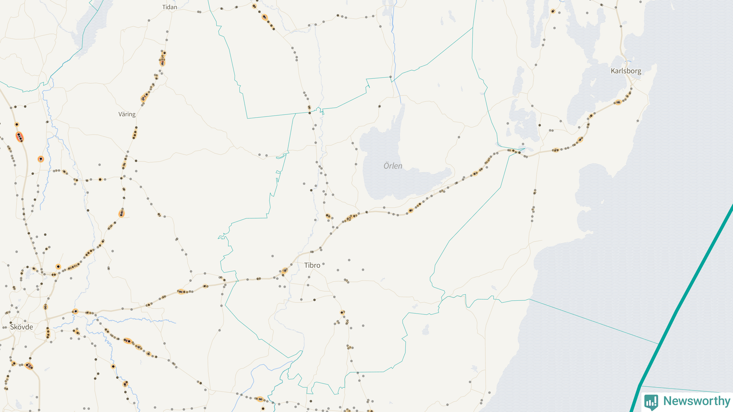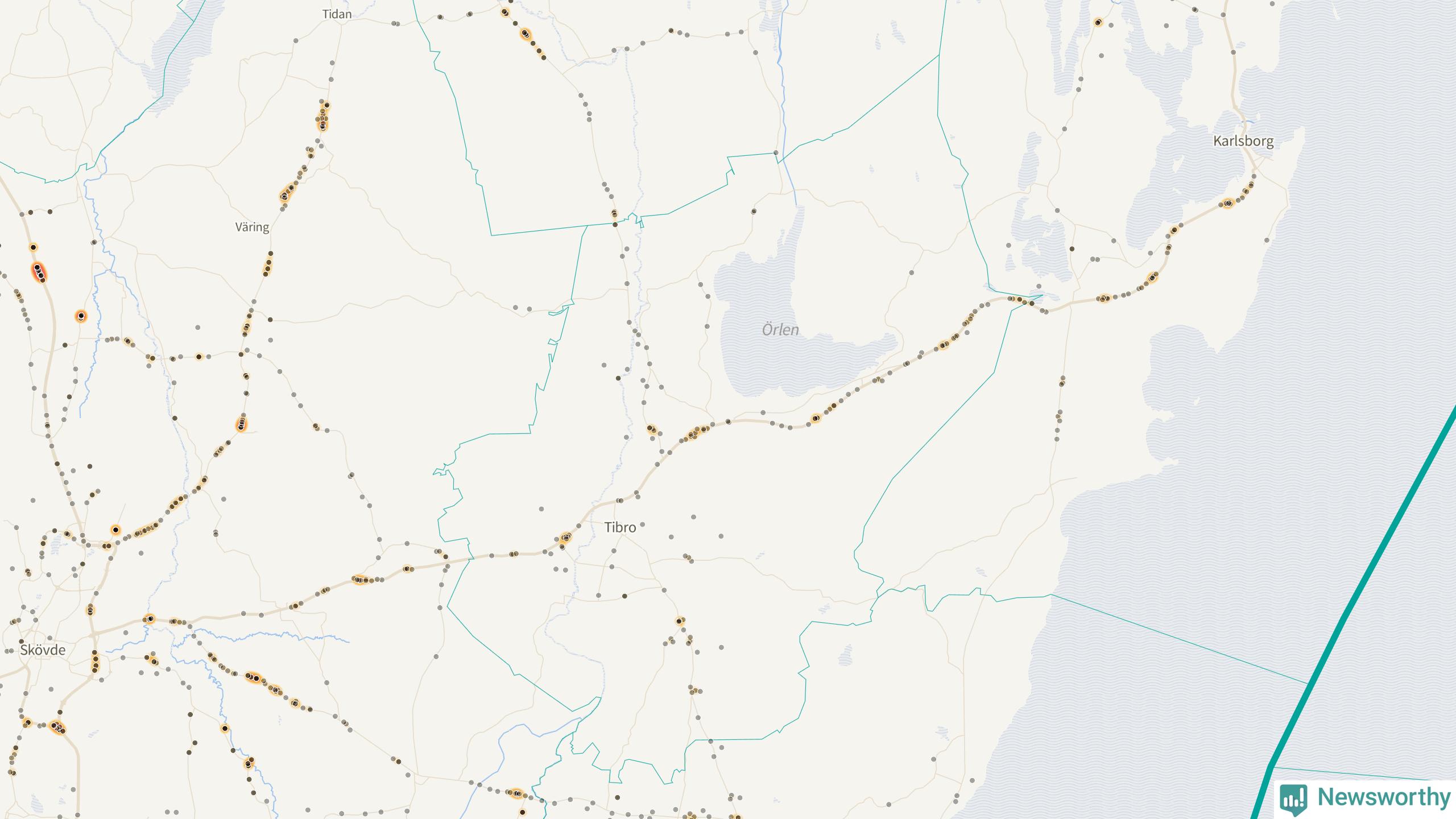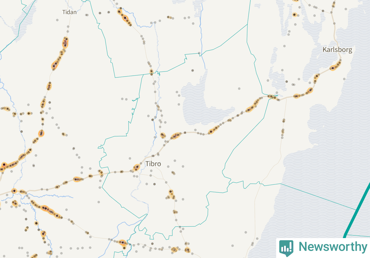 På hösten ökar risken för viltolyckor längs vägarna. Under de senaste fem höstarna har totalt 141 olyckor rapporterats i Tibro kommun. Här är de mest drabbade vägarna.