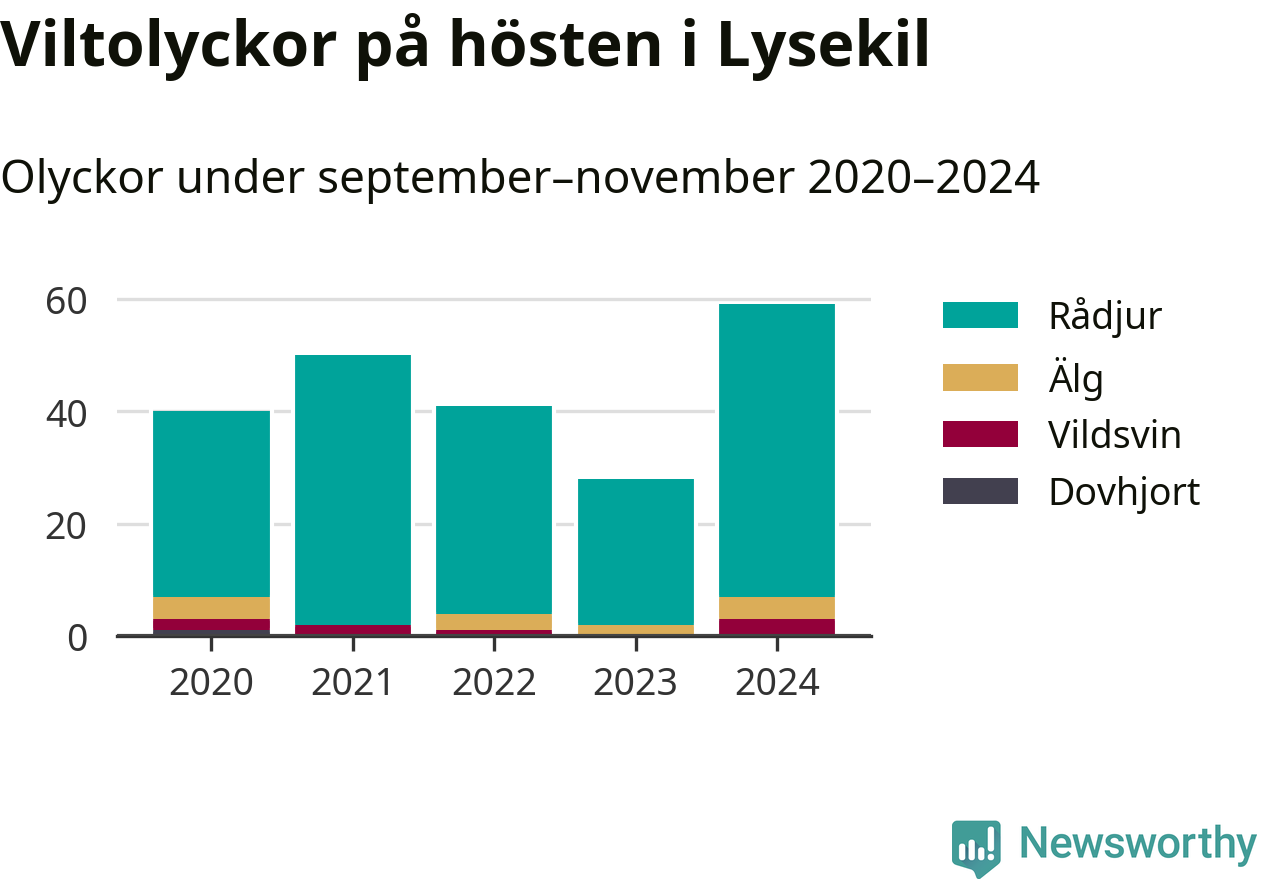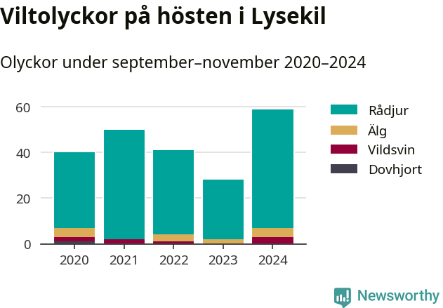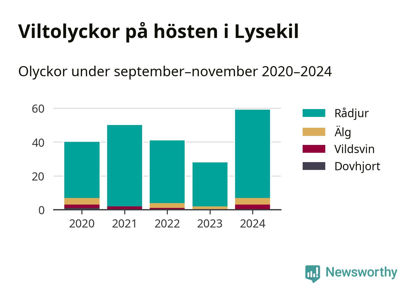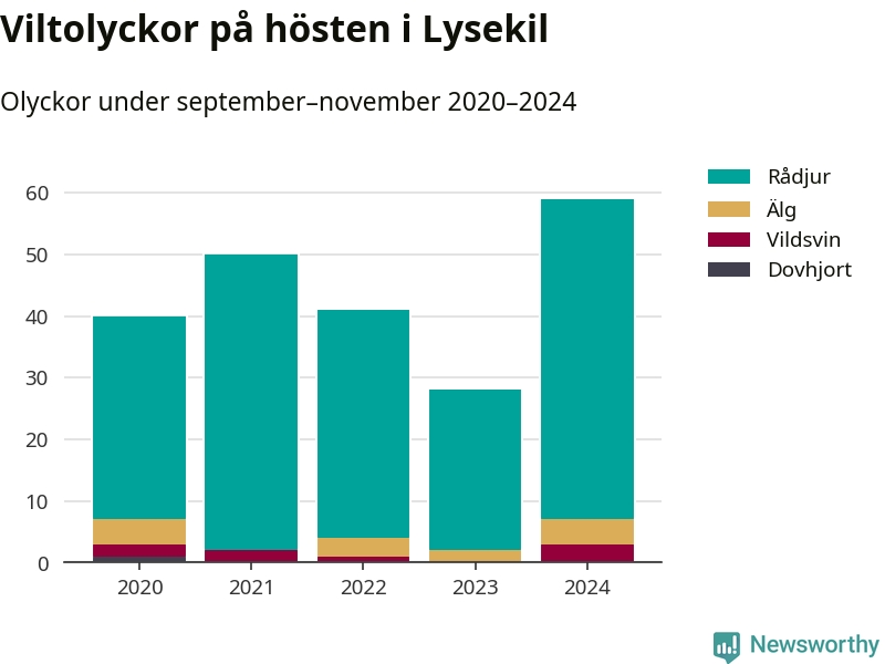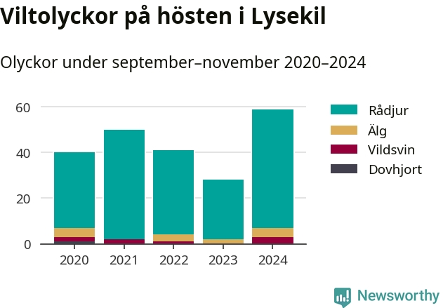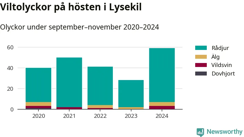 Under de senaste höstarna har antalet viltolyckor ökat i Sverige. I fjol höst noterades också flest viltolyckor i Lysekil hittills under 2020-talet, totalt 59 stycken.