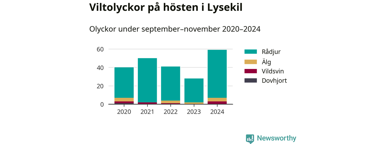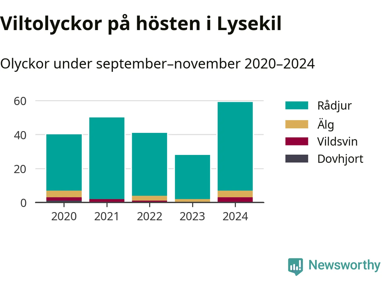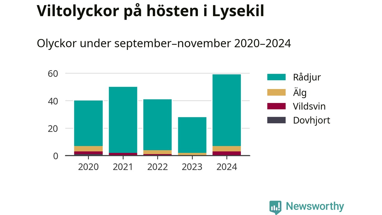 Under de senaste höstarna har antalet viltolyckor ökat i Sverige. I fjol höst noterades också flest viltolyckor i Lysekil hittills under 2020-talet, totalt 59 stycken.