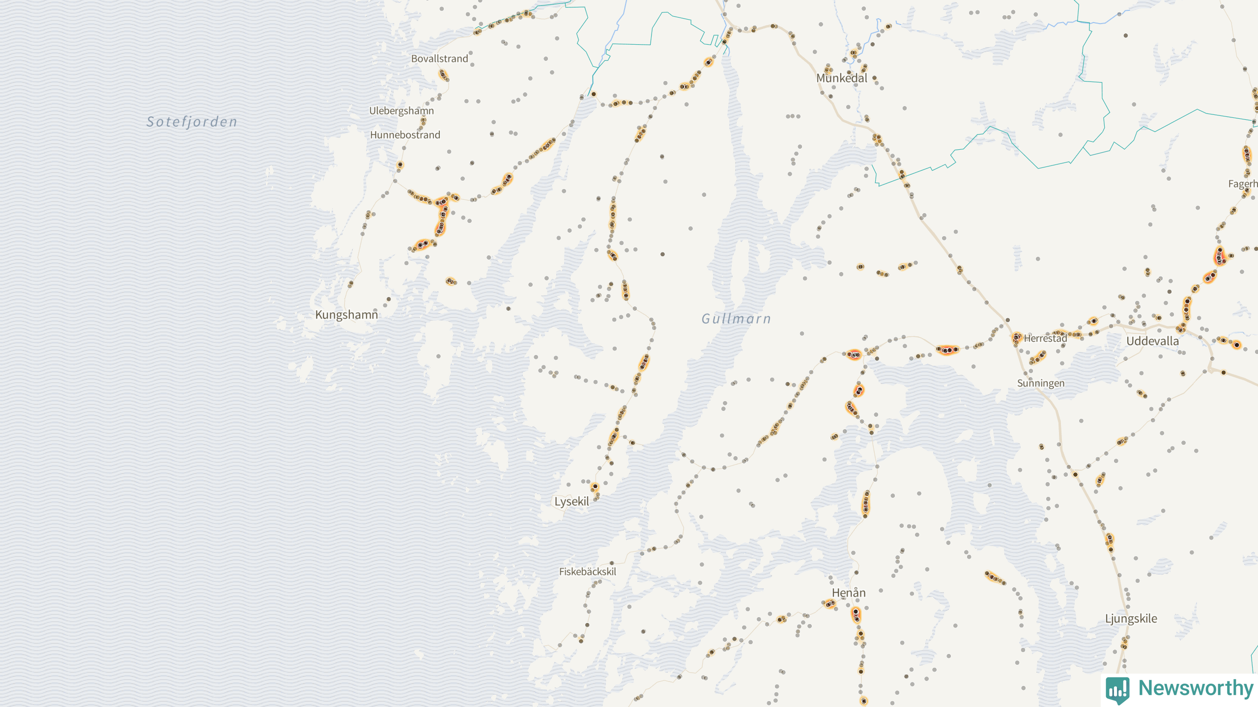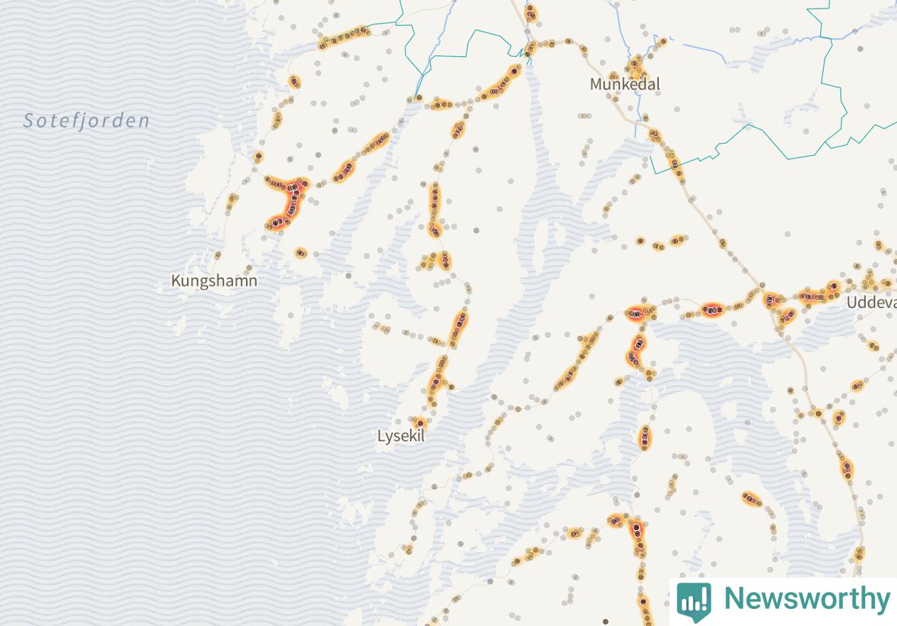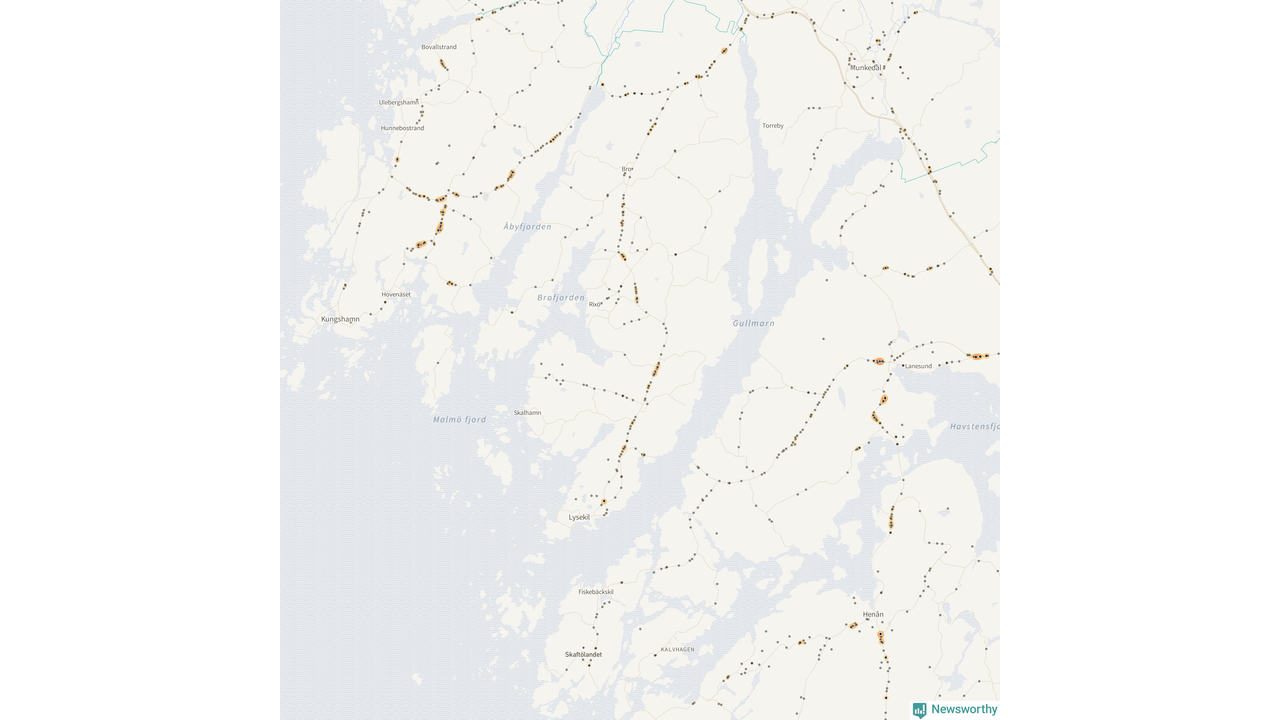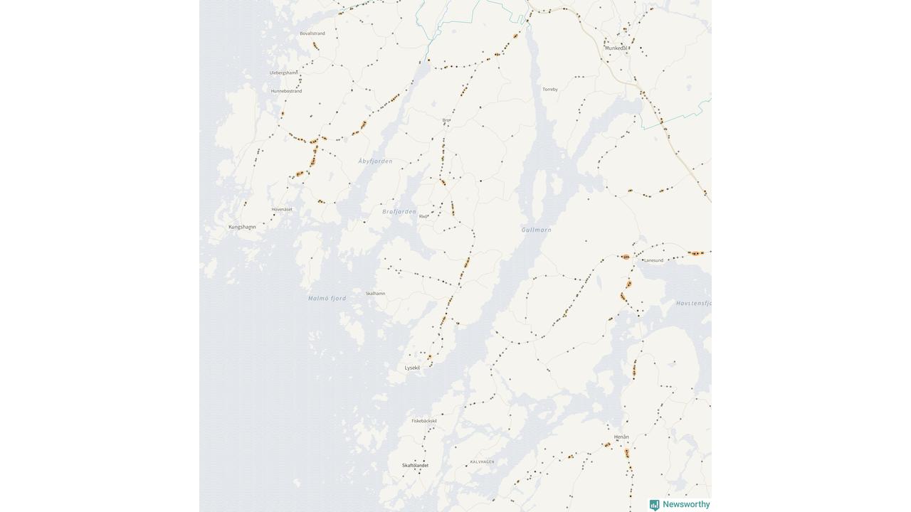 På hösten ökar risken för viltolyckor längs vägarna. Under de senaste fem höstarna har totalt 218 olyckor rapporterats i Lysekils kommun – de flesta längs väg 162. Här är de mest drabbade vägarna.