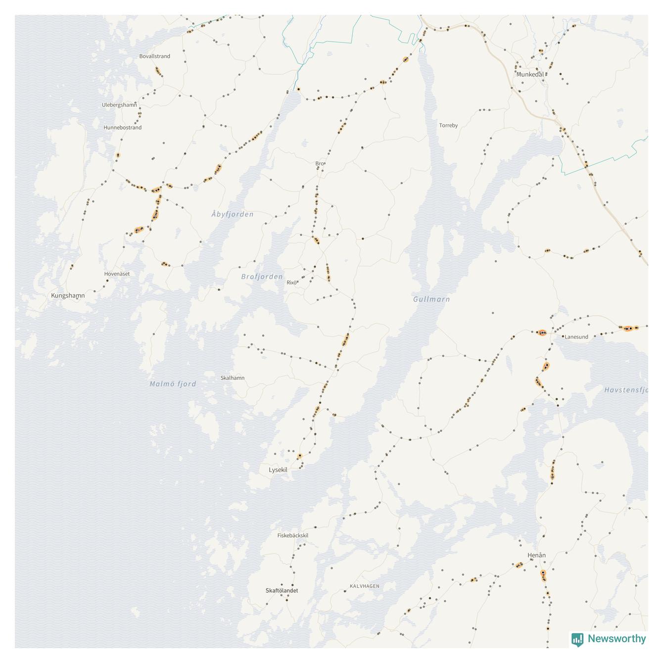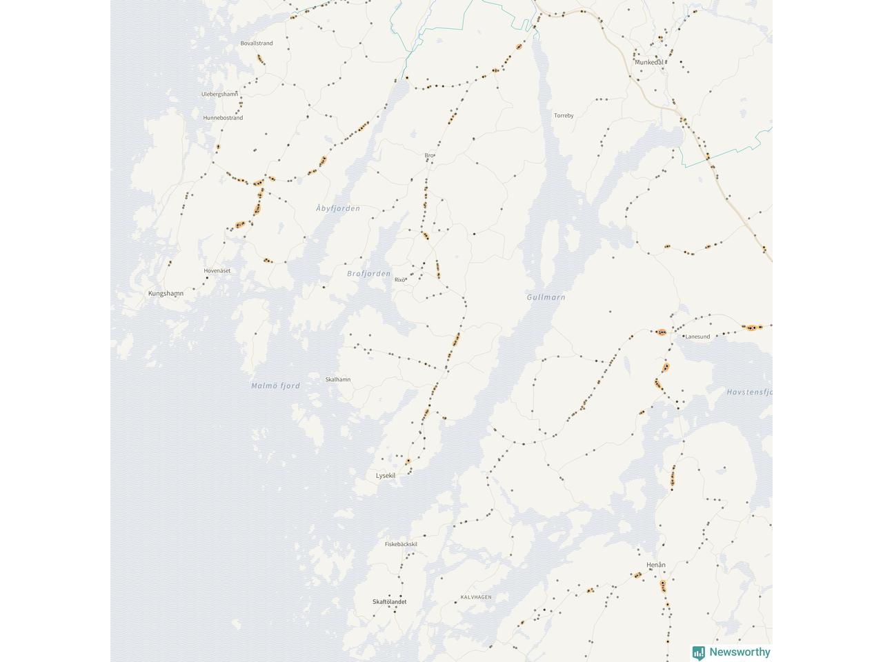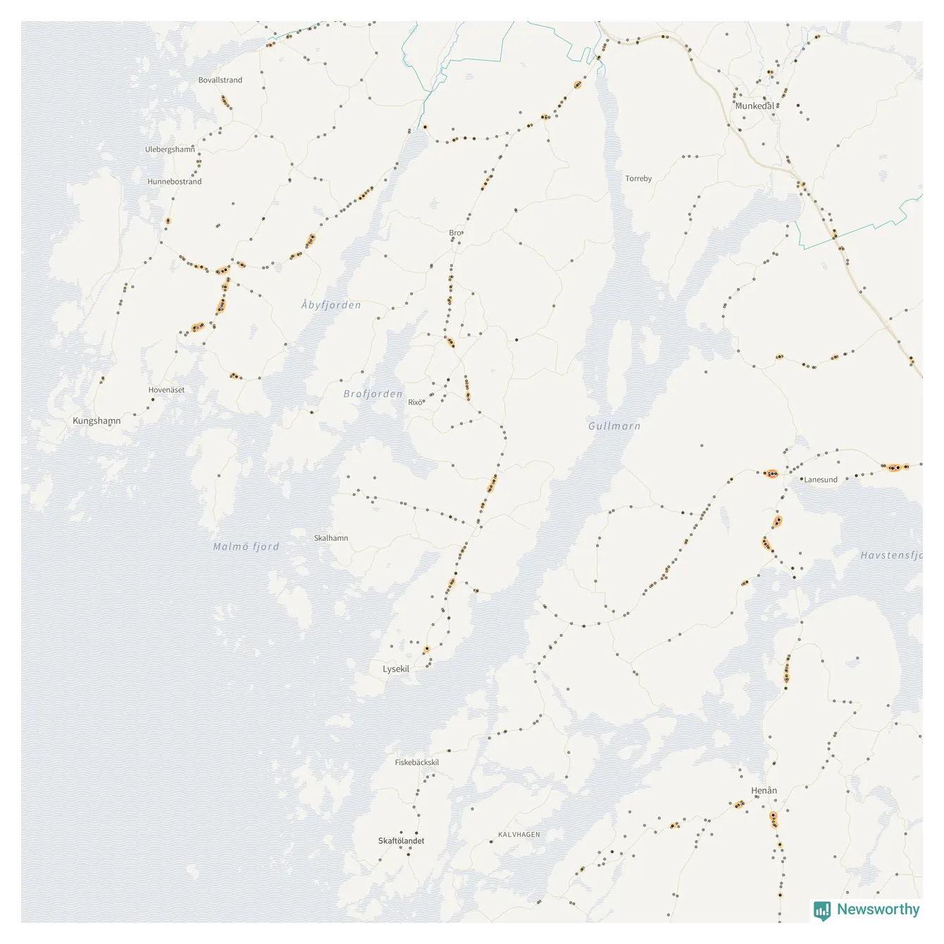 På hösten ökar risken för viltolyckor längs vägarna. Under de senaste fem höstarna har totalt 218 olyckor rapporterats i Lysekils kommun – de flesta längs väg 162. Här är de mest drabbade vägarna.