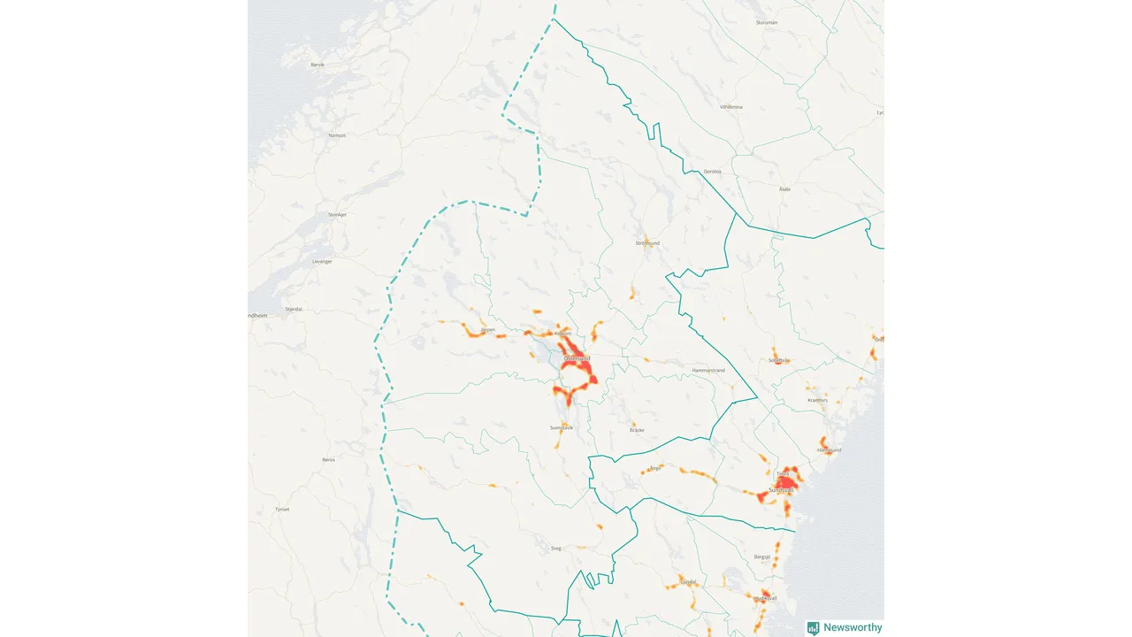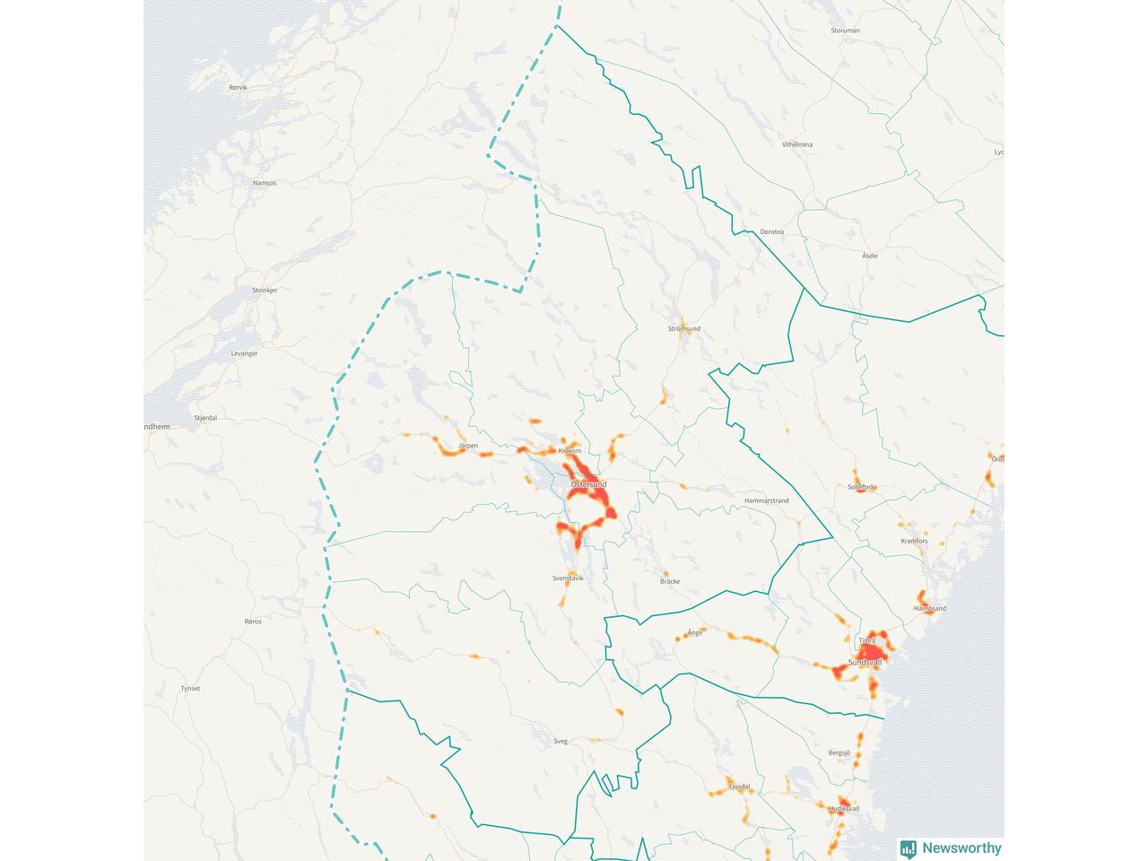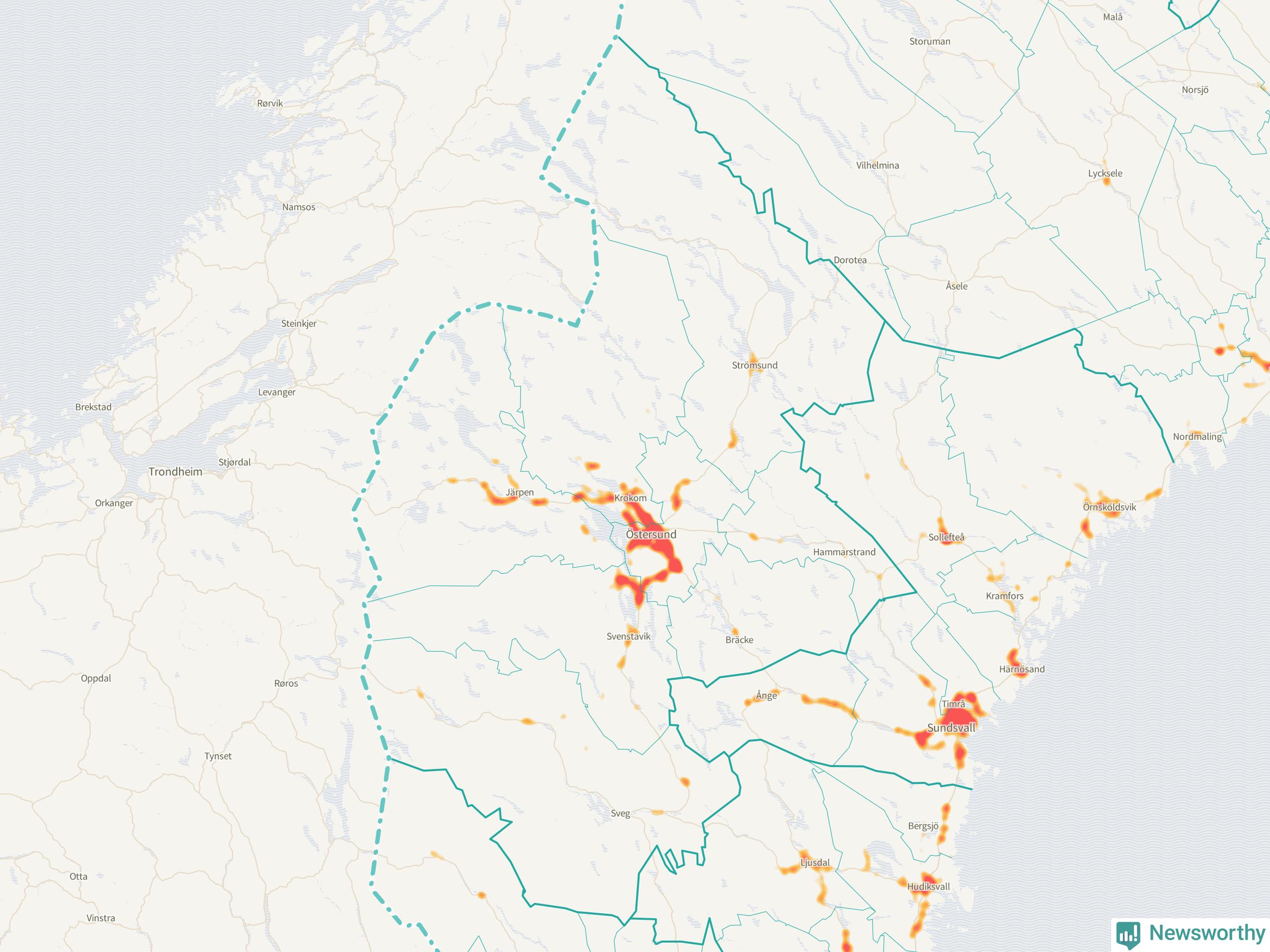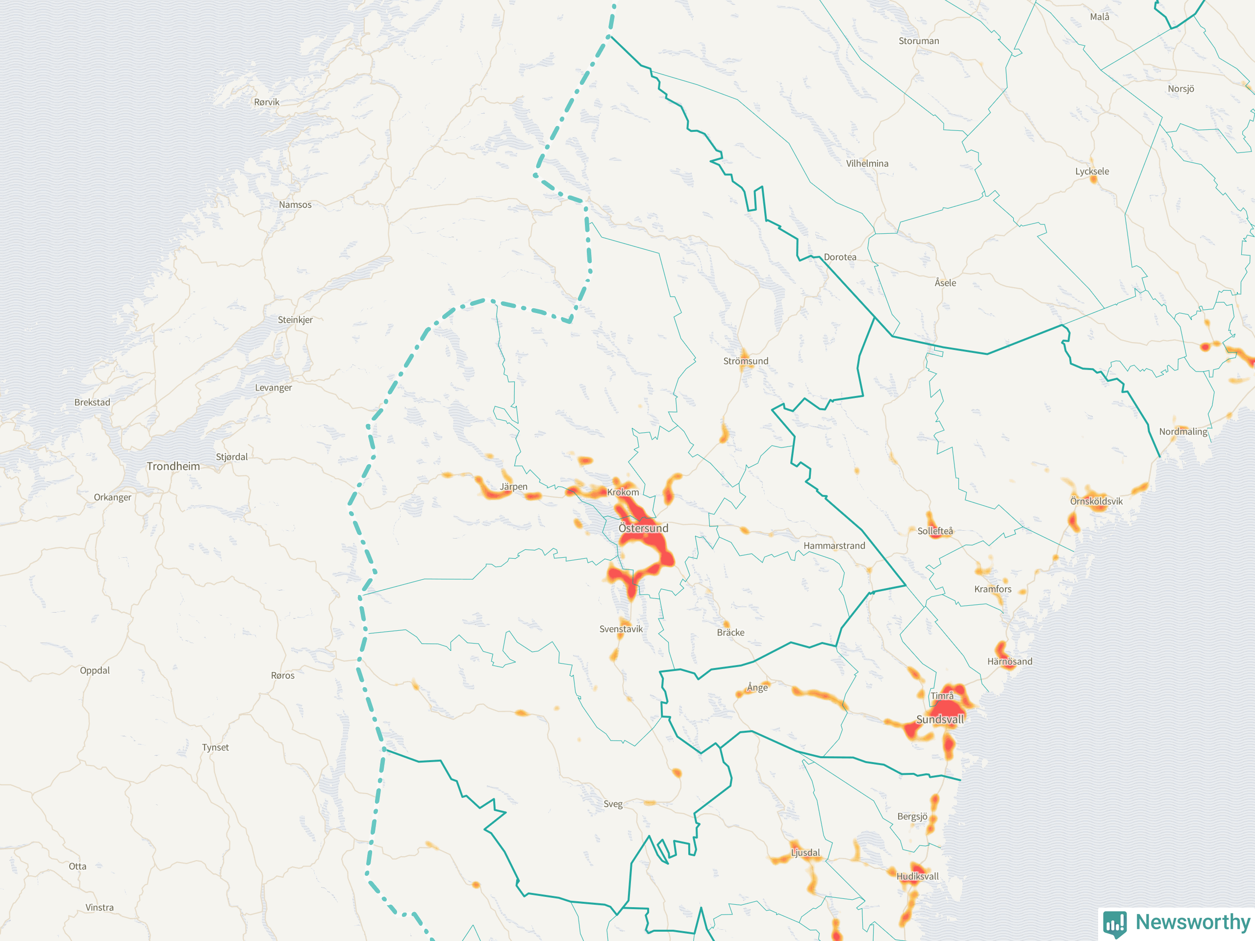 Flest olyckor längs E45 – 195 stycken – skedde i Östersunds kommun. Östersund är också den kommun med flest registrerade viltolyckor i länet totalt, 625 stycken under perioden september–november 2020–2024.