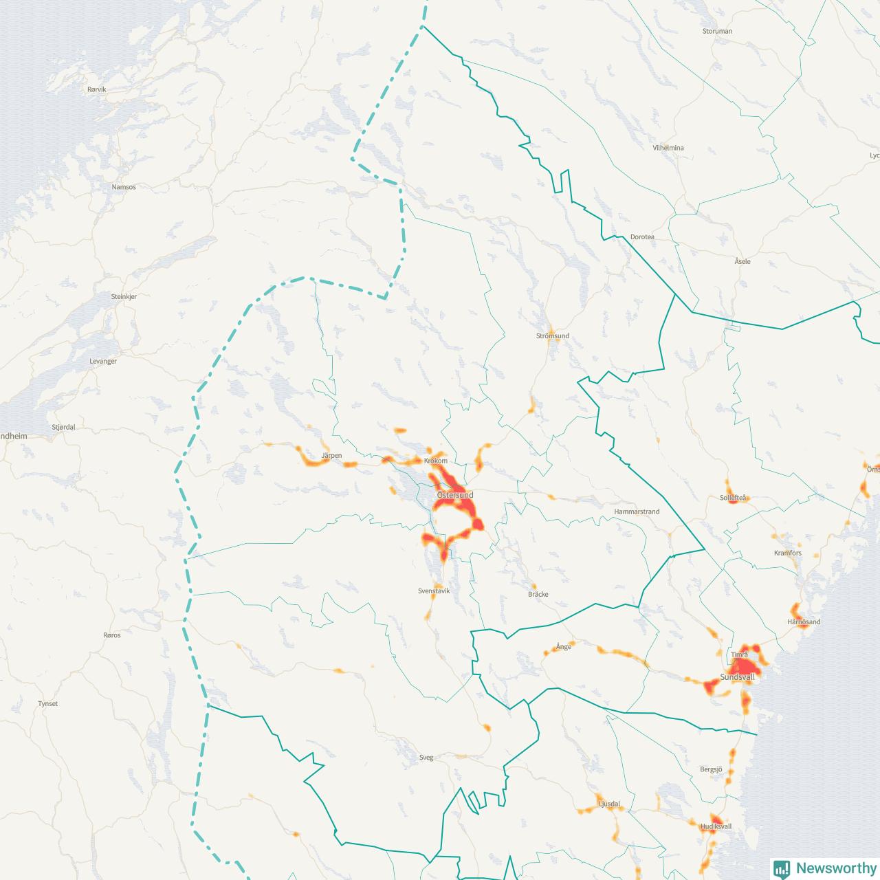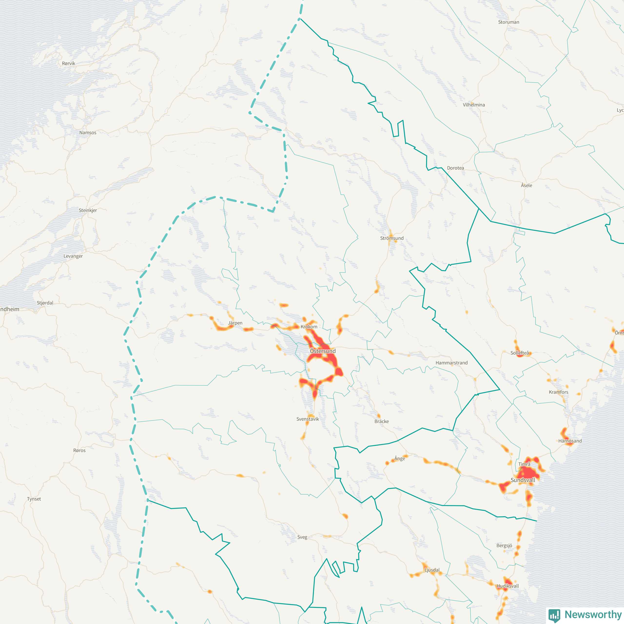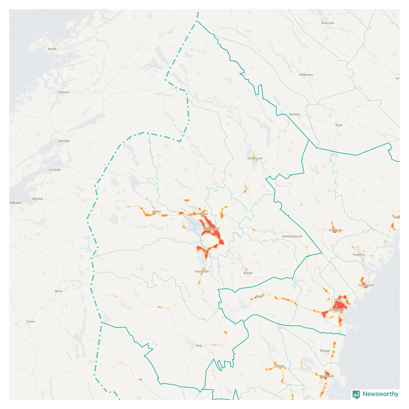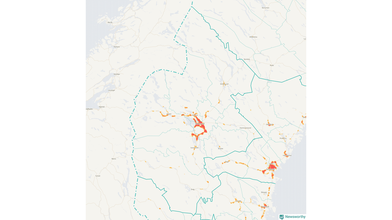 Flest olyckor längs E45 – 195 stycken – skedde i Östersunds kommun. Östersund är också den kommun med flest registrerade viltolyckor i länet totalt, 625 stycken under perioden september–november 2020–2024.