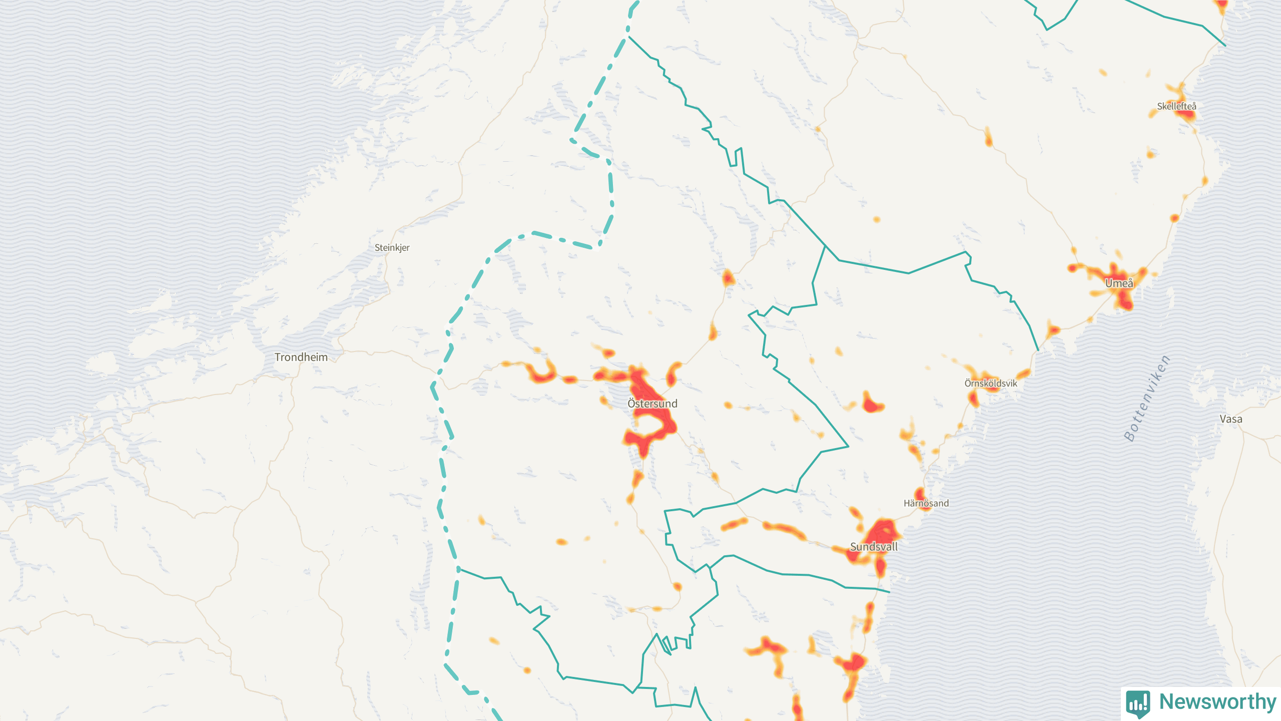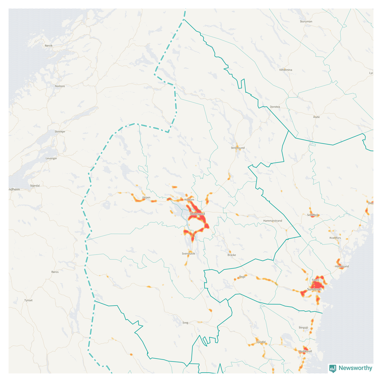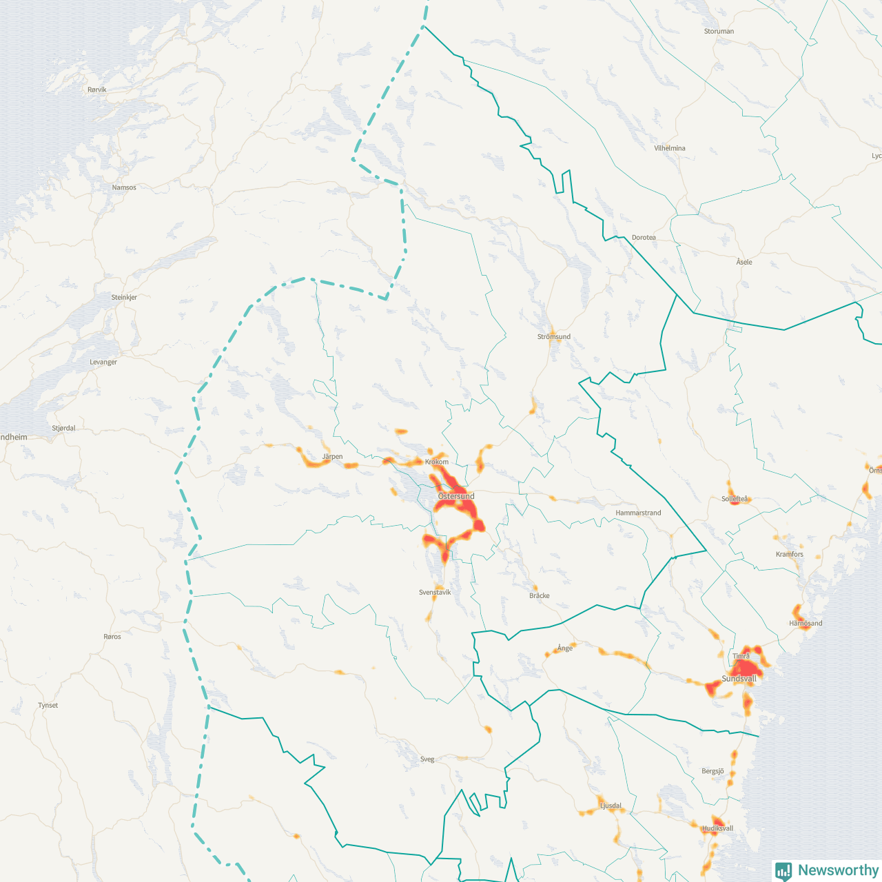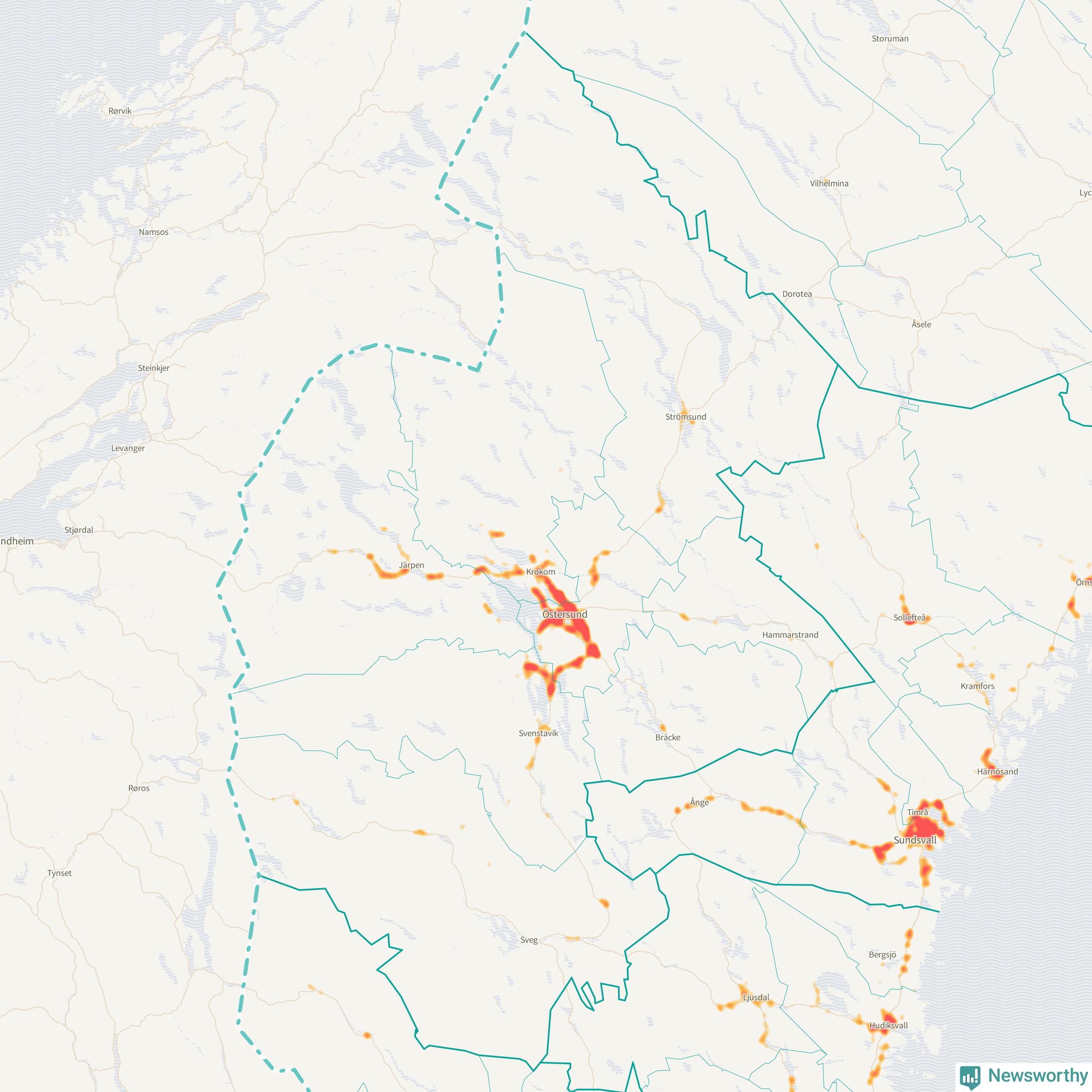 Flest olyckor längs E45 – 195 stycken – skedde i Östersunds kommun. Östersund är också den kommun med flest registrerade viltolyckor i länet totalt, 625 stycken under perioden september–november 2020–2024.