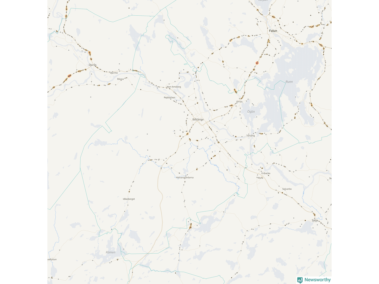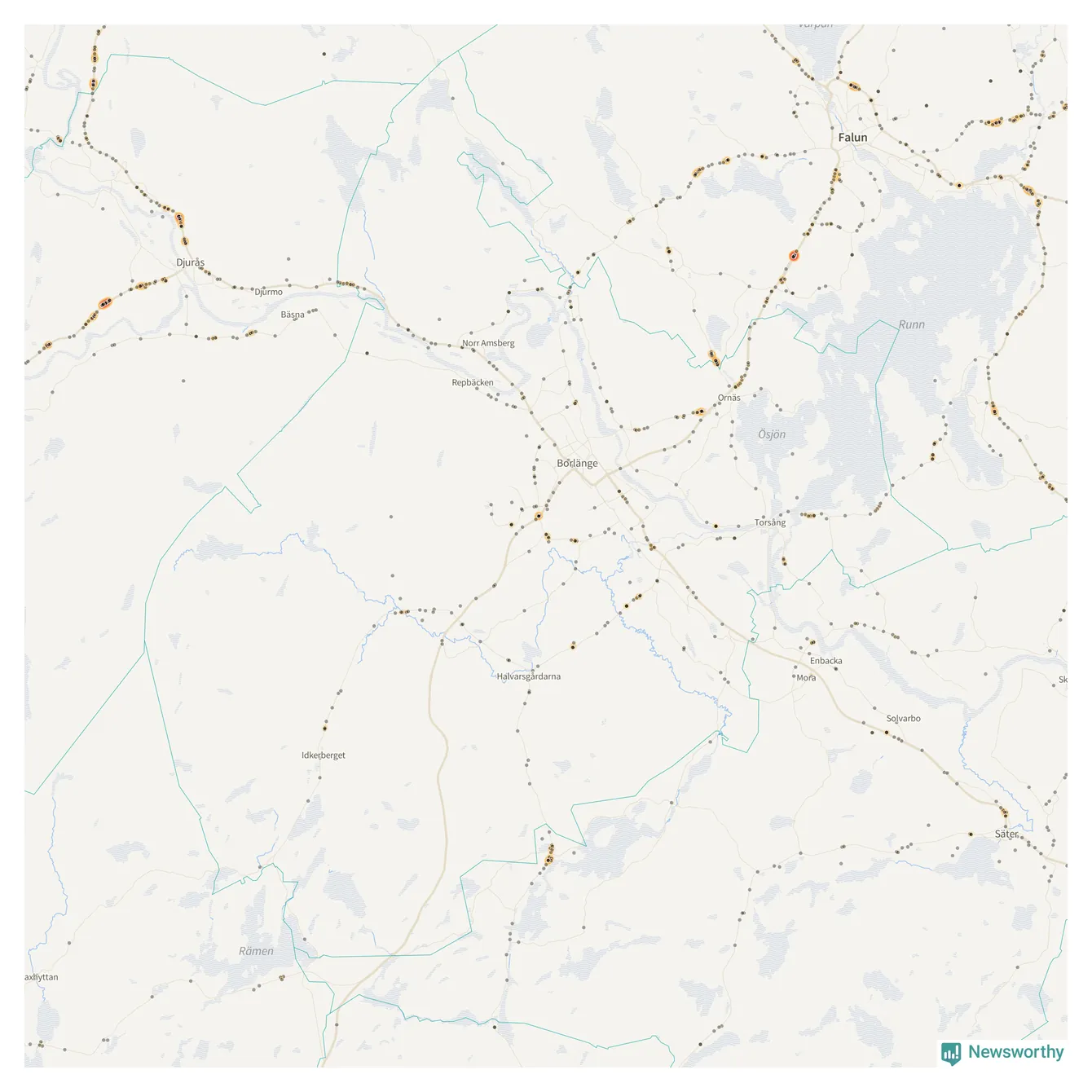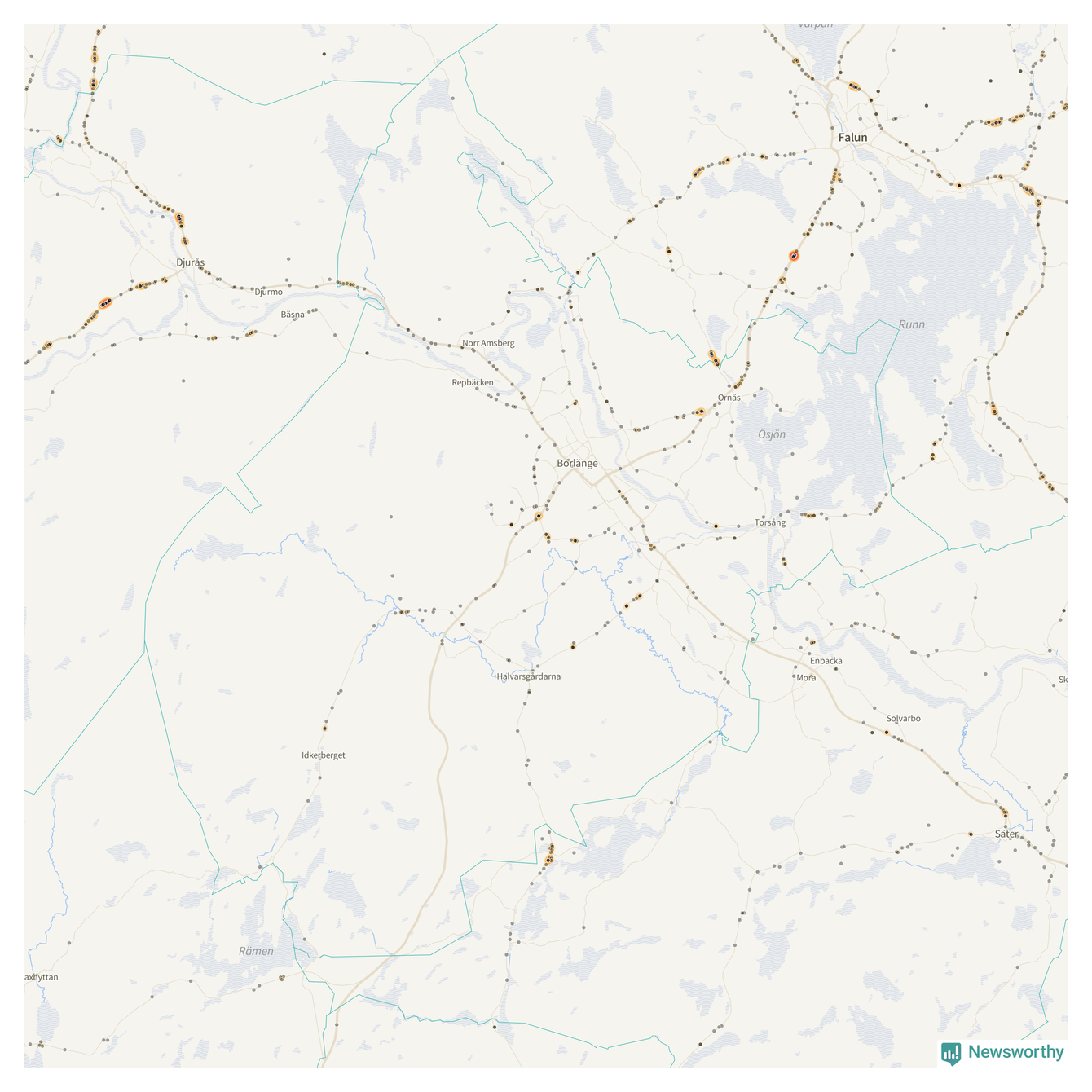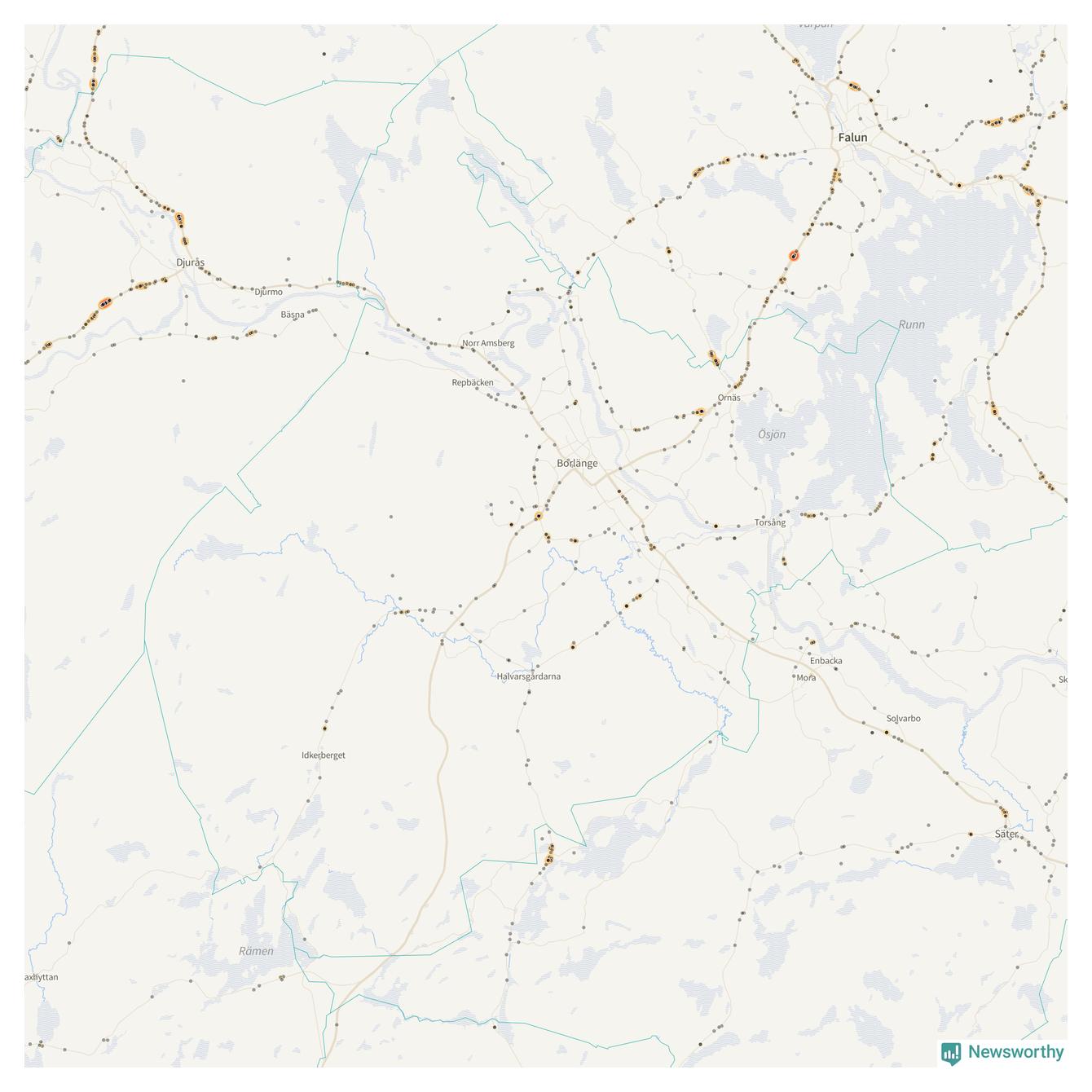 På hösten ökar risken för viltolyckor längs vägarna. Under de senaste fem höstarna har totalt 300 olyckor rapporterats i Borlänge kommun. Här är de mest drabbade vägarna.