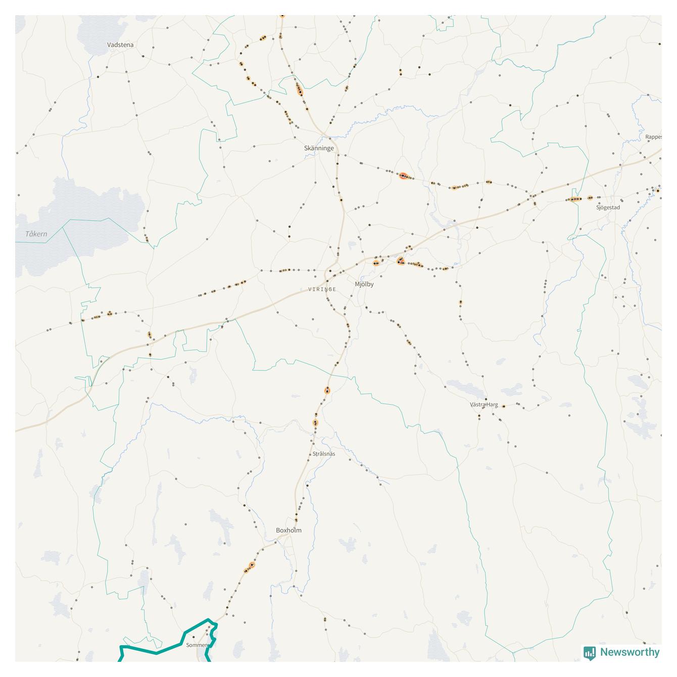 | Boxholm | väg 32 | rådjur, vildsvin | 130 |