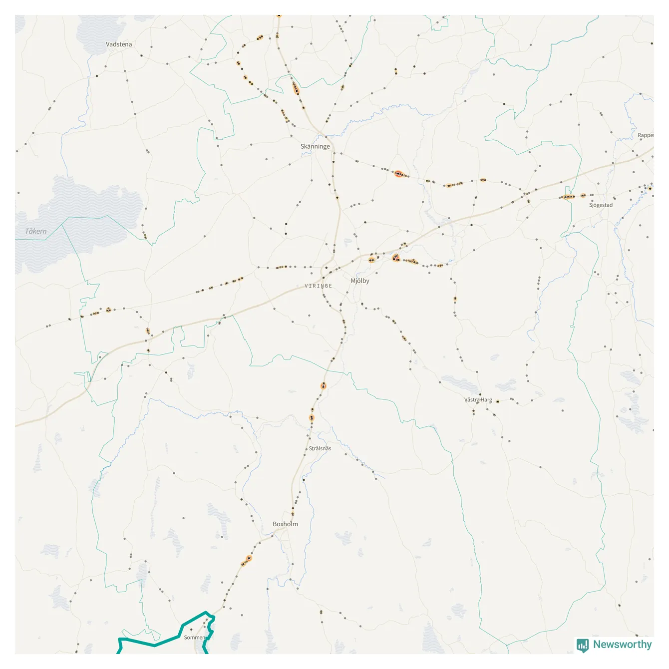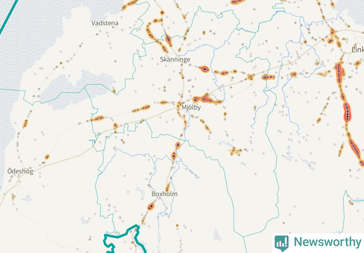 På hösten ökar risken för viltolyckor längs vägarna. Under de senaste fem höstarna har totalt 384 olyckor rapporterats i Mjölby kommun. Här är de mest drabbade vägarna.