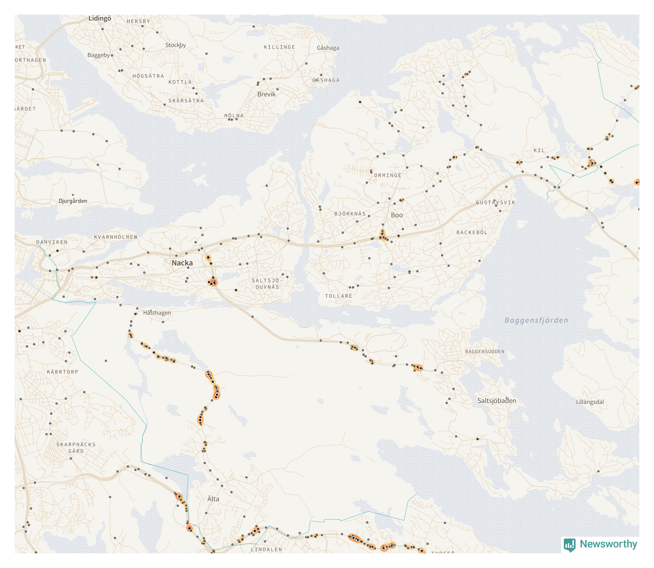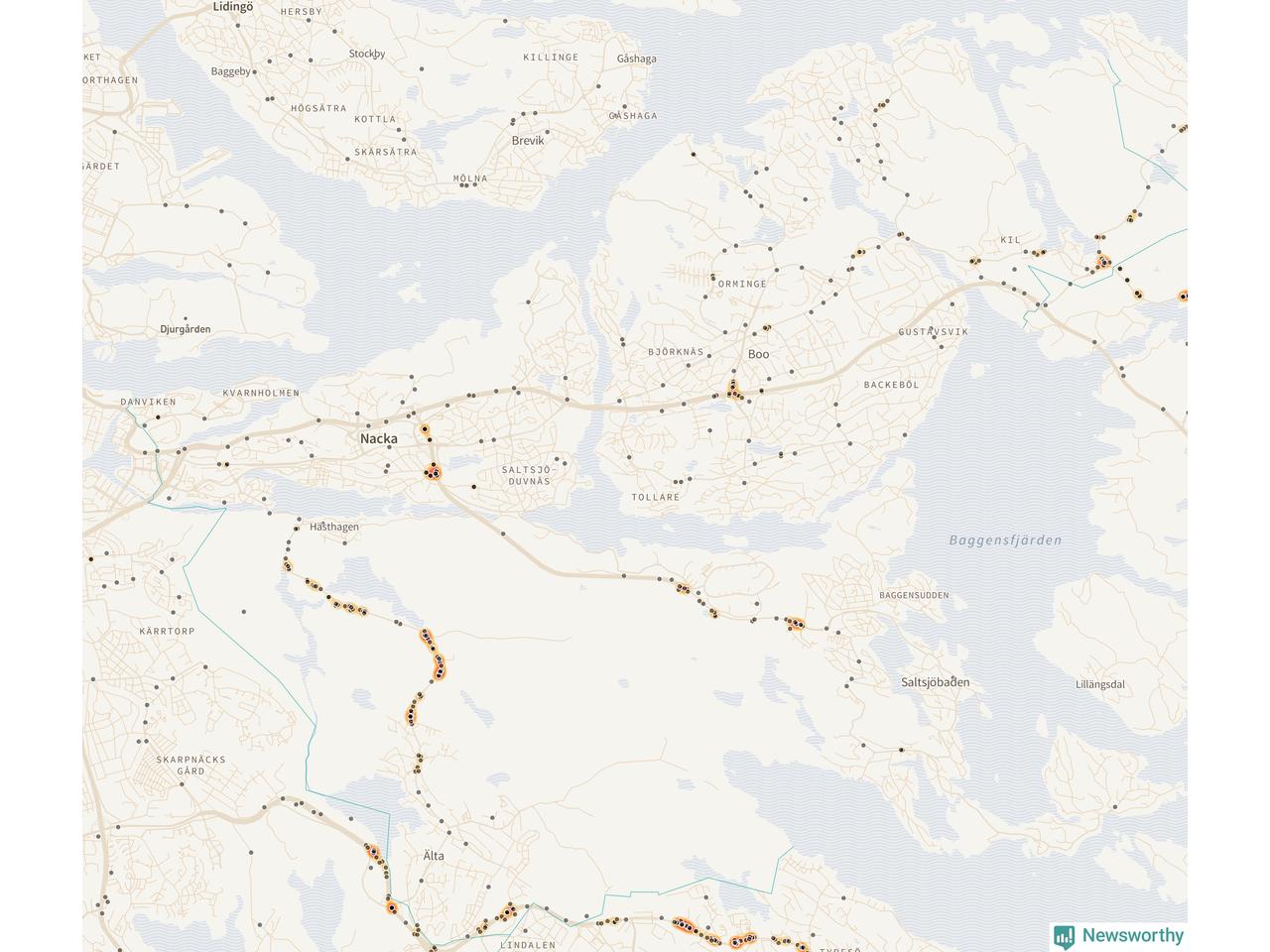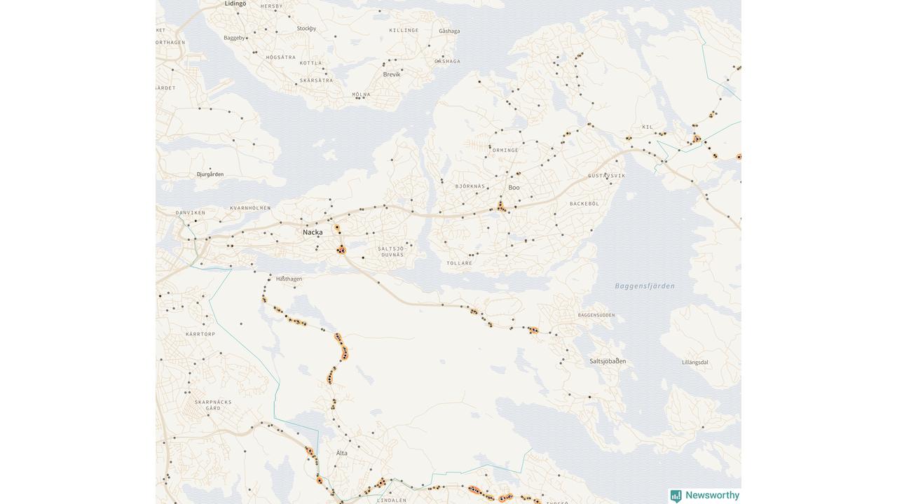 Stor kartläggning: Här sker viltolyckorna i Nacka