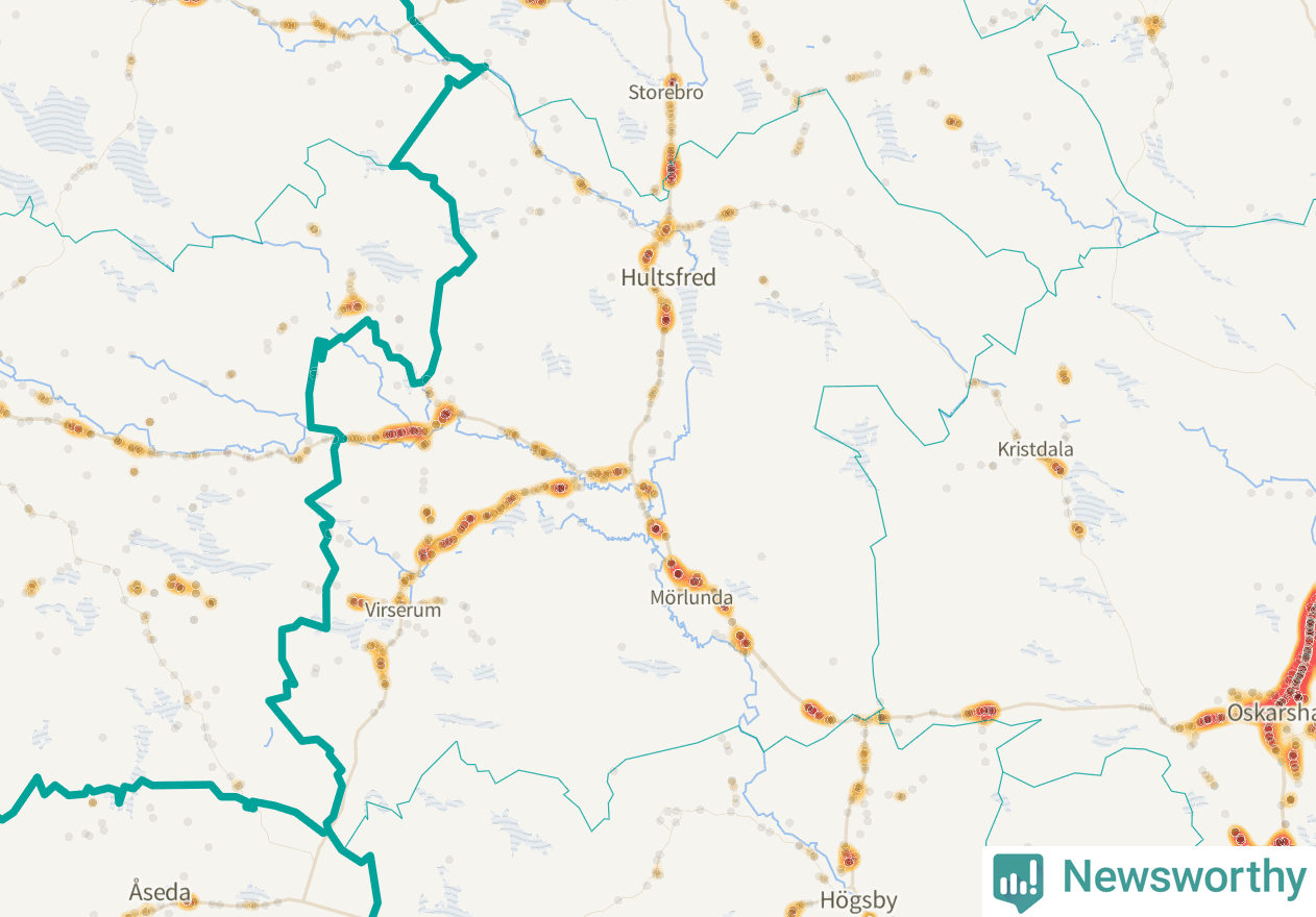 På hösten ökar risken för viltolyckor längs vägarna. Under de senaste fem höstarna har totalt 411 olyckor rapporterats i Hultsfreds kommun. Här är de mest drabbade vägarna.