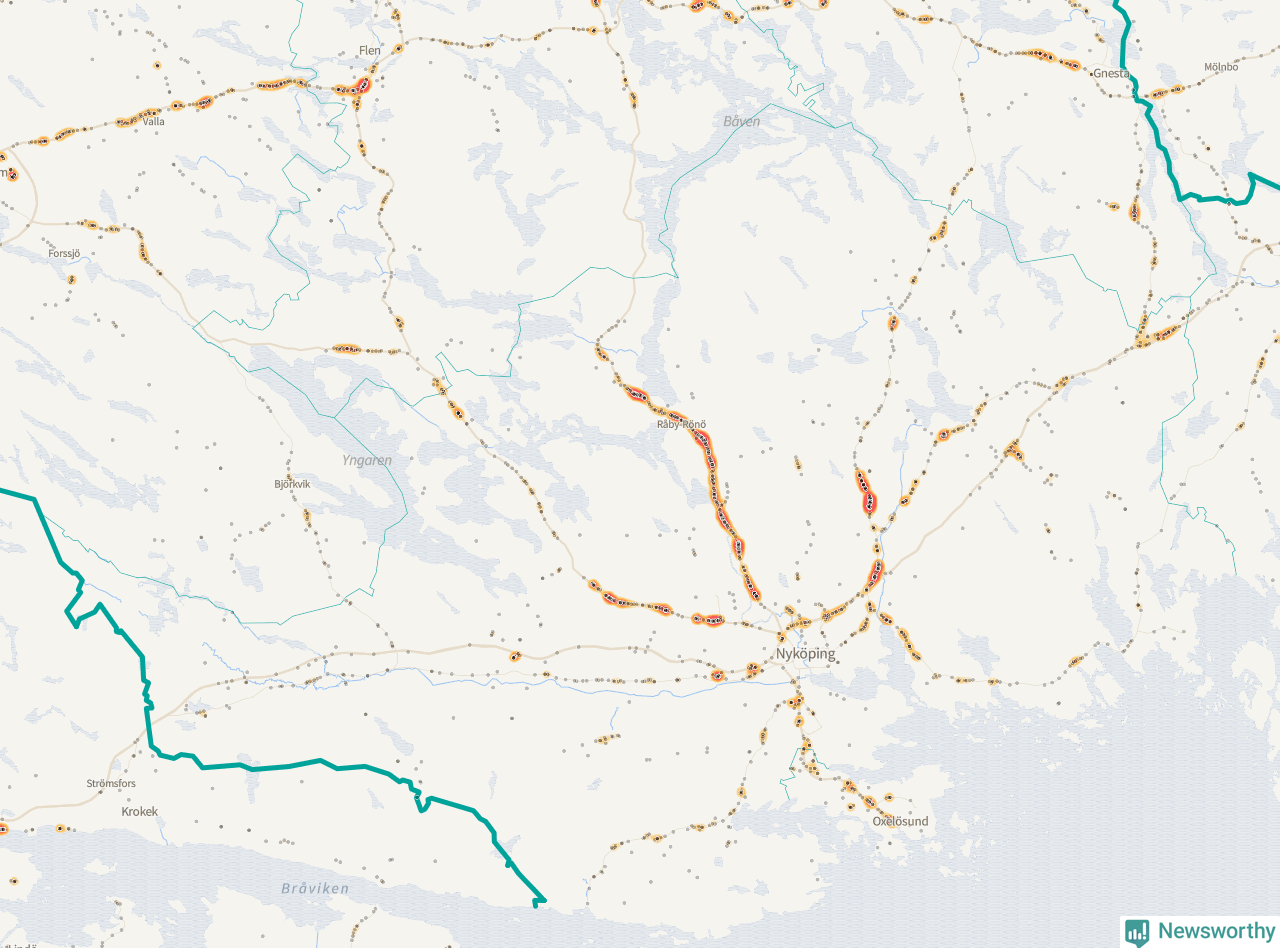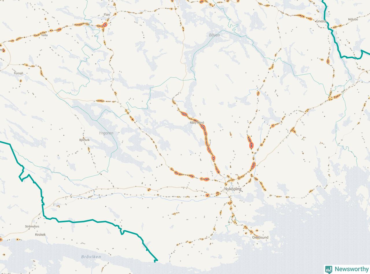 De mest viltolycksdrabbade vägarna i Nyköping 2020–2024