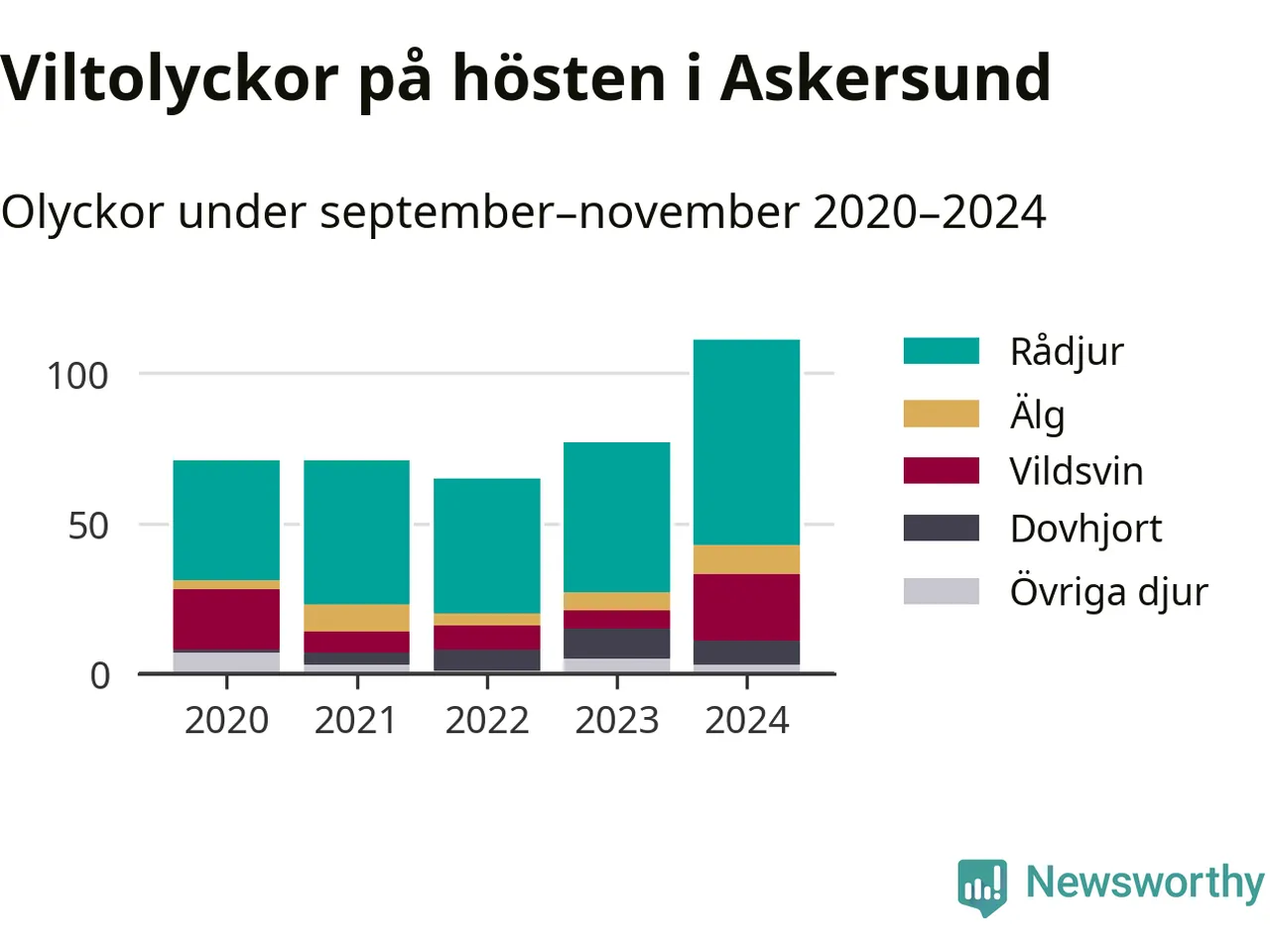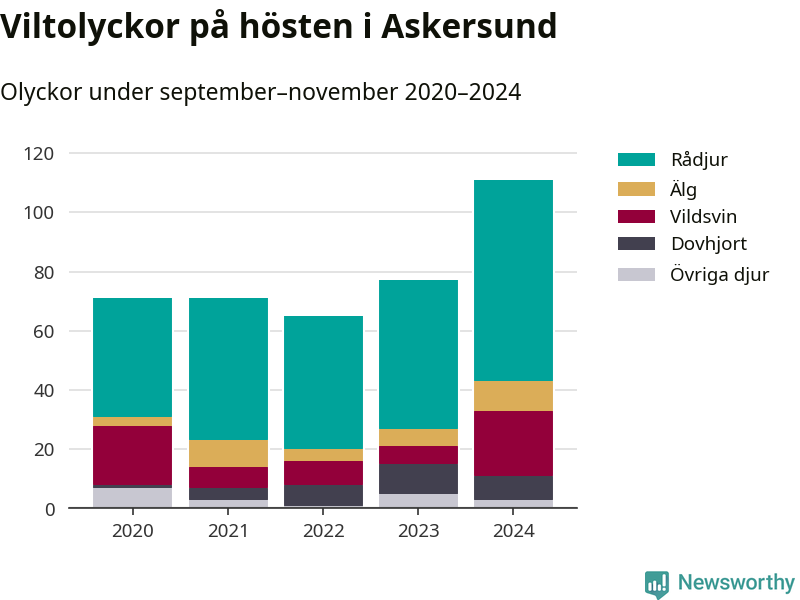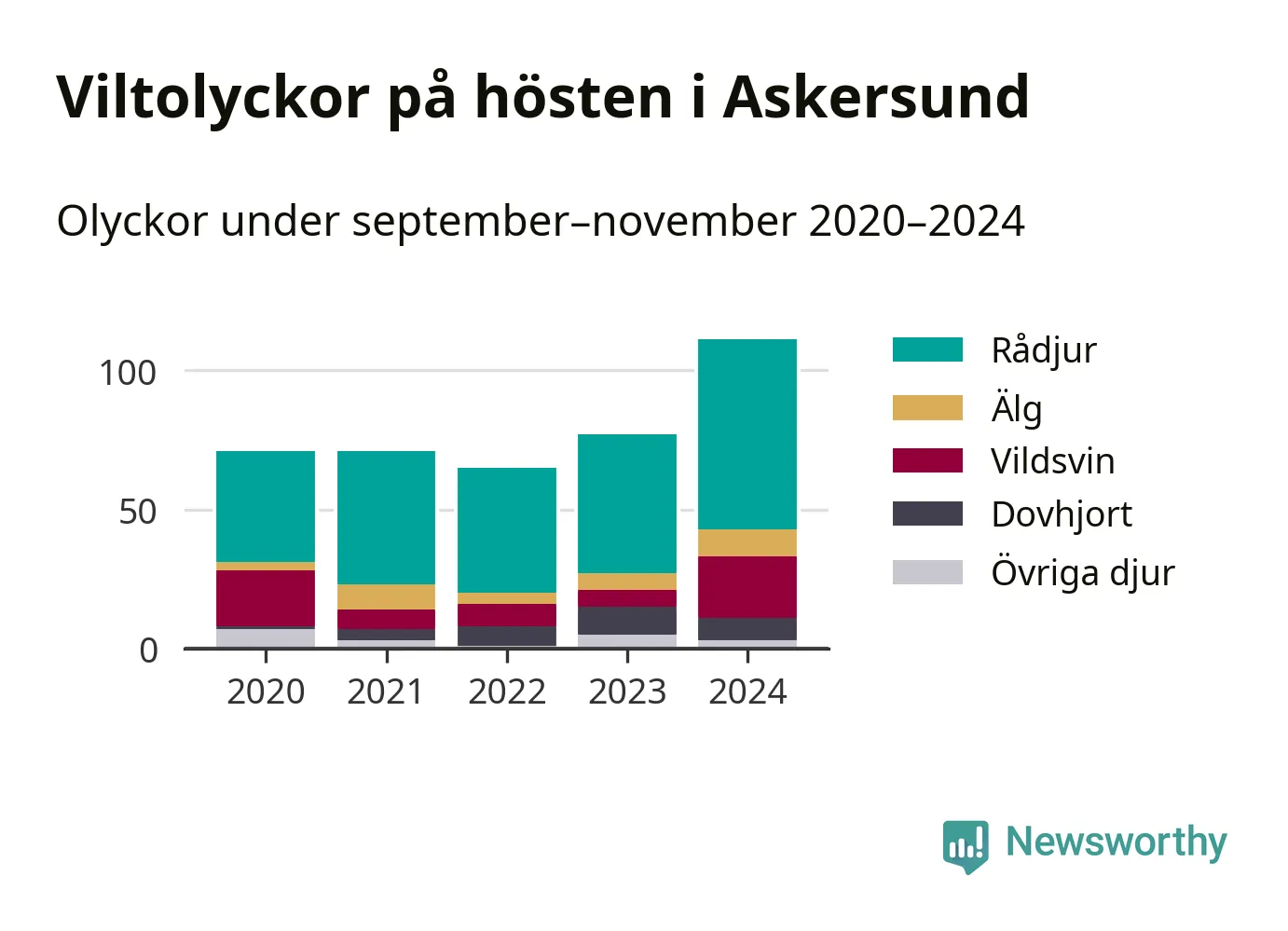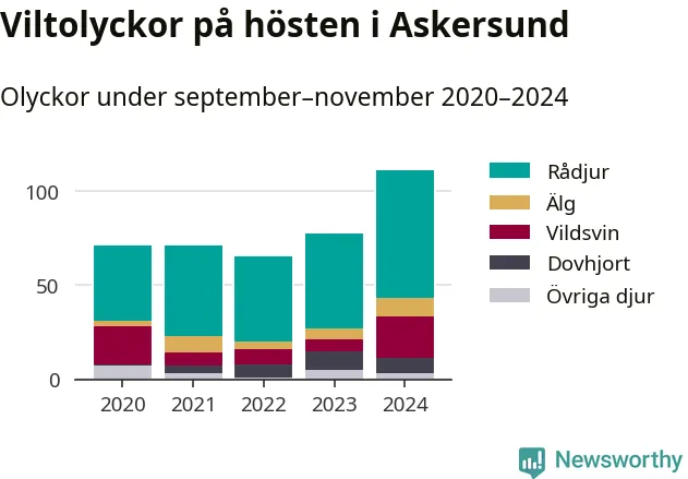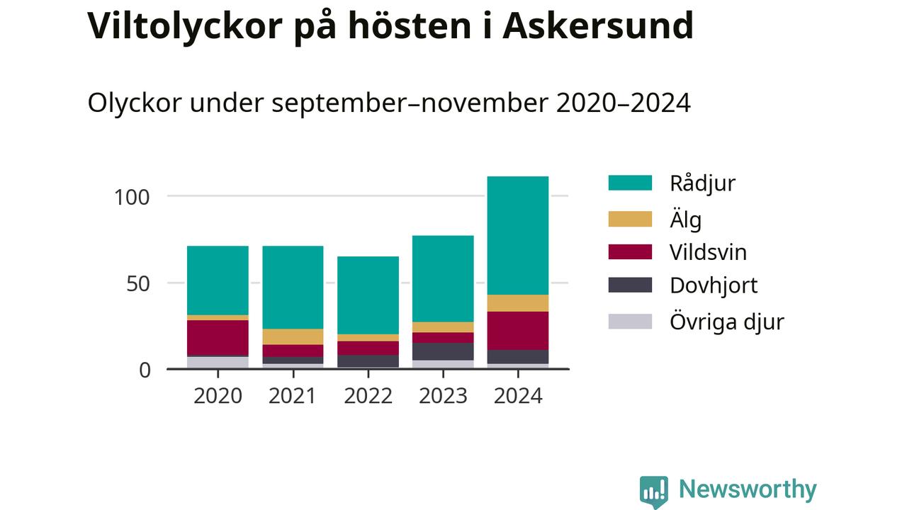 Under de senaste höstarna har antalet viltolyckor ökat i Sverige. I fjol höst noterades också flest viltolyckor i Askersund hittills under 2020-talet, totalt 111 stycken.