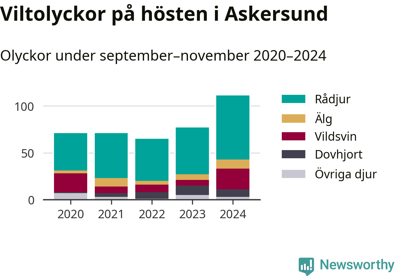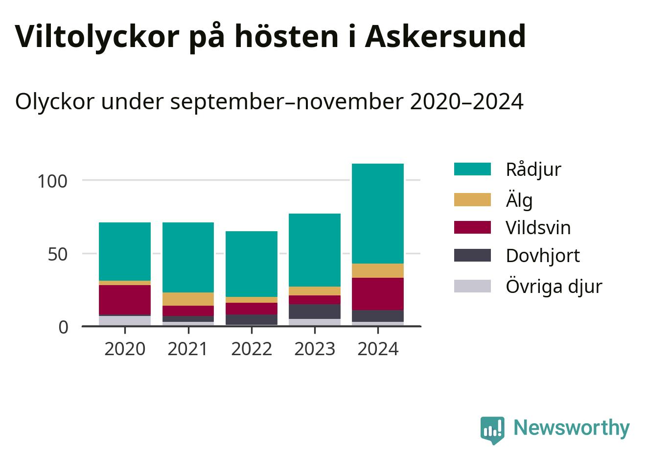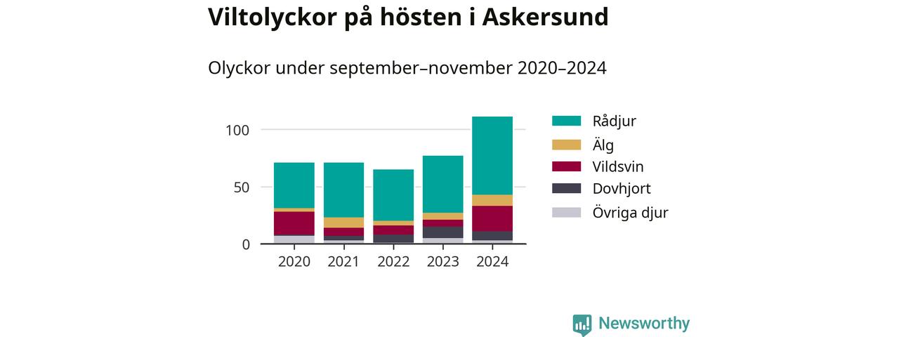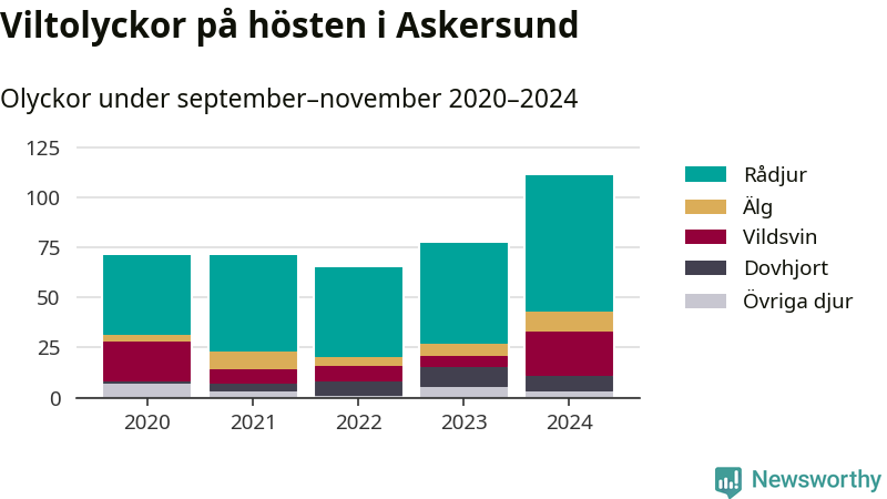 Under de senaste höstarna har antalet viltolyckor ökat i Sverige. I fjol höst noterades också flest viltolyckor i Askersund hittills under 2020-talet, totalt 111 stycken.