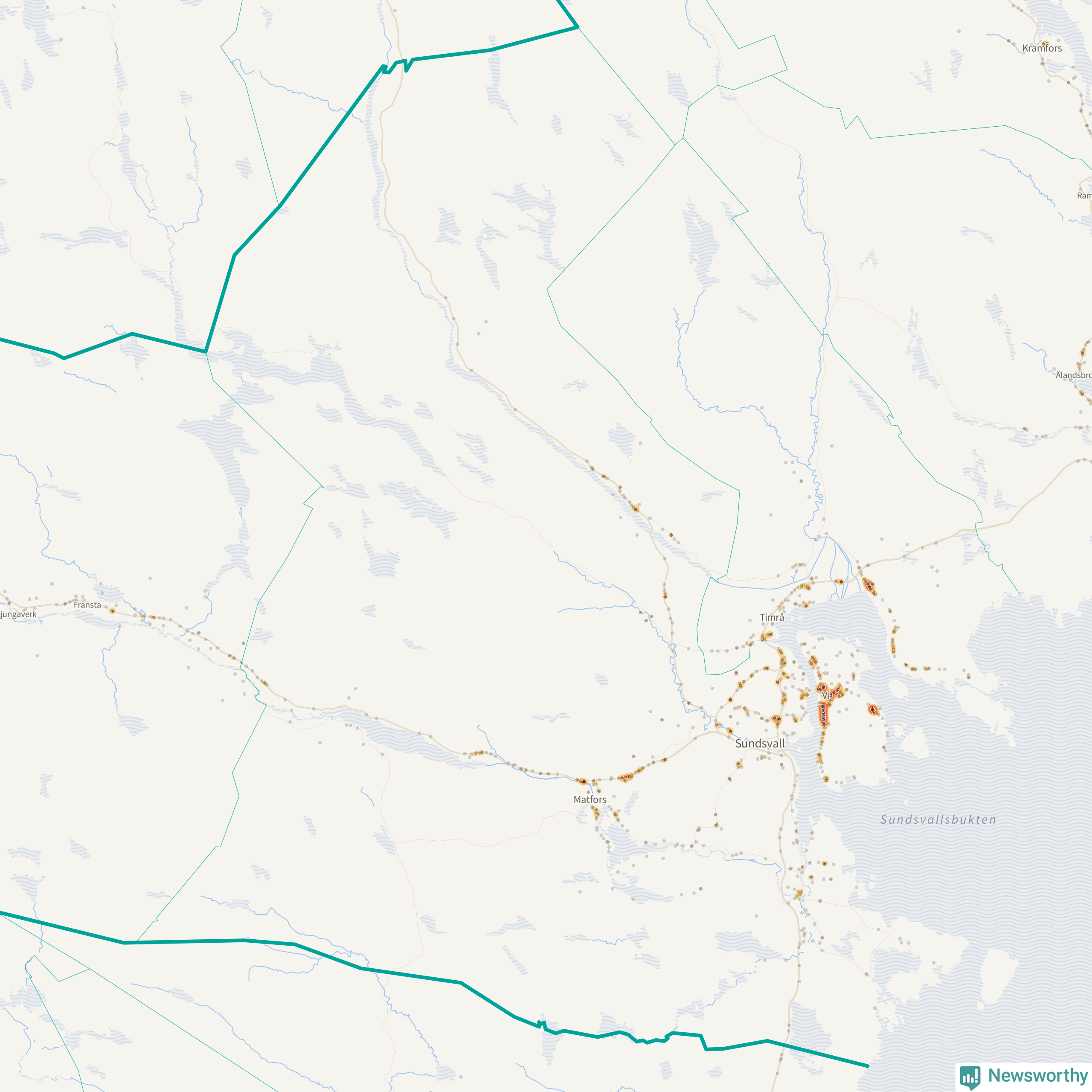 Flest olyckor i kommunen – 92 stycken – har skett längs väg 665 (Raholmsvägen/Alnövägen/Skärgårdsvägen). Av dessa orsakades 85 av rådjur. Längs E14 har 72 viltolyckor rapporterats under motsvarande period.