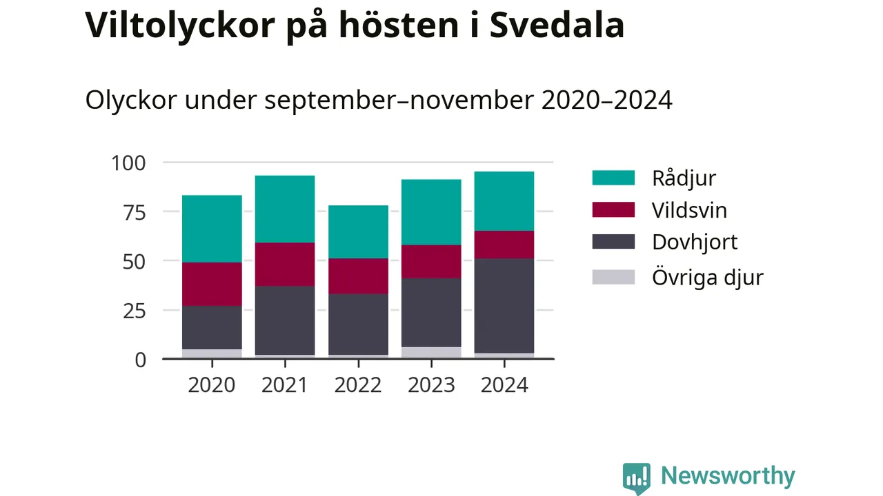 Under de senaste höstarna har antalet viltolyckor ökat i Sverige. I fjol höst noterades också flest viltolyckor i Svedala hittills under 2020-talet, totalt 95 stycken.