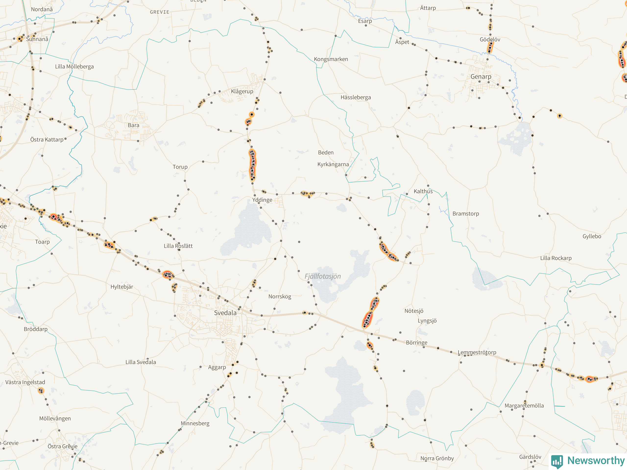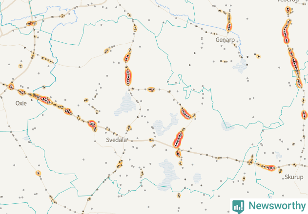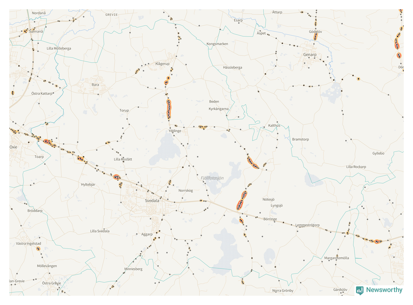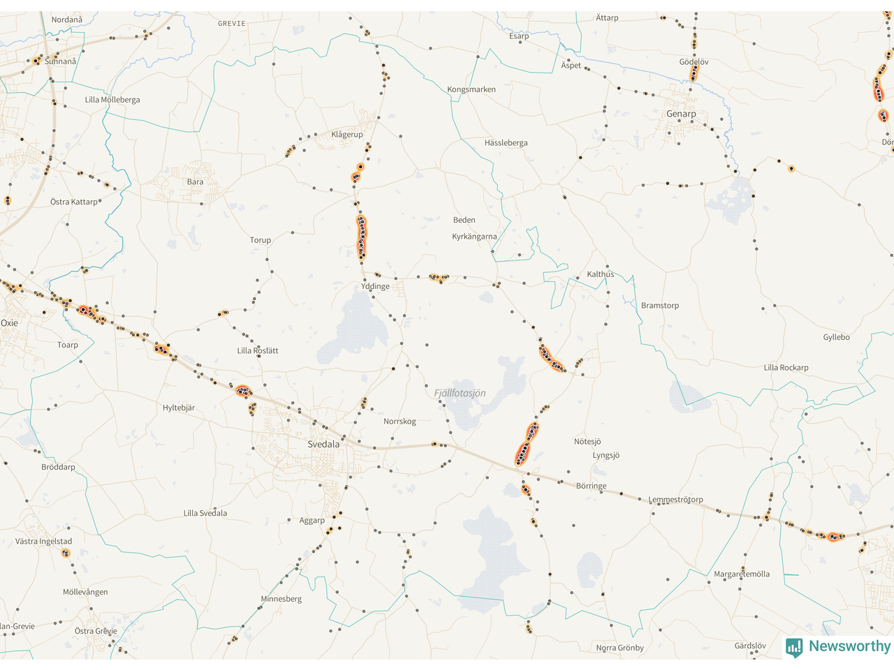 De mest viltolycksdrabbade vägarna i Svedala 2020–2024
