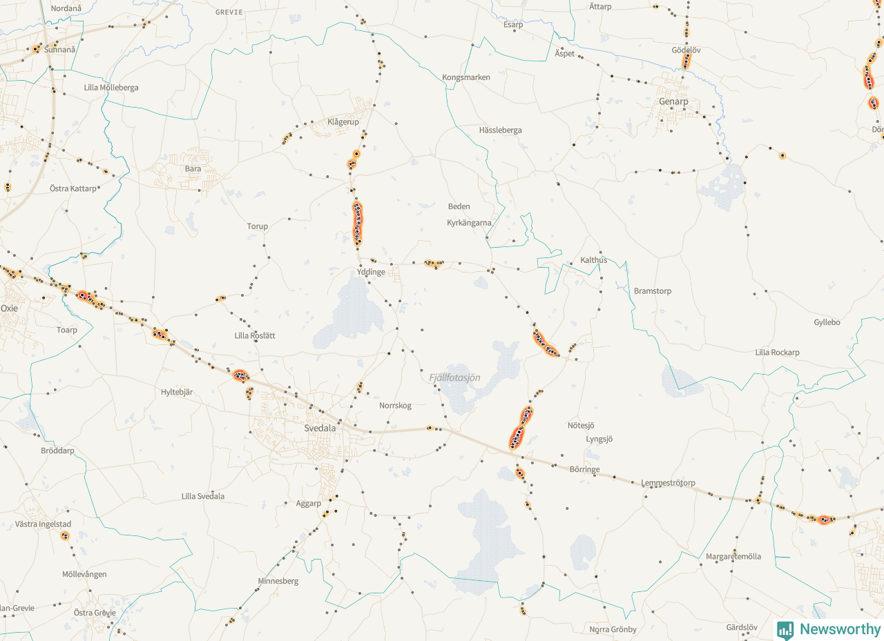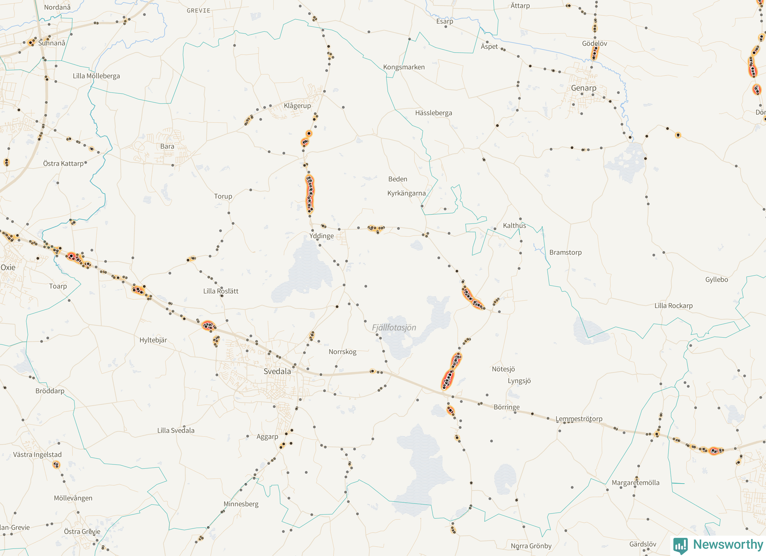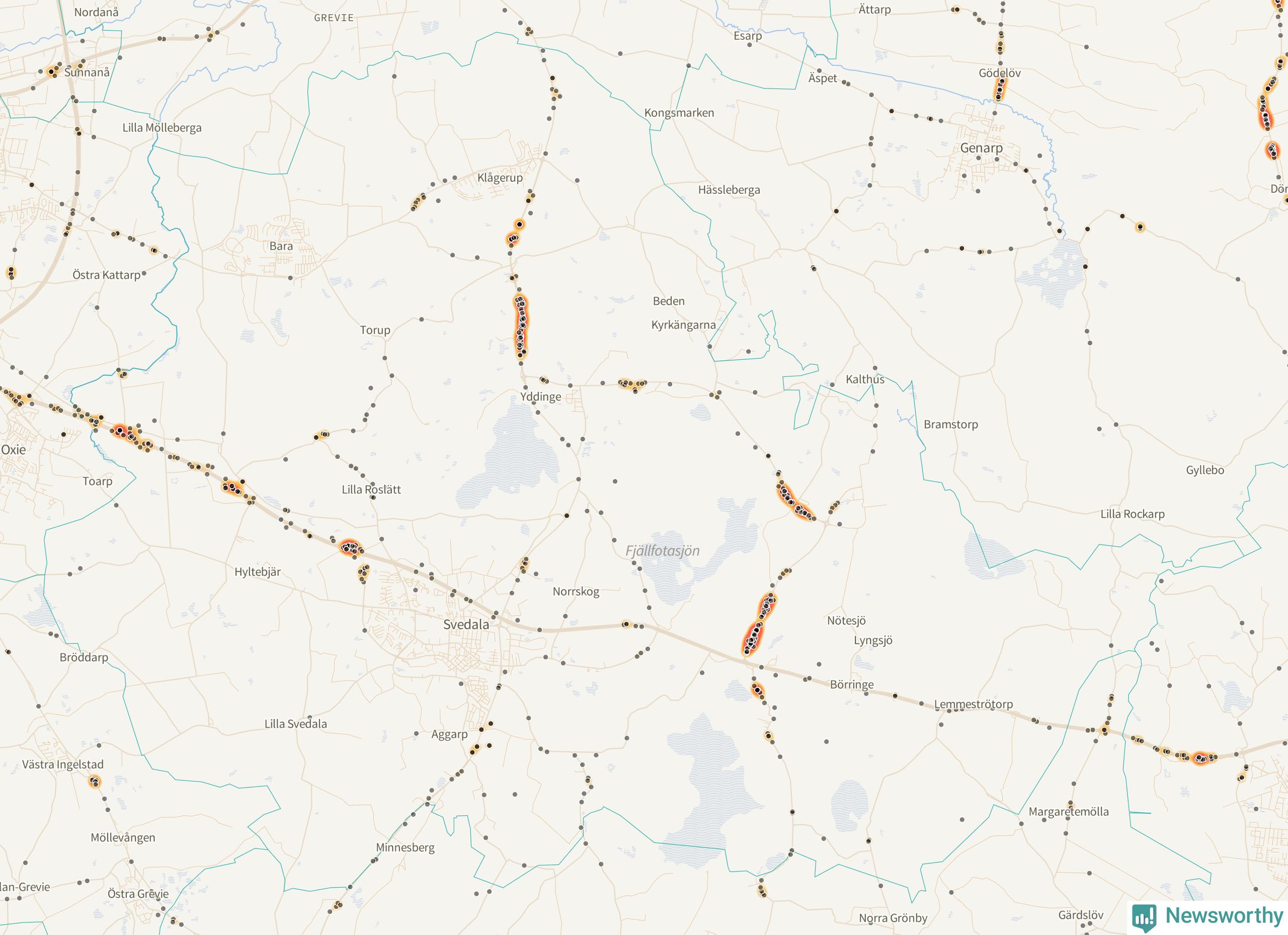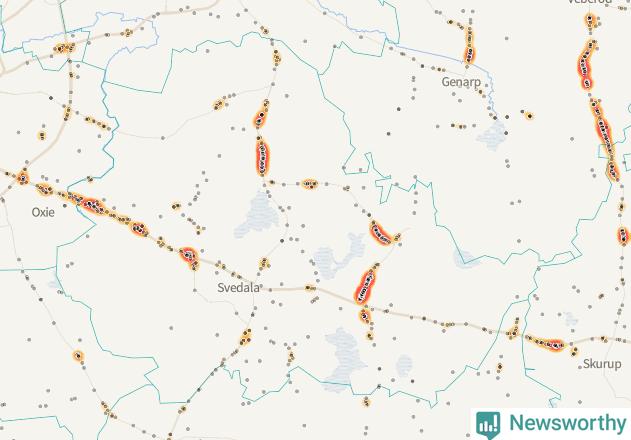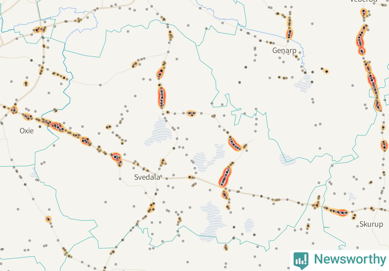 De mest viltolycksdrabbade vägarna i Svedala 2020–2024