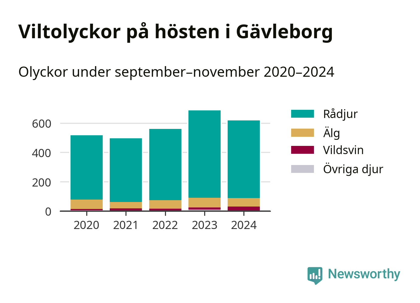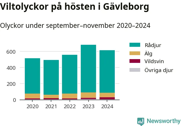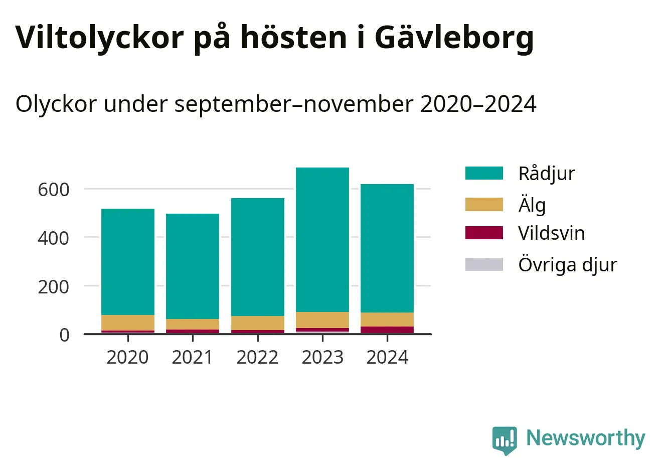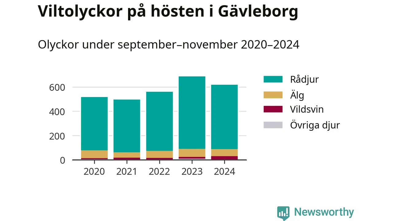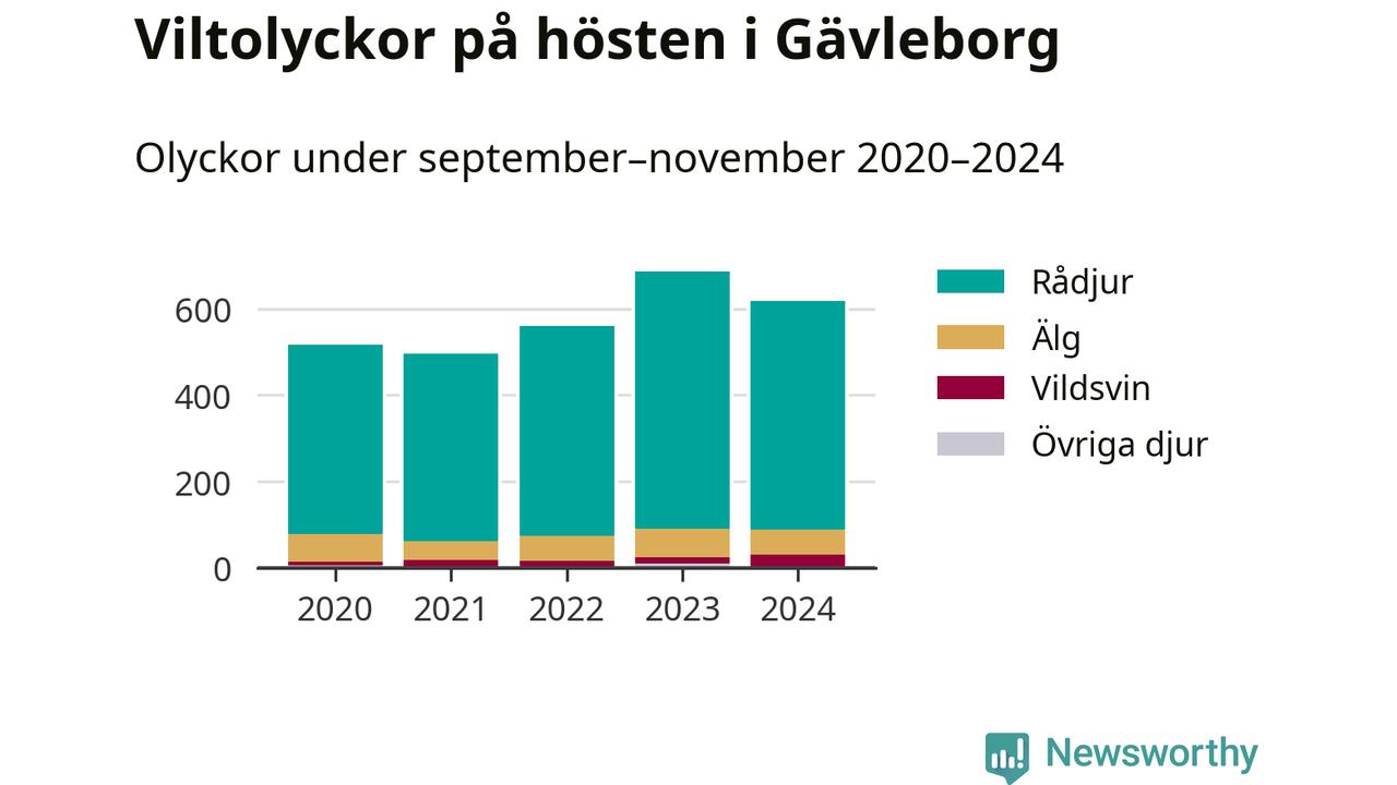 Under de senaste höstarna har antalet viltolyckor ökat i Sverige. Den höst med flest viltolyckor i Gävleborg hittills under 2020-talet var 2023, 685 olyckor. I fjol höst rapporterades totalt 617 olyckor.