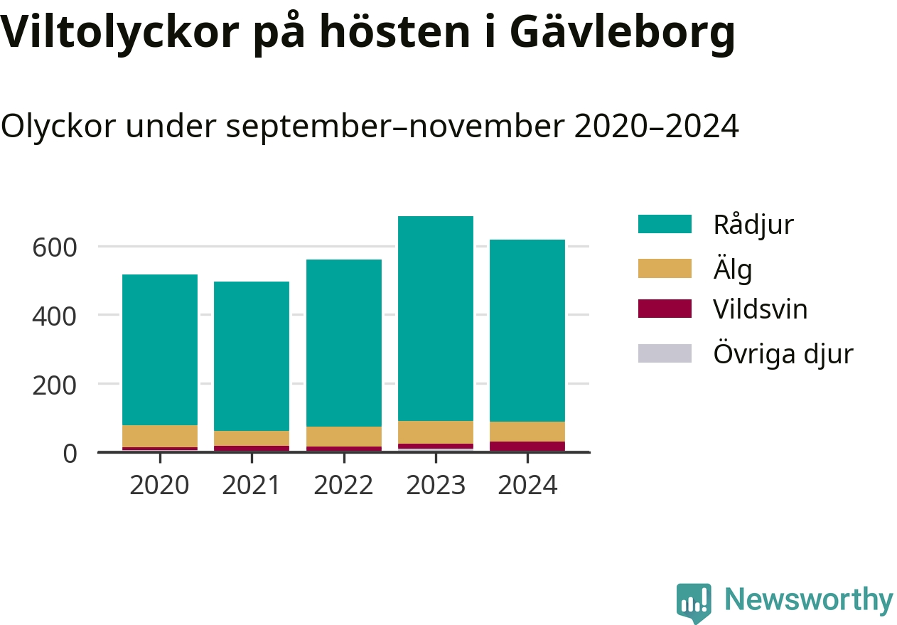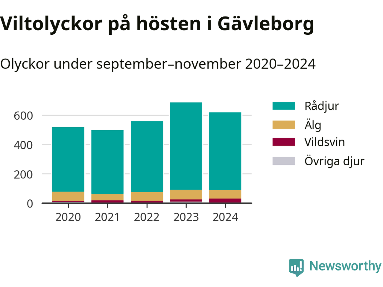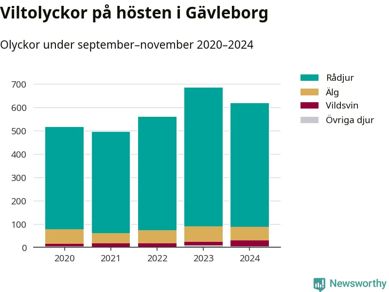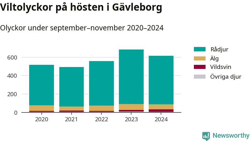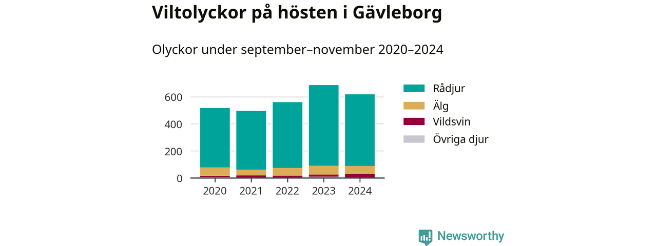 Under de senaste höstarna har antalet viltolyckor ökat i Sverige. Den höst med flest viltolyckor i Gävleborg hittills under 2020-talet var 2023, 685 olyckor. I fjol höst rapporterades totalt 617 olyckor.