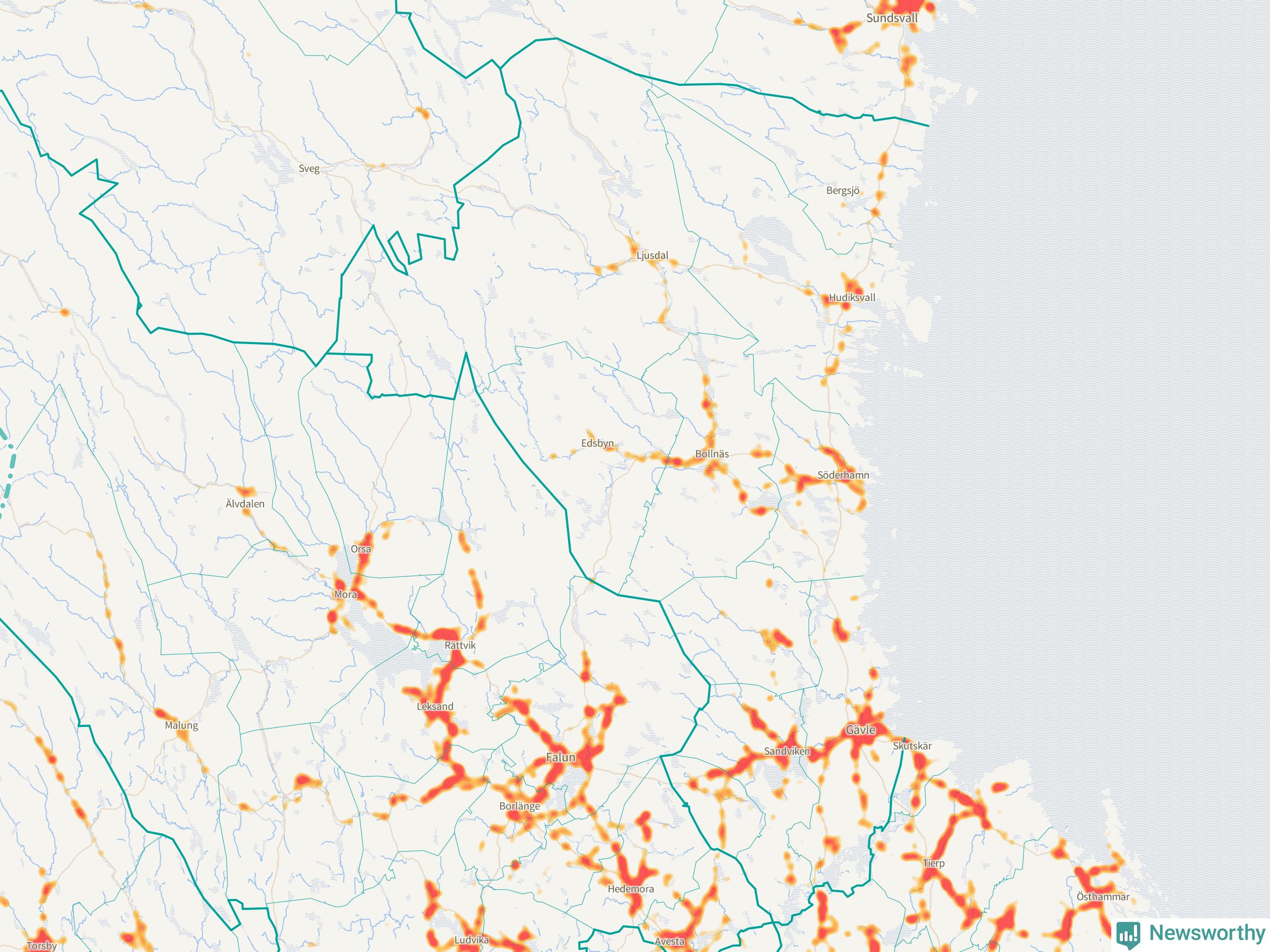 | Söderhamn | väg 583 | rådjur, älg | 315 |