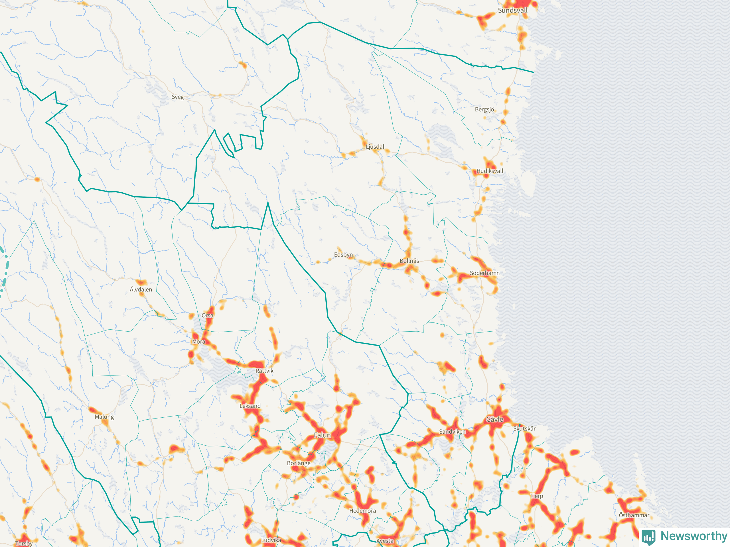 På hösten ökar risken för viltolyckor längs vägarna. Under de senaste fem höstarna har totalt 2 873 olyckor rapporterats i Gävleborgs län. Här är de mest drabbade vägarna.