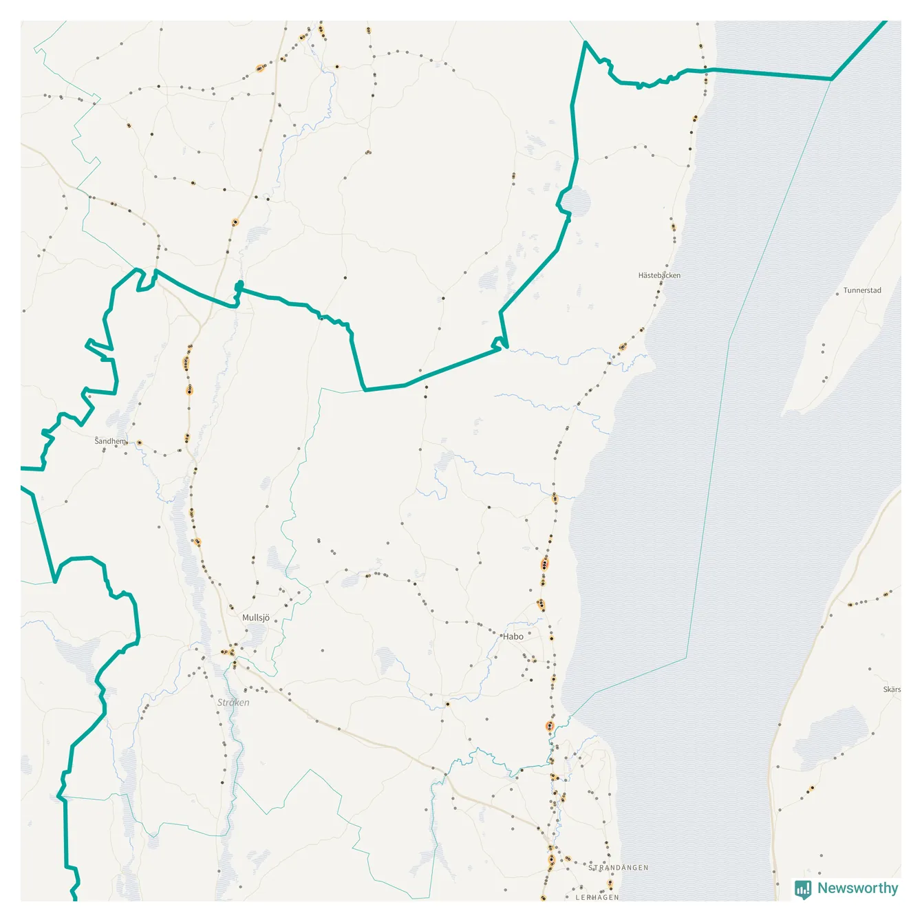 På hösten ökar risken för viltolyckor längs vägarna. Under de senaste fem höstarna har totalt 205 olyckor rapporterats i Habo kommun – de flesta längs väg 195. Här är de mest drabbade vägarna.