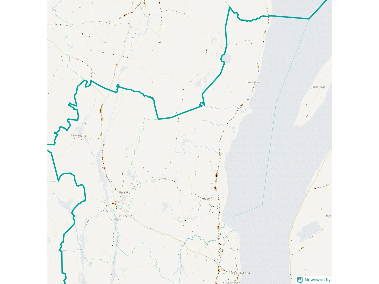 De flesta olyckor i kommunen – 120 stycken – har skett längs väg 195. Av dessa orsakades 88 av rådjur. Längs väg 1819 har 29 viltolyckor rapporterats under motsvarande period.