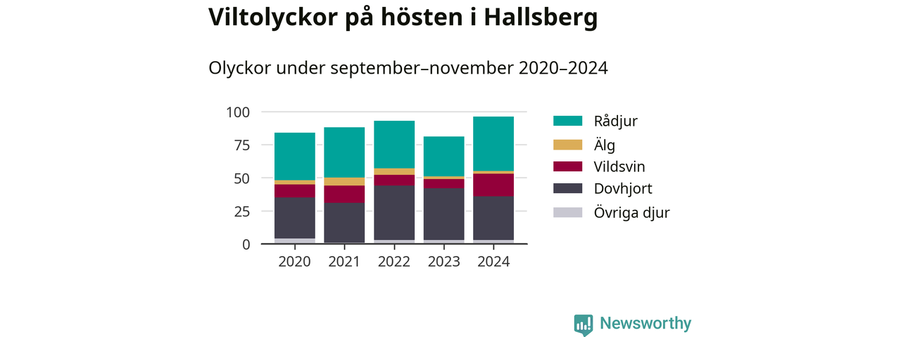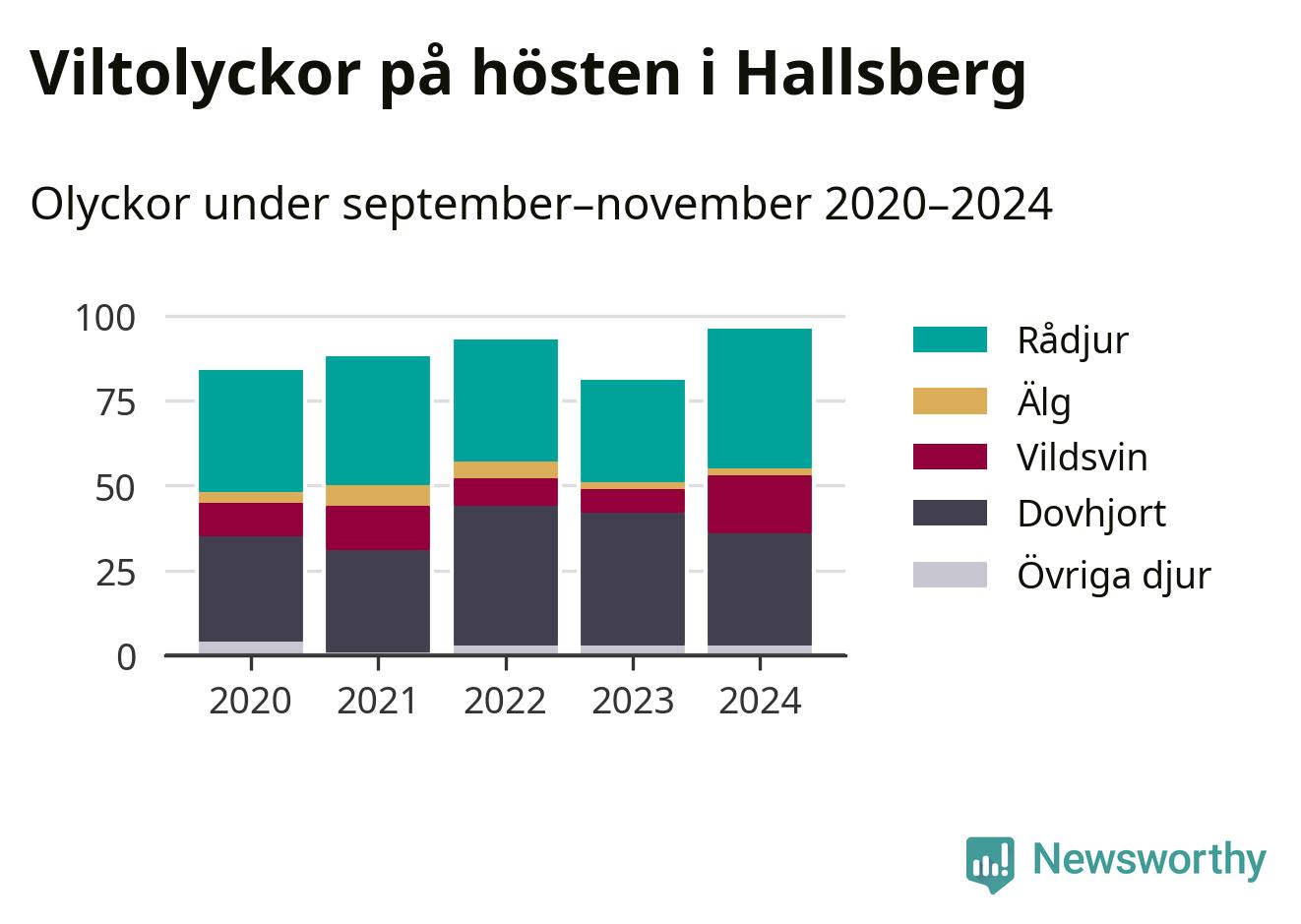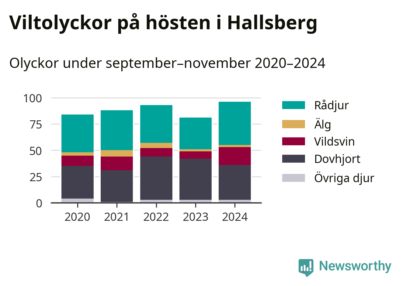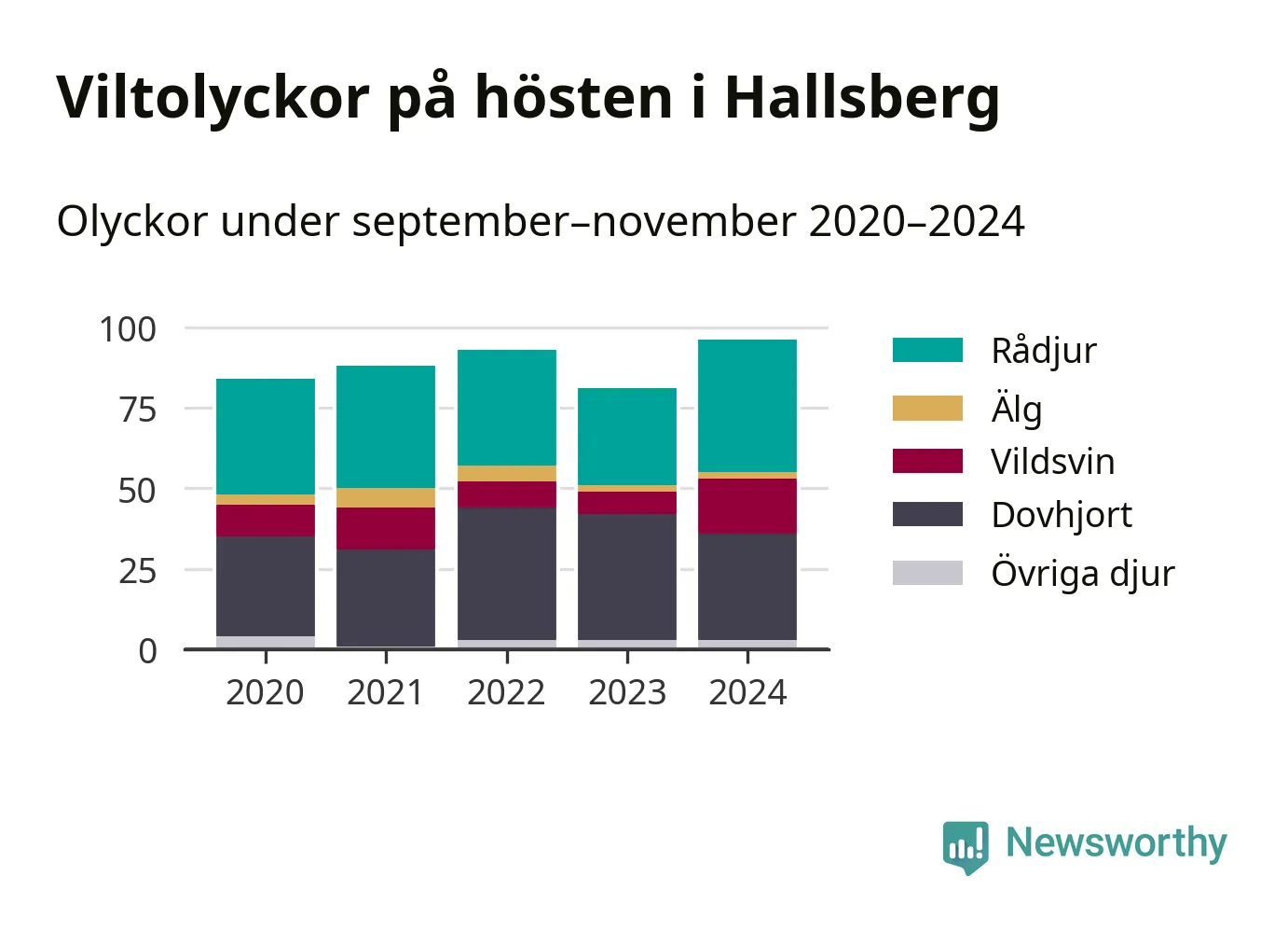 Under de senaste höstarna har antalet viltolyckor ökat i Sverige. I fjol höst noterades också flest viltolyckor i Hallsberg hittills under 2020-talet, totalt 96 stycken.