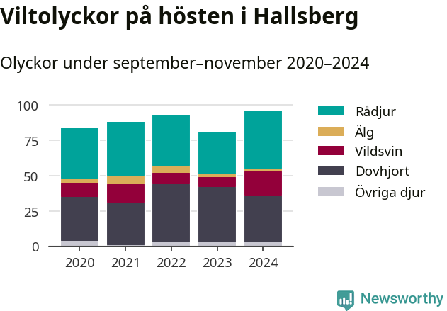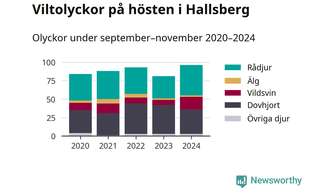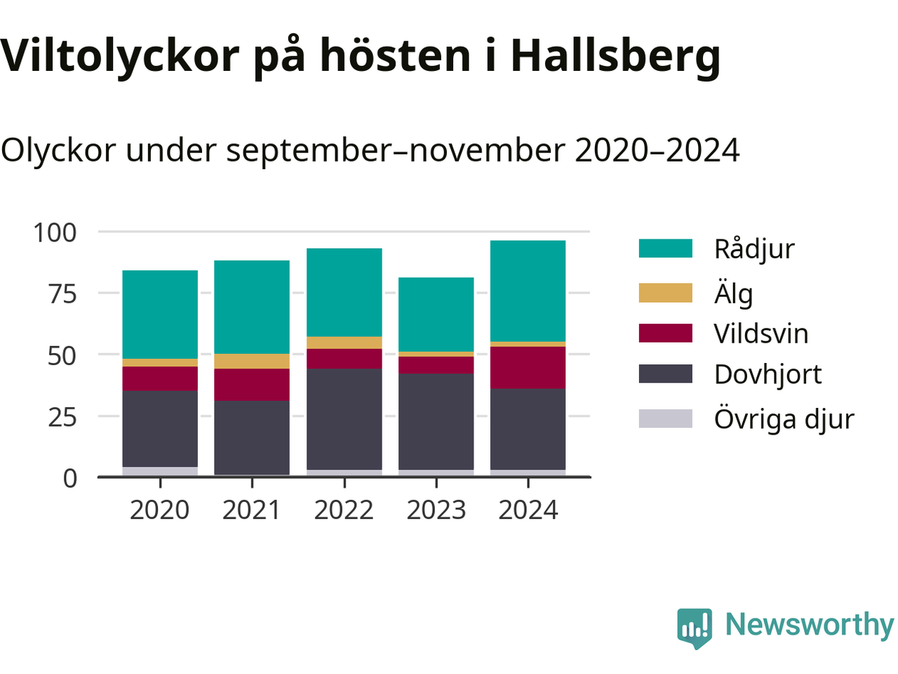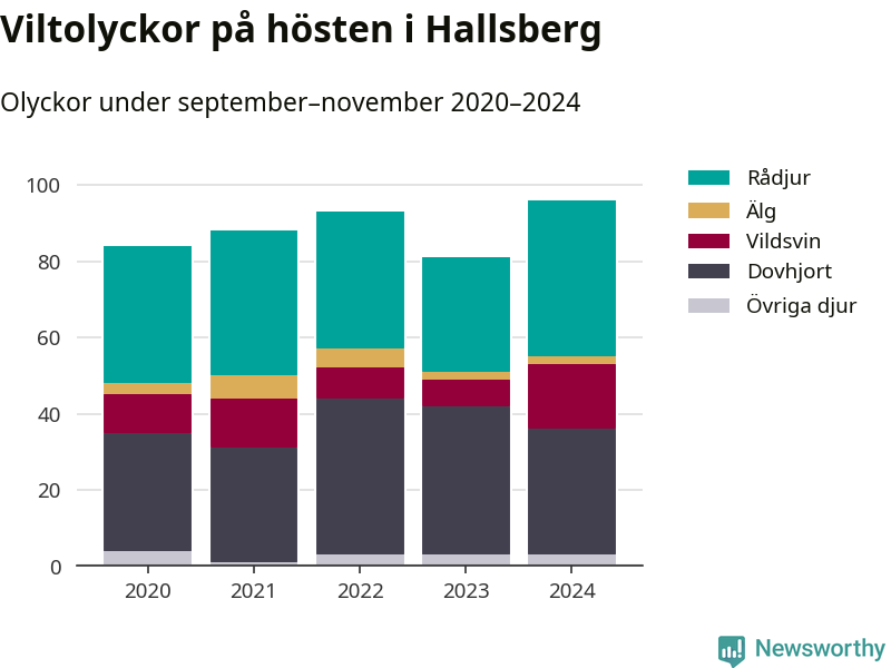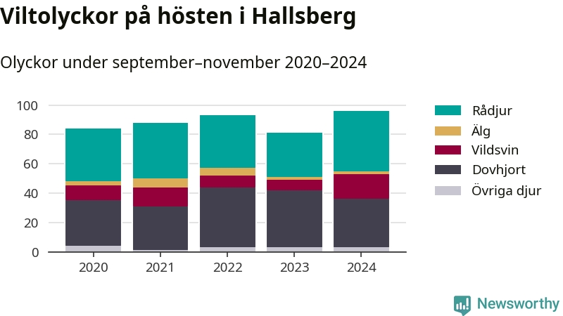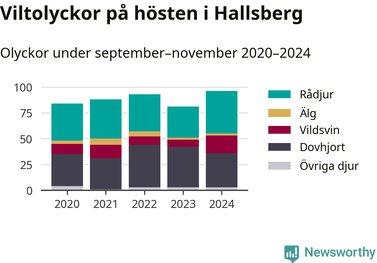 Under de senaste höstarna har antalet viltolyckor ökat i Sverige. I fjol höst noterades också flest viltolyckor i Hallsberg hittills under 2020-talet, totalt 96 stycken.