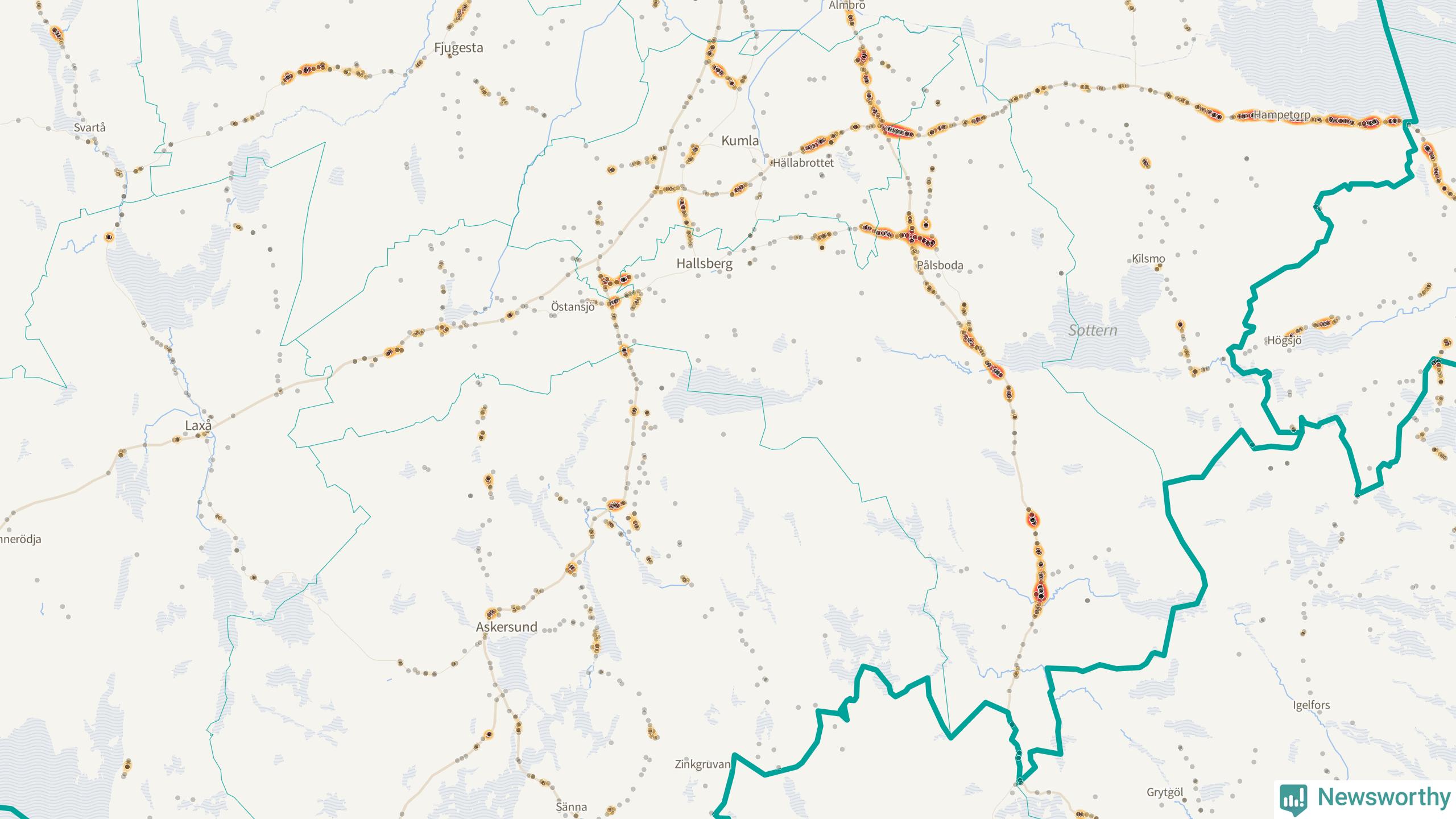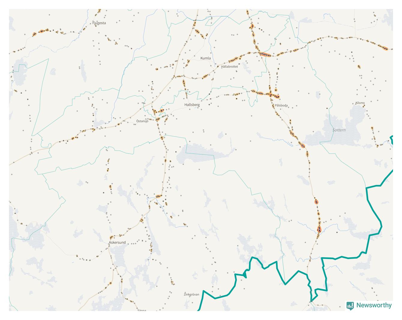 På hösten ökar risken för viltolyckor längs vägarna. Under de senaste fem höstarna har totalt 442 olyckor rapporterats i Hallsbergs kommun. Här är de mest drabbade vägarna.