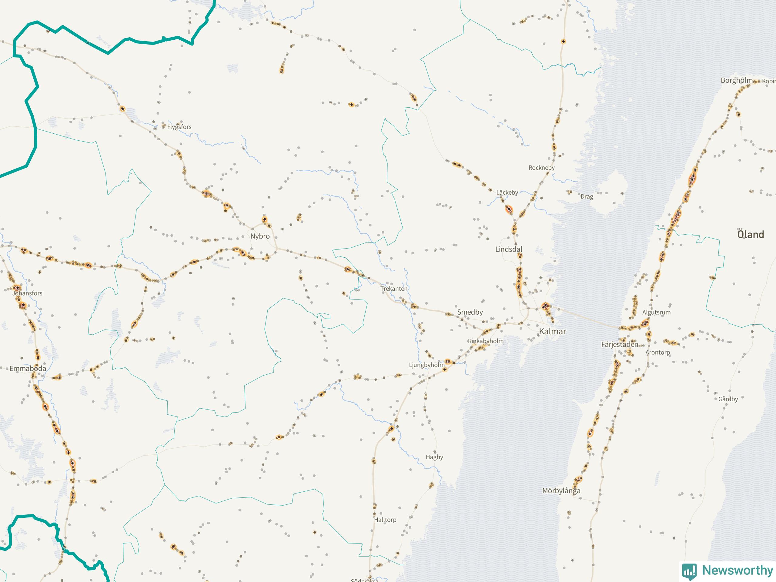 | Kalmar | E22 | rådjur, vildsvin | 551 |