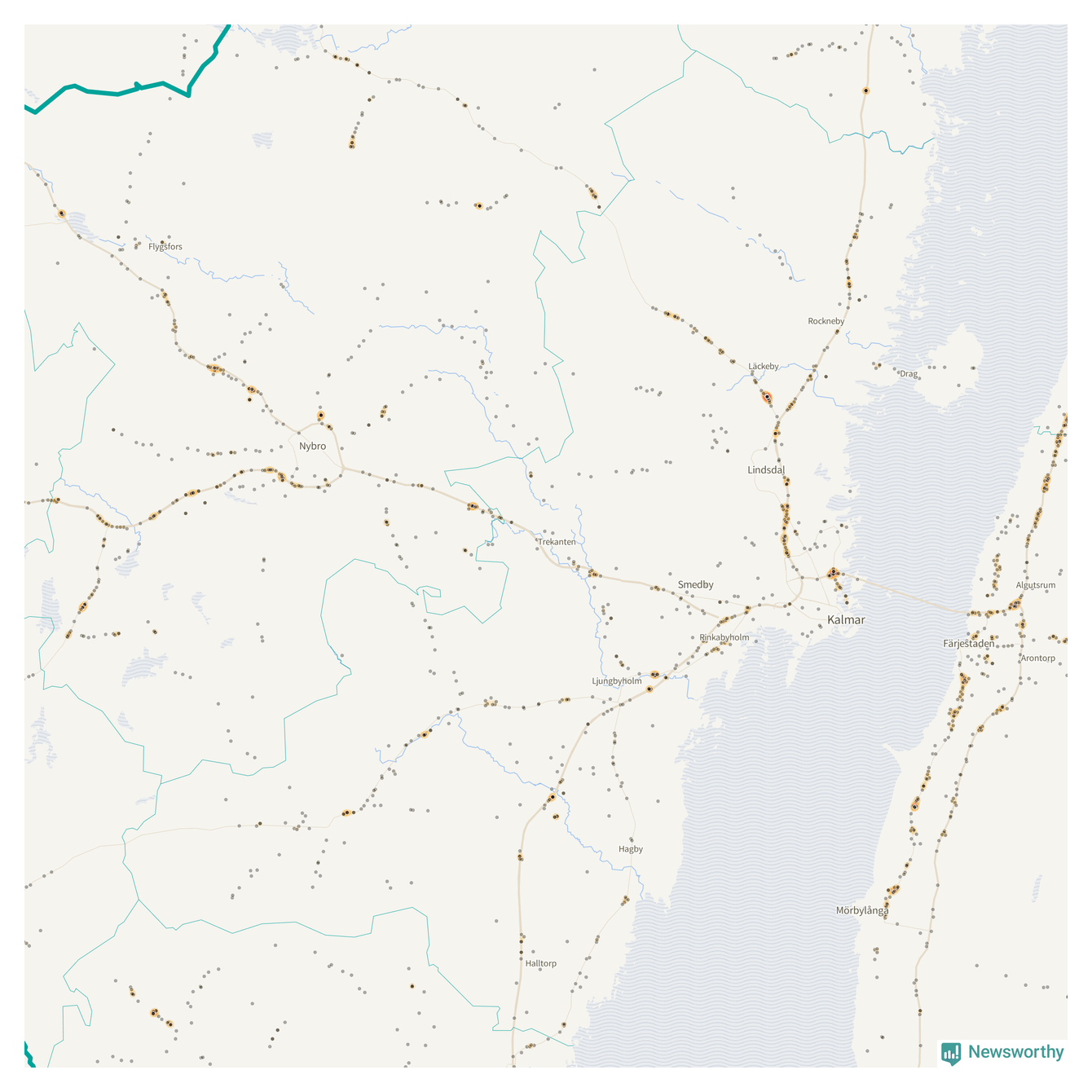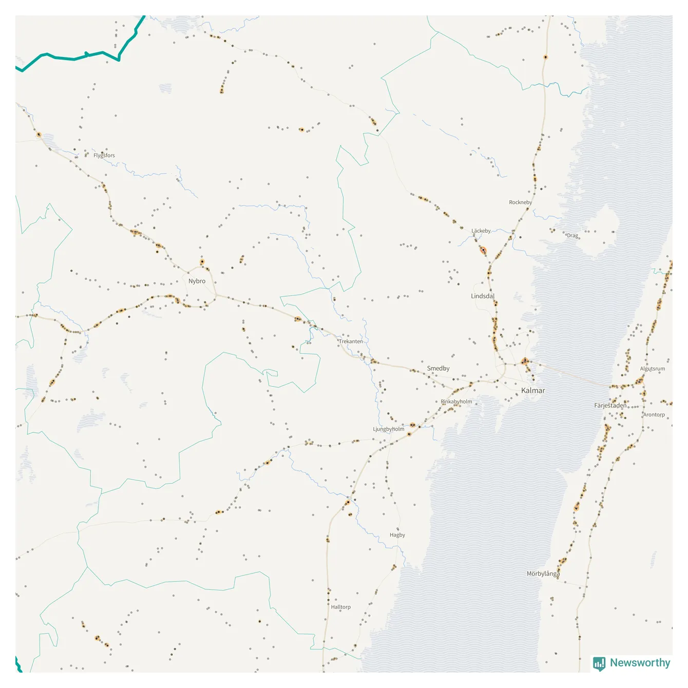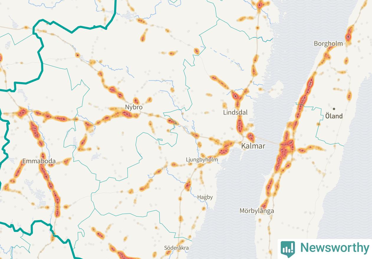 På hösten ökar risken för viltolyckor längs vägarna. Under de senaste fem höstarna har totalt 551 olyckor rapporterats i Kalmar kommun – och antalet olyckor med vildsvin ökar stadigt. Här är de mest drabbade vägarna.
