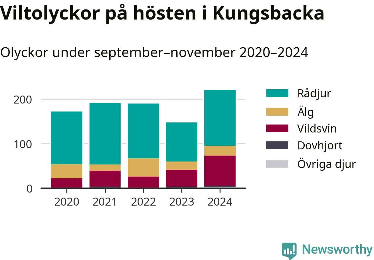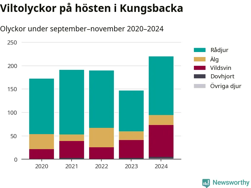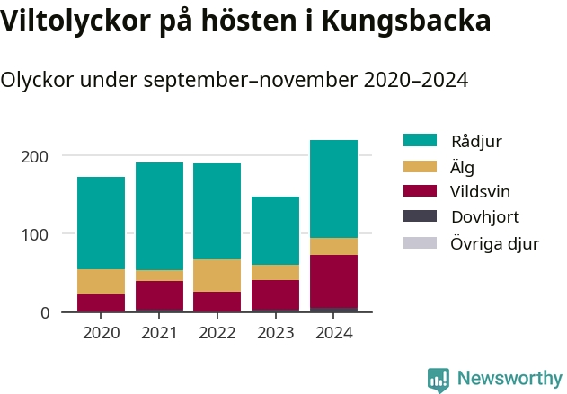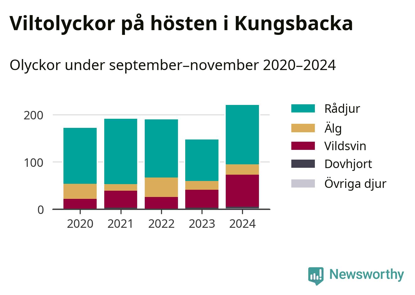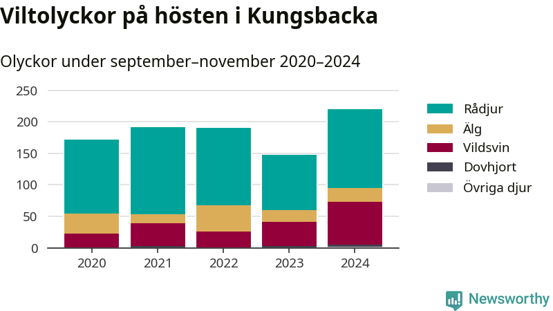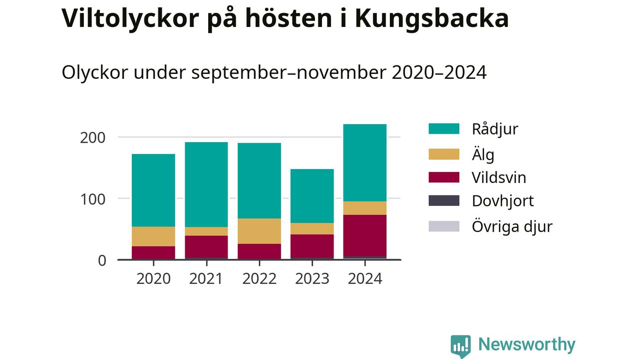 Under de senaste höstarna har antalet viltolyckor ökat i Sverige. I fjol höst noterades också flest viltolyckor i Kungsbacka hittills under 2020-talet, totalt 220 stycken.
