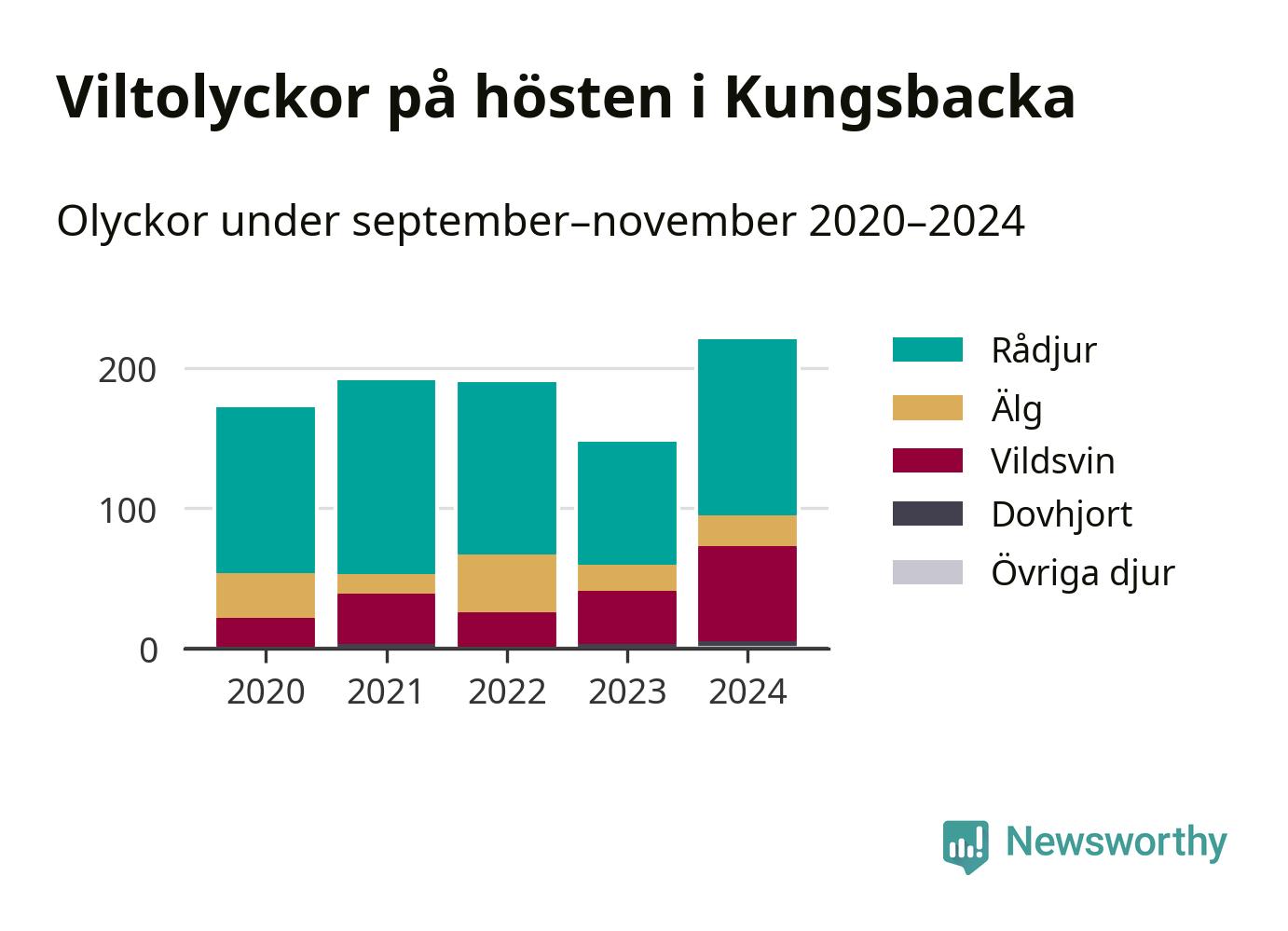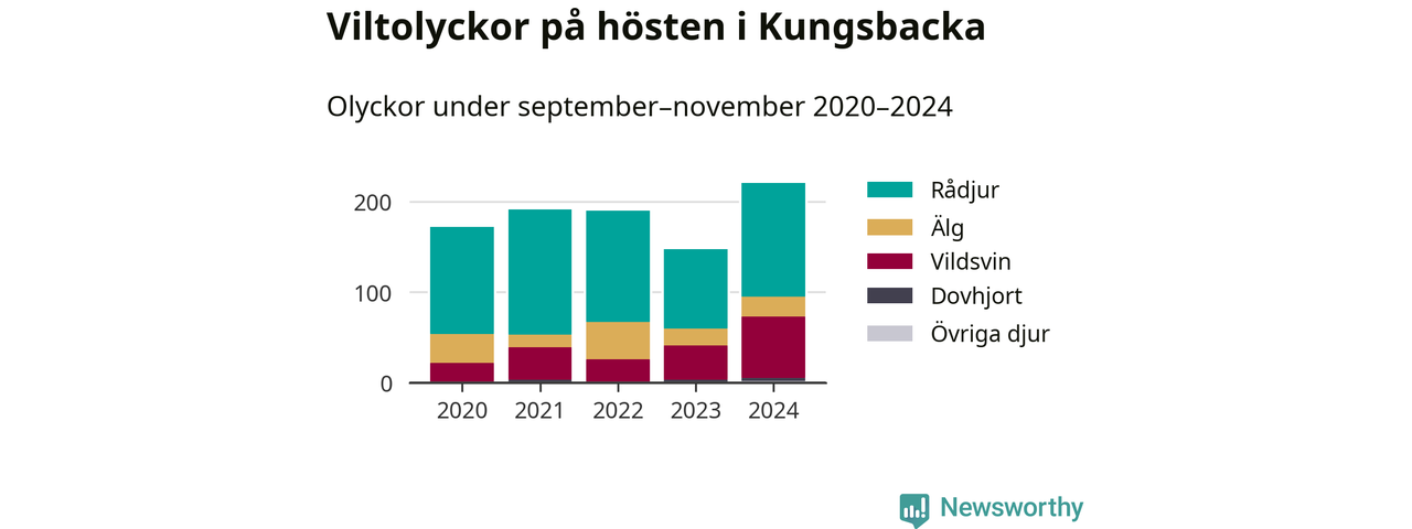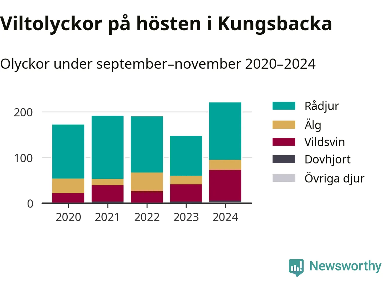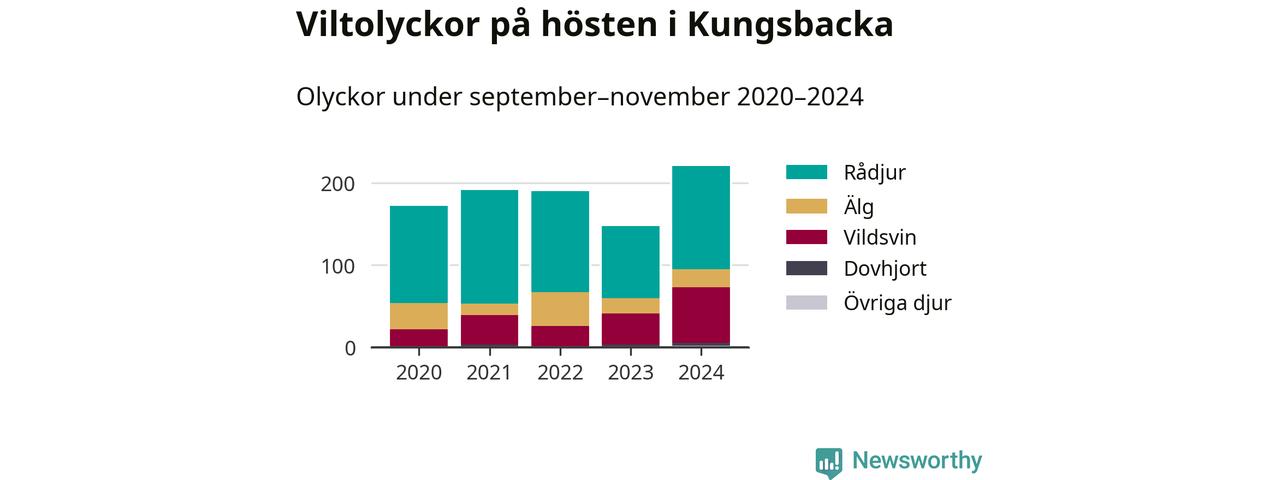 Under de senaste höstarna har antalet viltolyckor ökat i Sverige. I fjol höst noterades också flest viltolyckor i Kungsbacka hittills under 2020-talet, totalt 220 stycken.