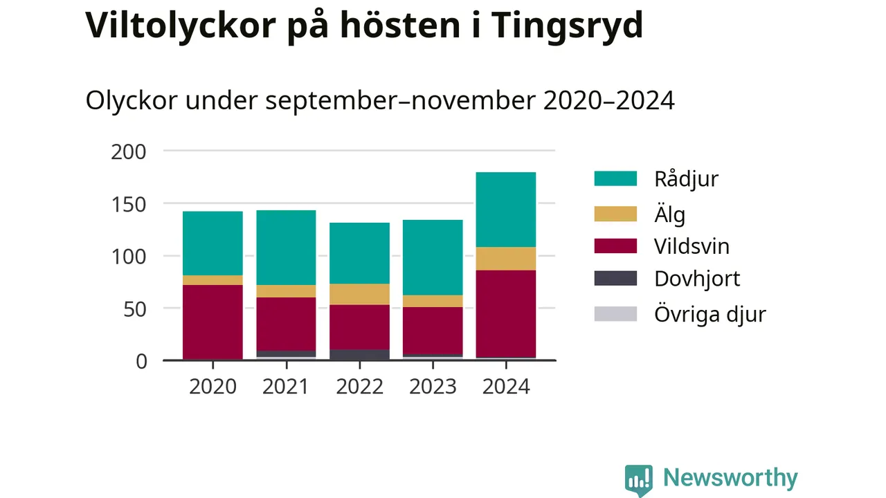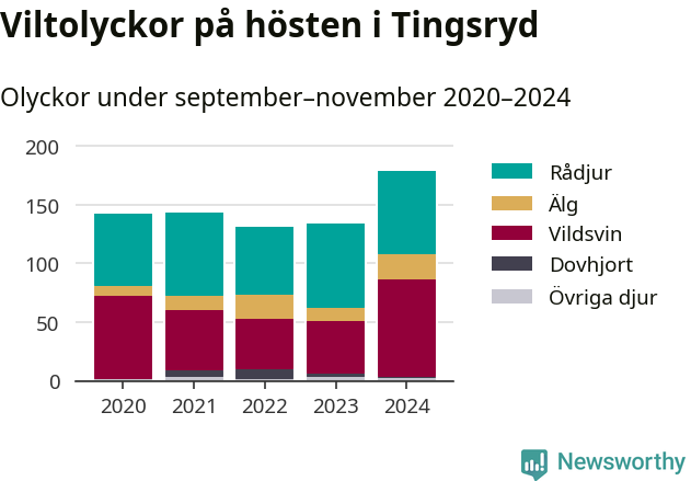 Under de senaste höstarna har antalet viltolyckor ökat i Sverige. I fjol höst noterades också flest viltolyckor i Tingsryd hittills under 2020-talet, totalt 179 stycken.