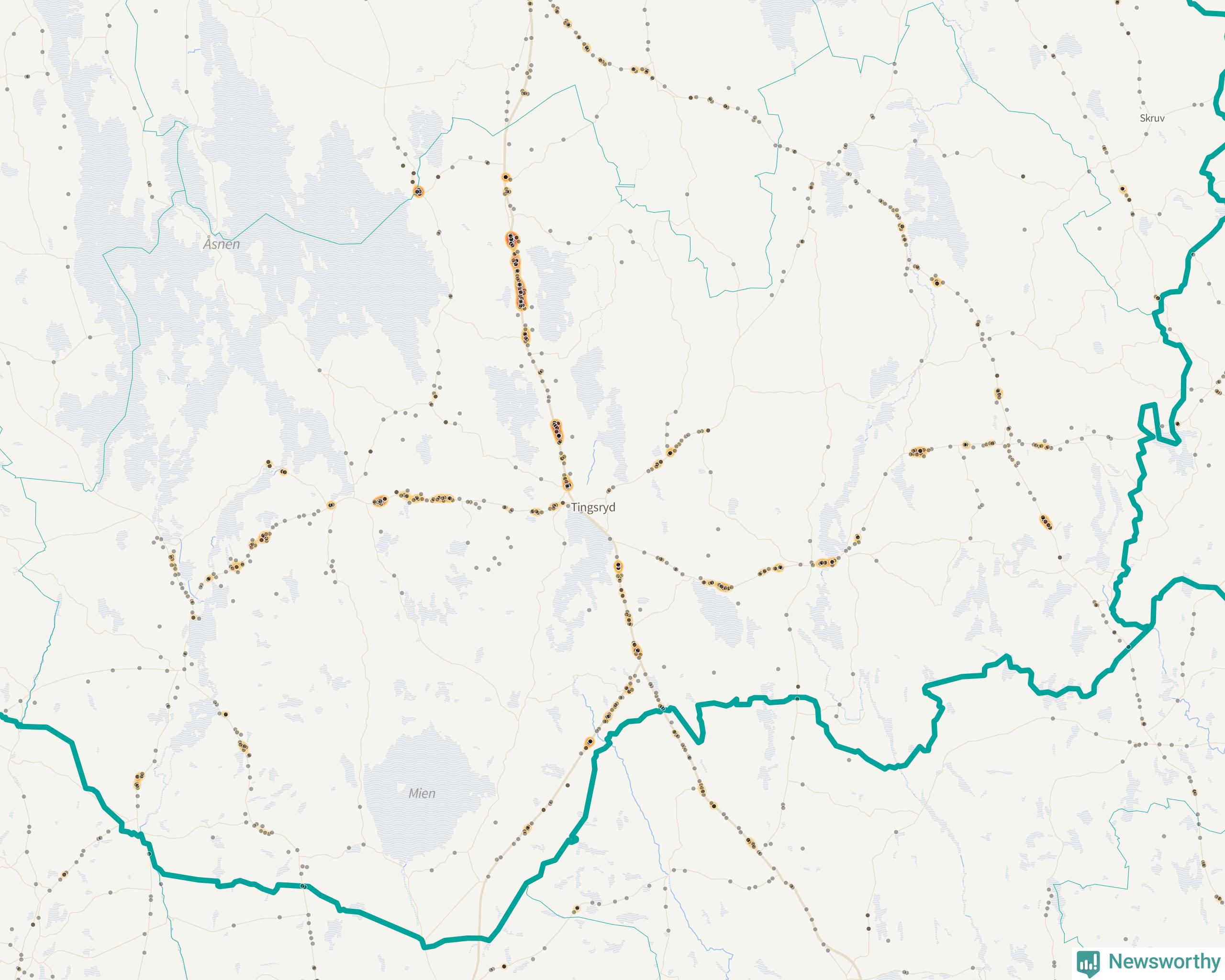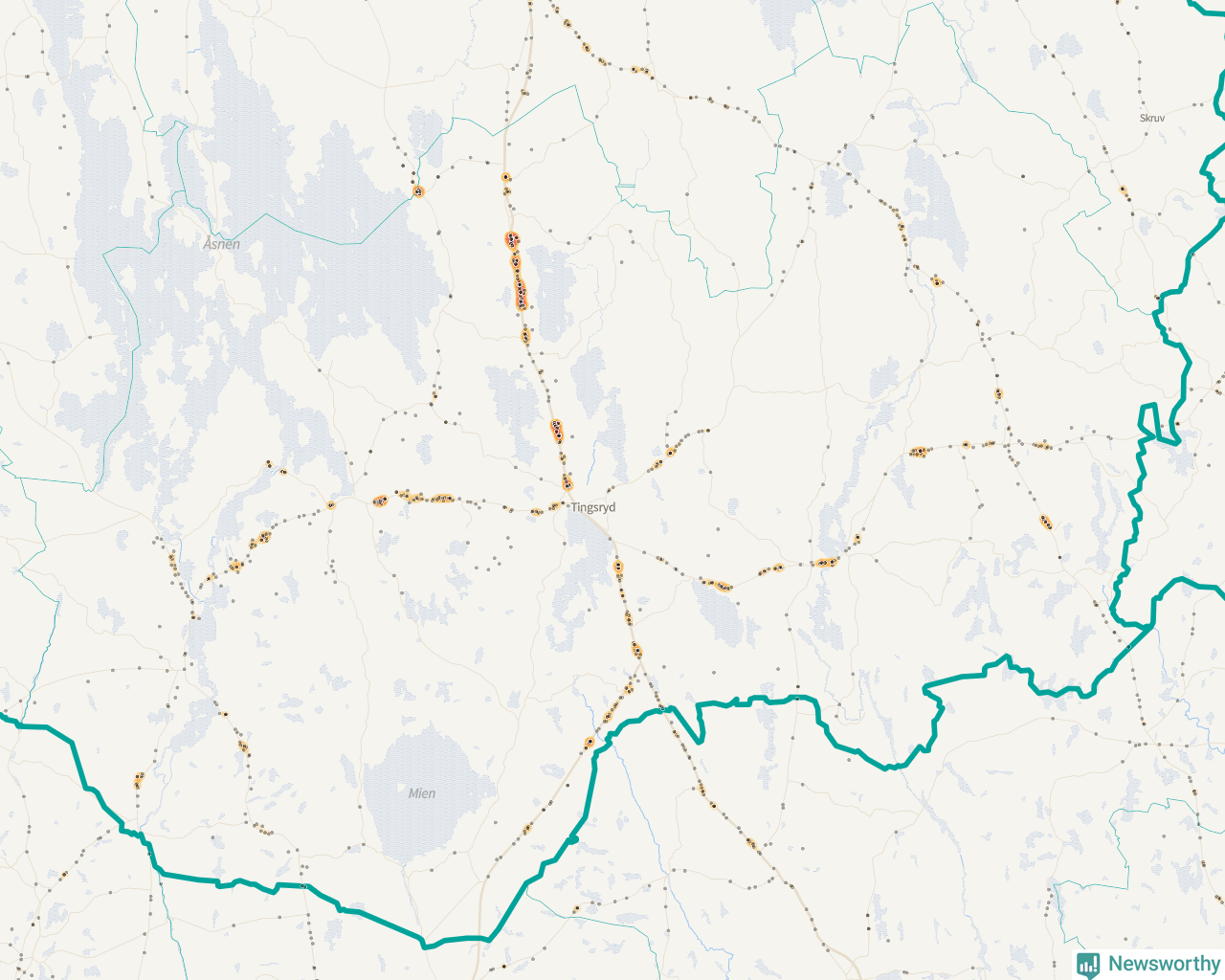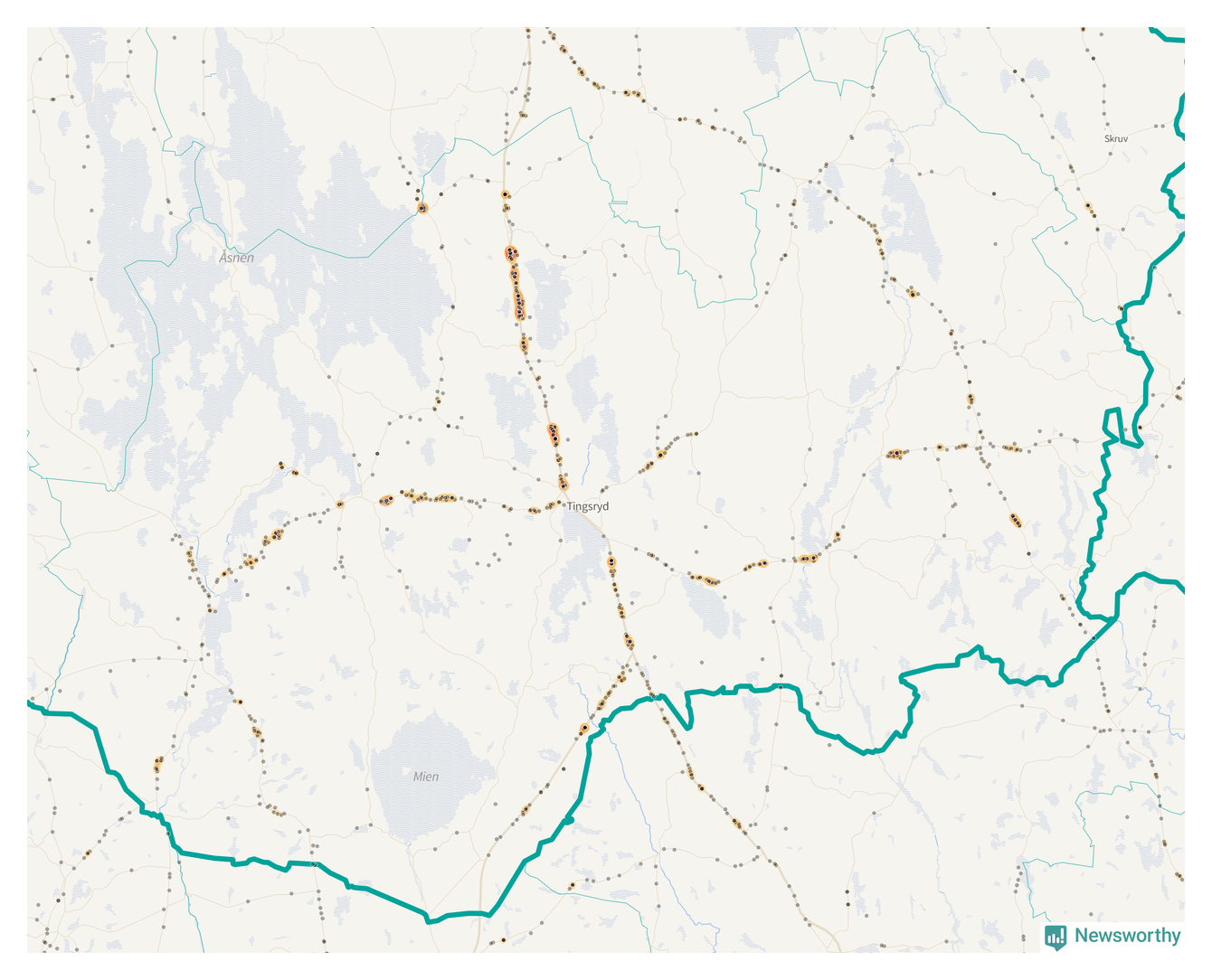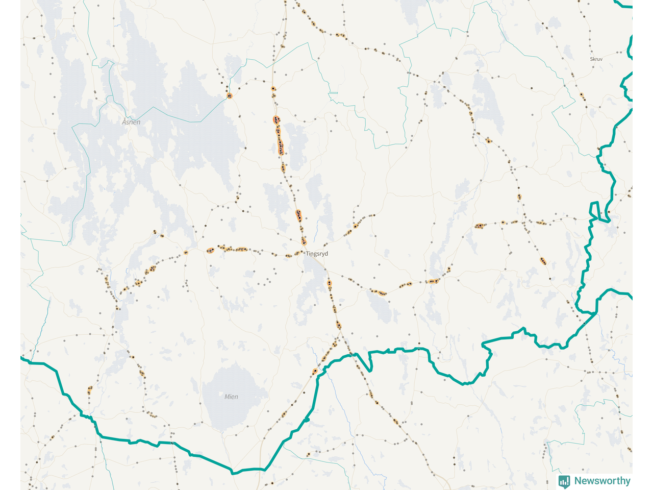 De mest viltolycksdrabbade vägarna i Tingsryd 2020–2024