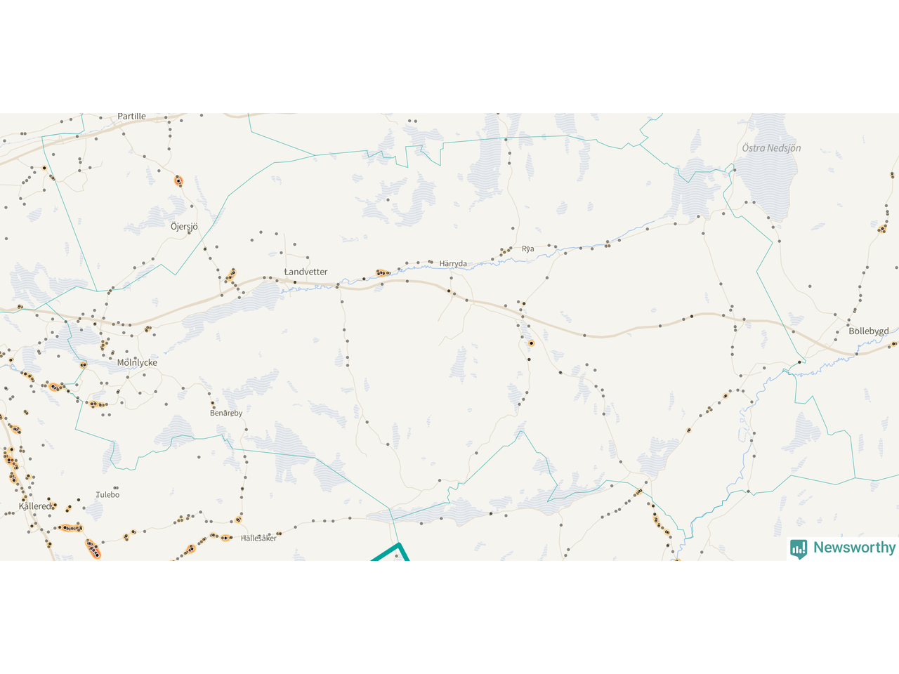 Flest olyckor i kommunen – 26 stycken – har skett längs väg 549 (Härrydavägen/Gamla Partillevägen). Av dessa orsakades 19 av rådjur. Längs väg 40 har 24 viltolyckor rapporterats under motsvarande period.