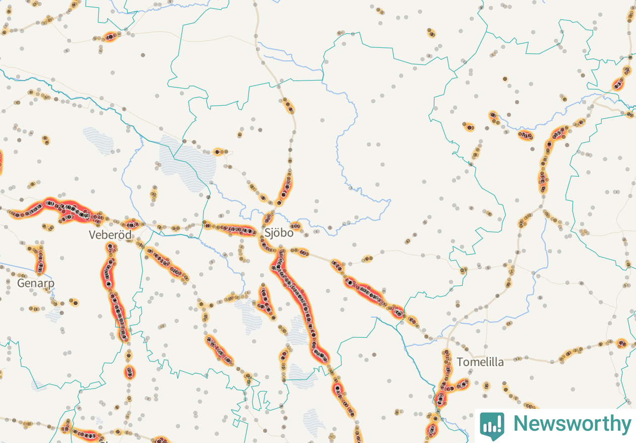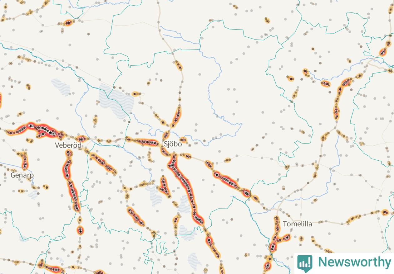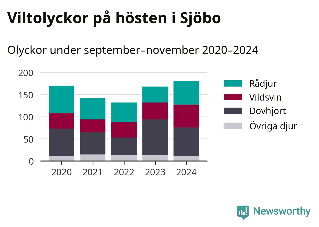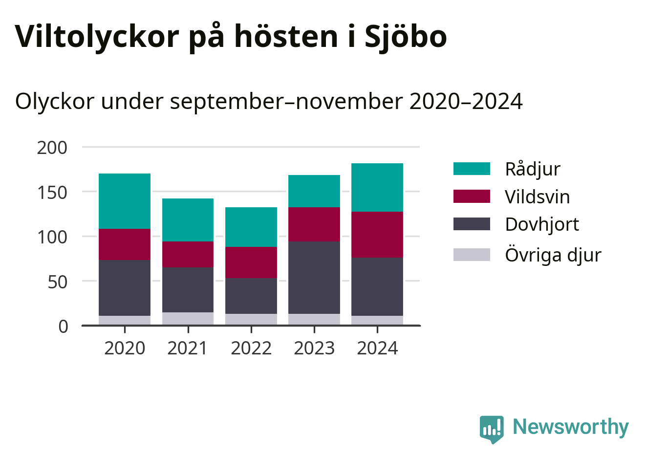 På hösten ökar risken för viltolyckor längs vägarna. Under de senaste fem höstarna har totalt 793 olyckor rapporterats i Sjöbo kommun – och antalet olyckor med vildsvin ökar stadigt. Här är de mest drabbade vägarna.