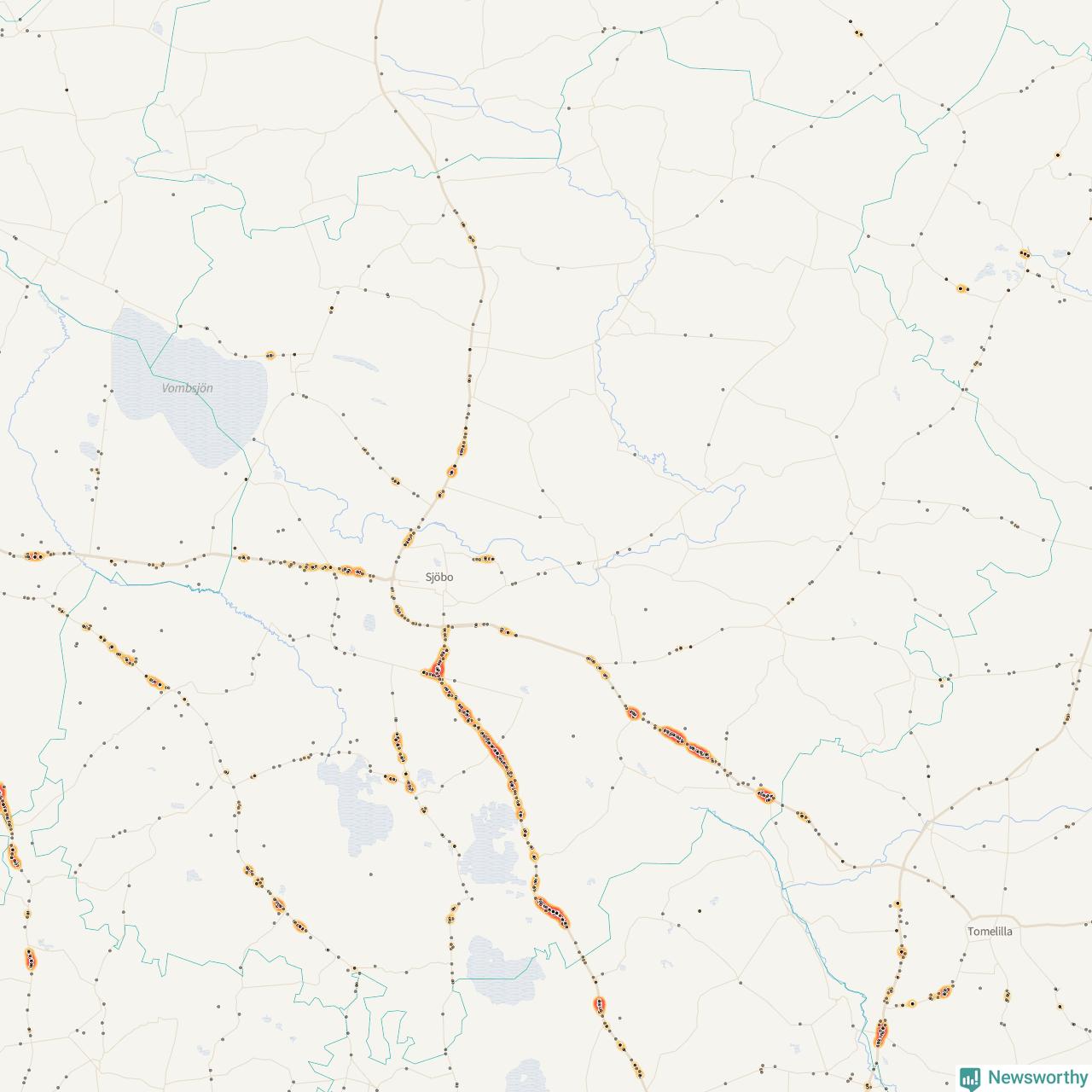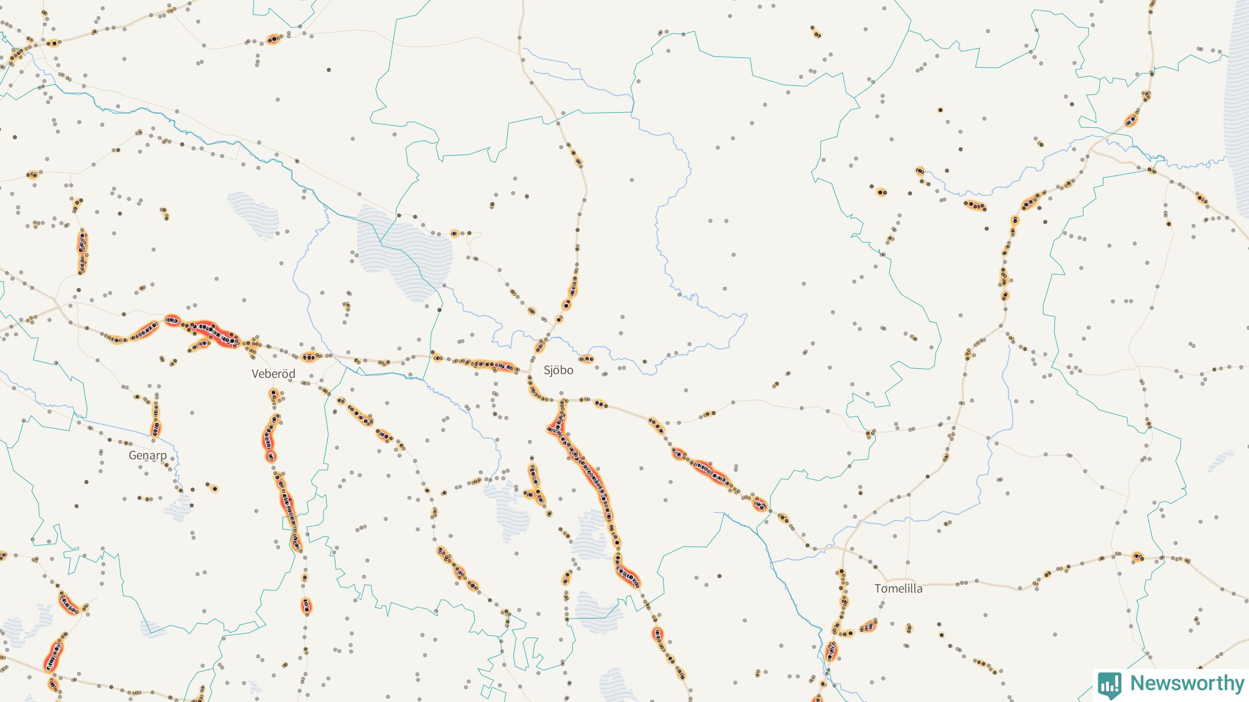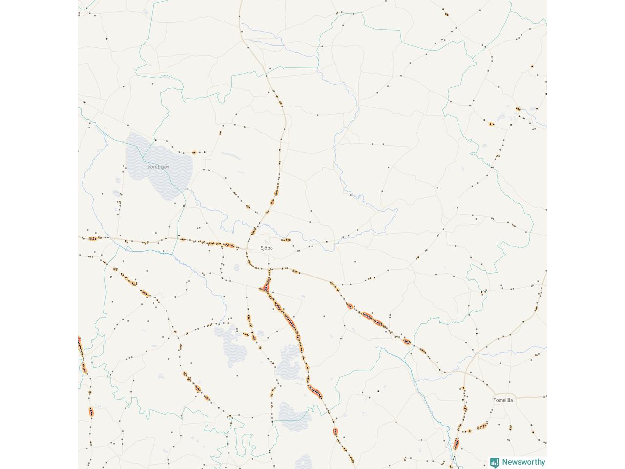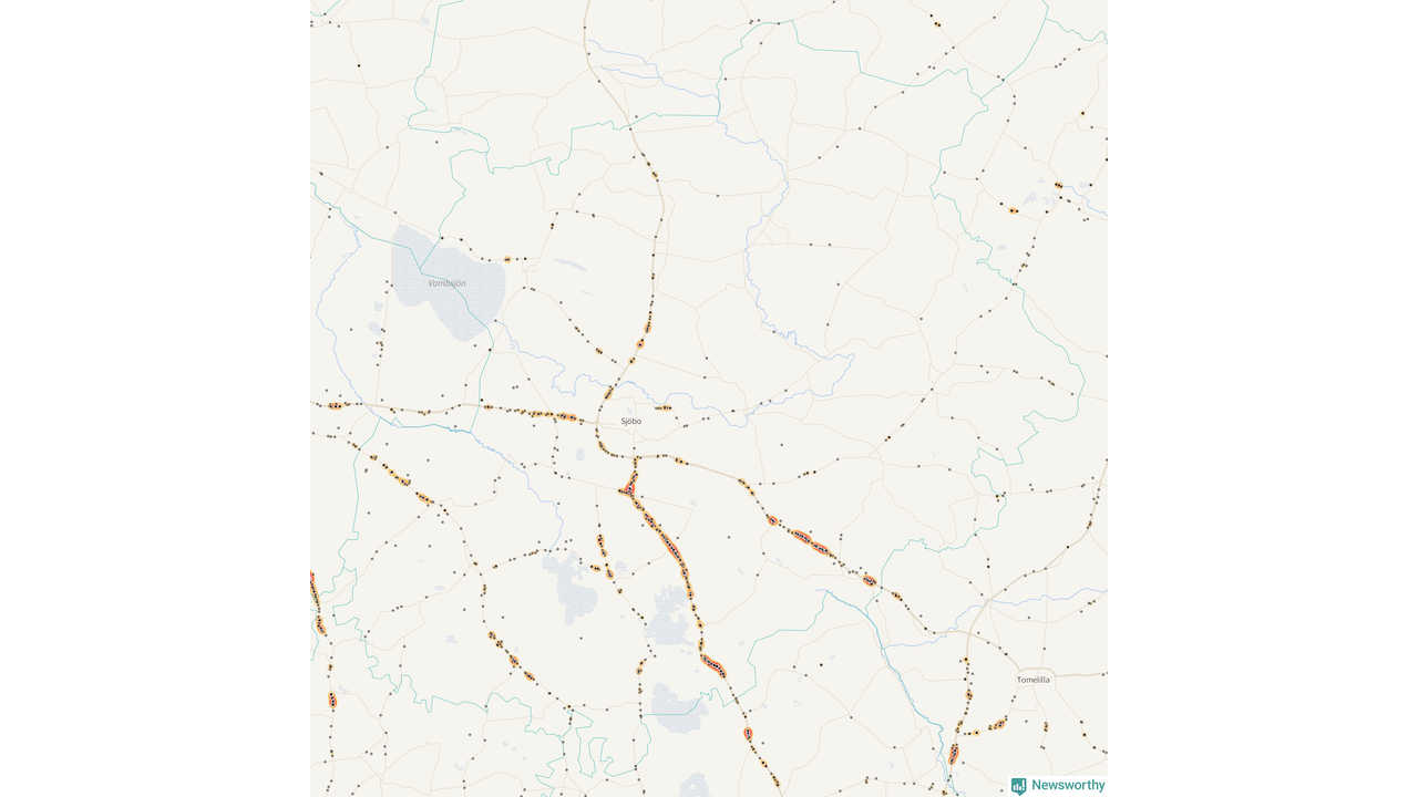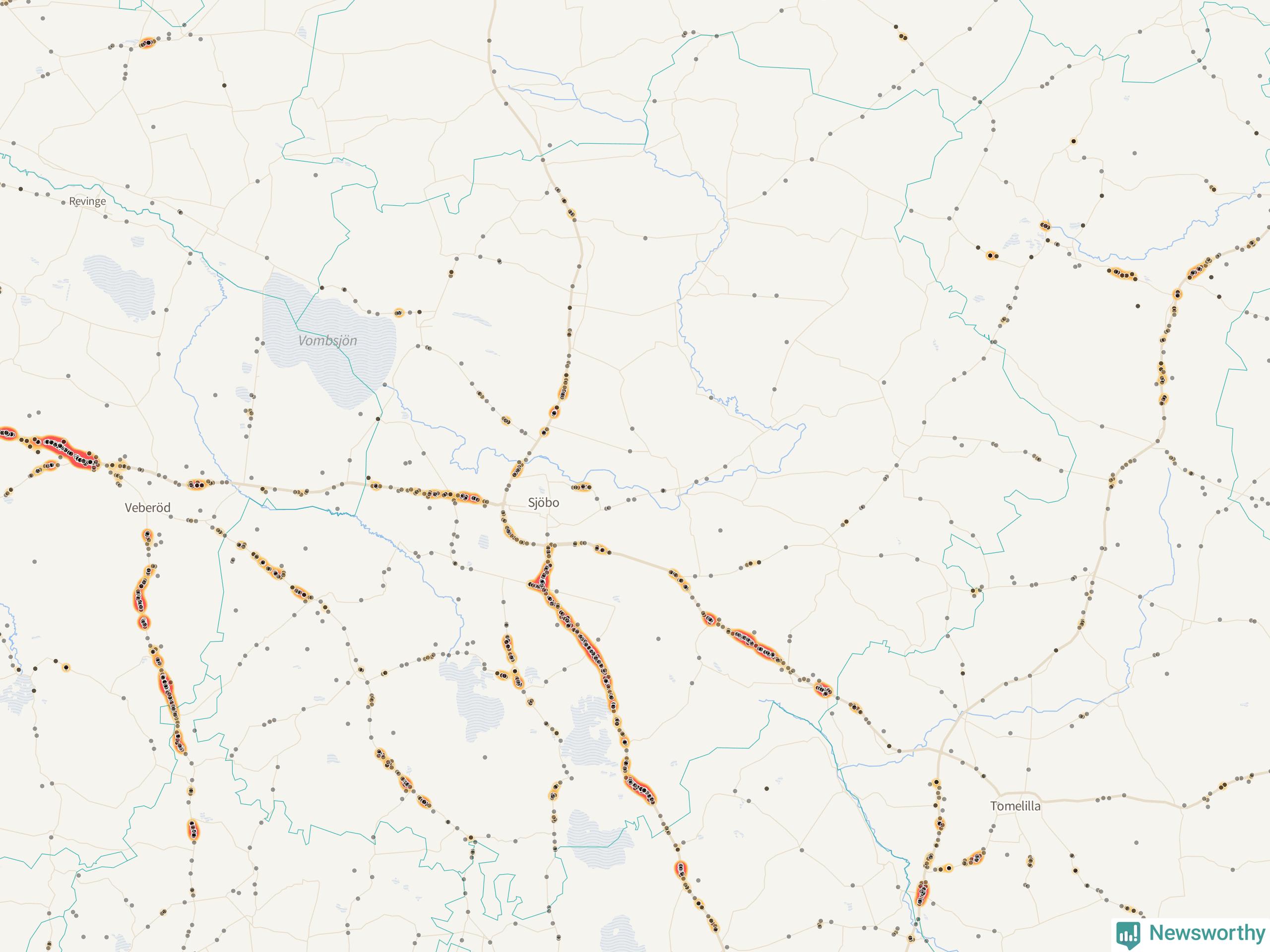 På hösten ökar risken för viltolyckor längs vägarna. Under de senaste fem höstarna har totalt 793 olyckor rapporterats i Sjöbo kommun – och antalet olyckor med vildsvin ökar stadigt. Här är de mest drabbade vägarna.