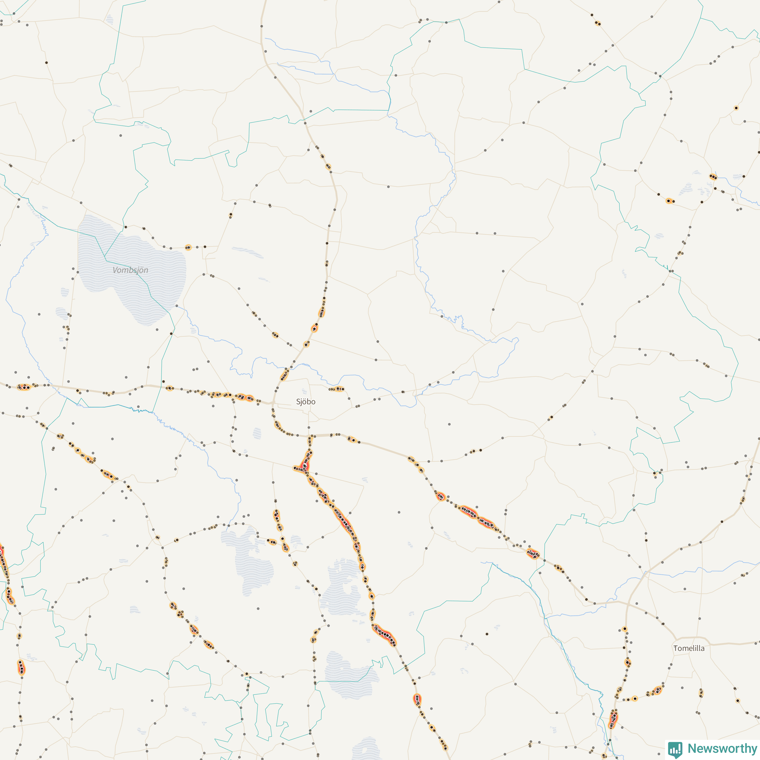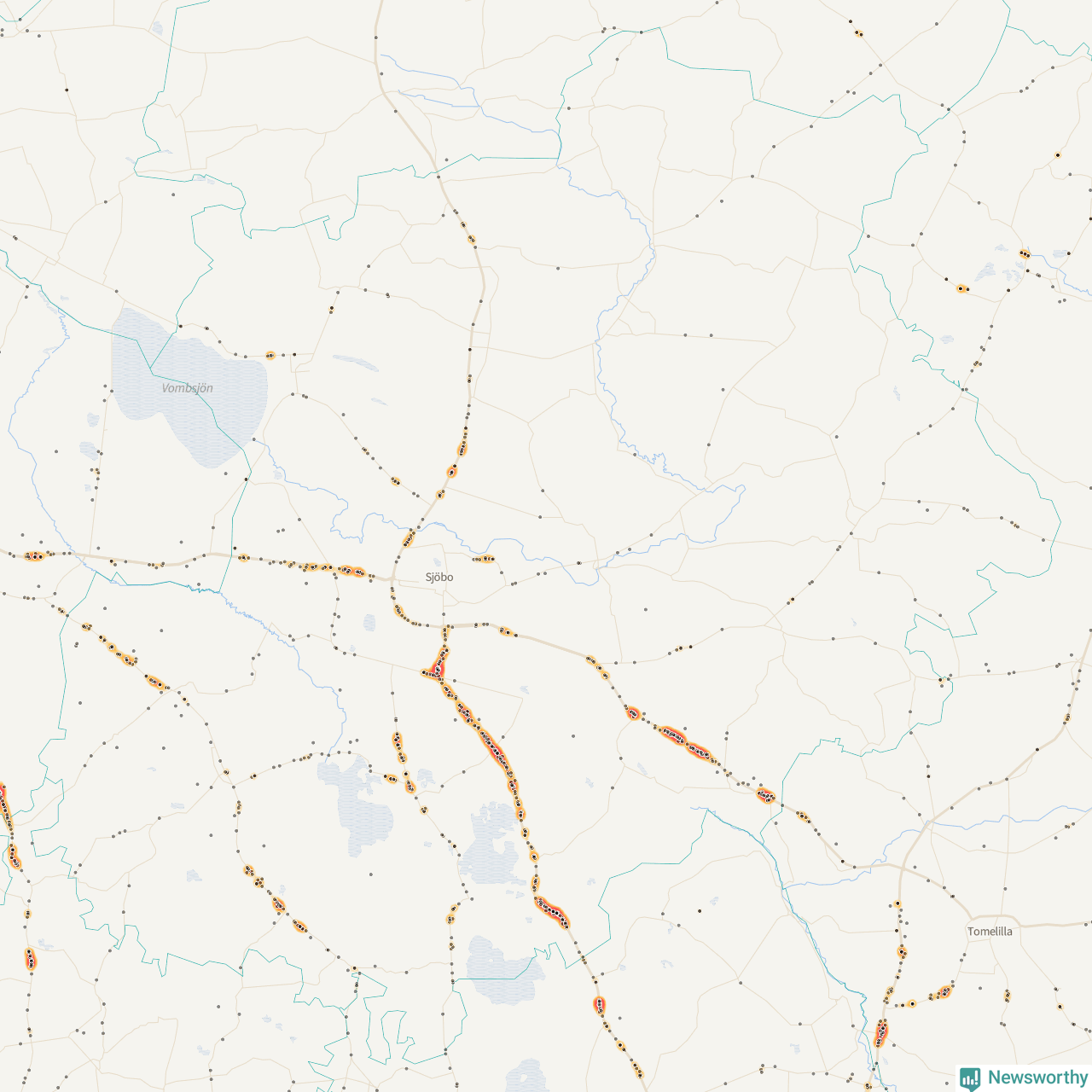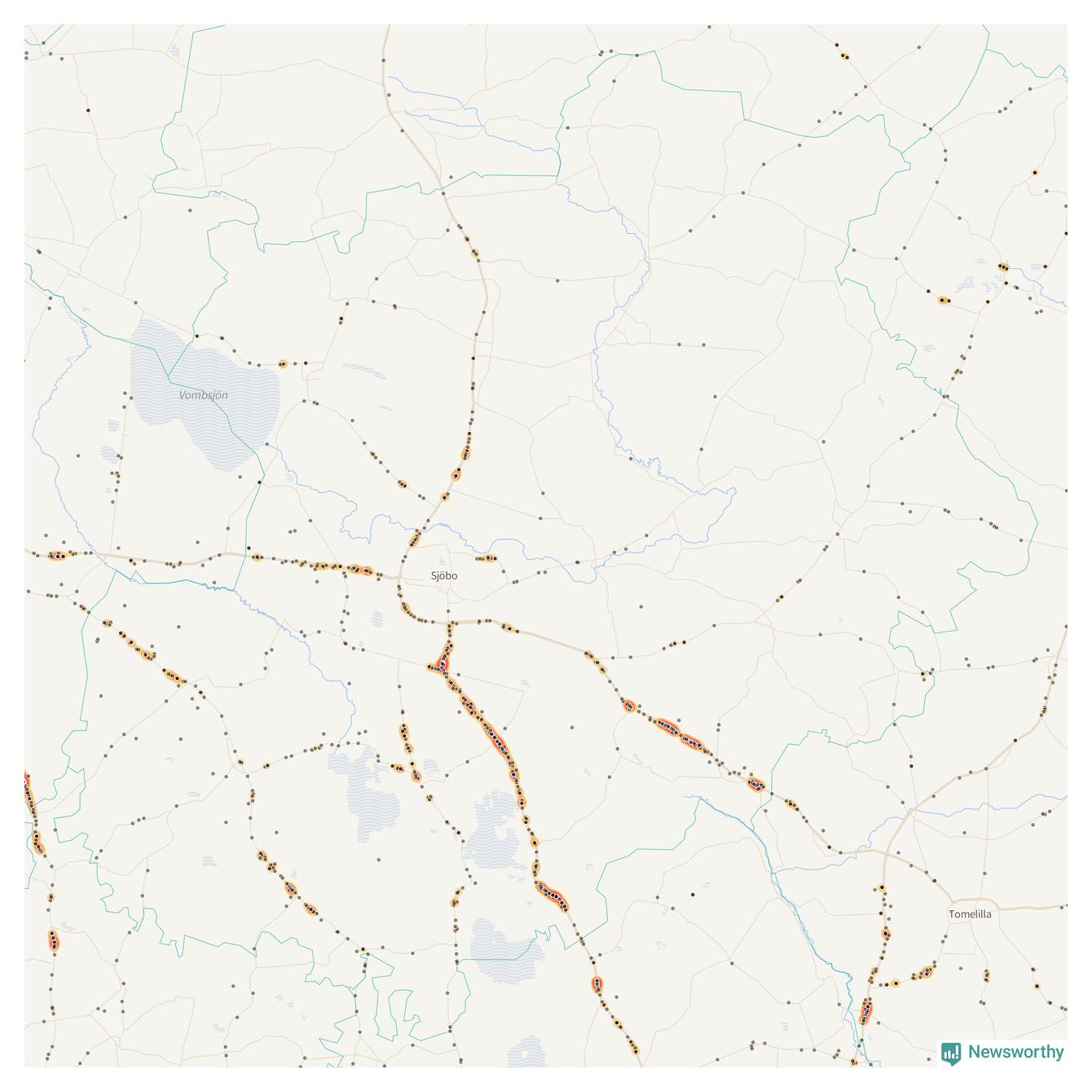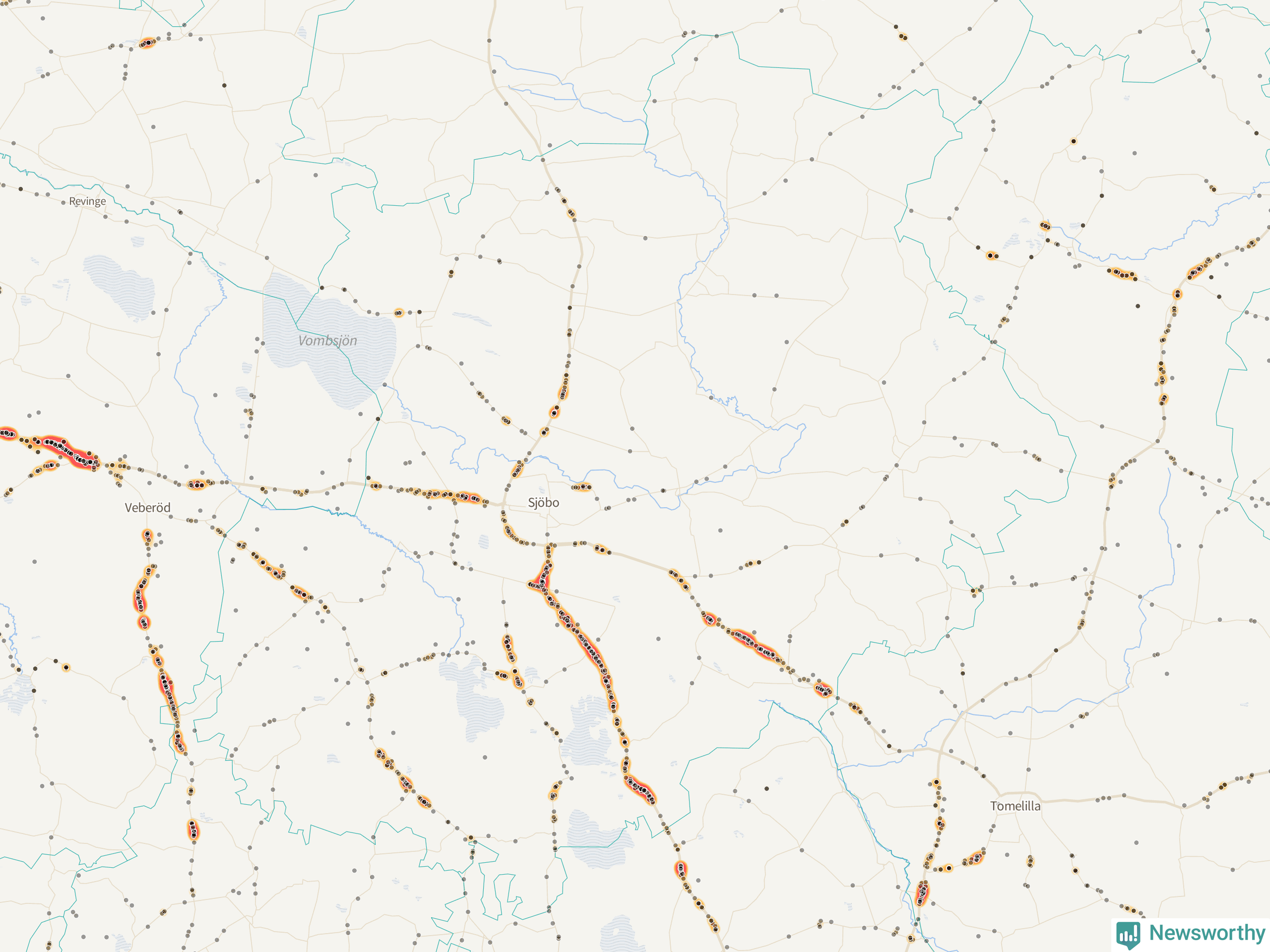 På hösten ökar risken för viltolyckor längs vägarna. Under de senaste fem höstarna har totalt 793 olyckor rapporterats i Sjöbo kommun – och antalet olyckor med vildsvin ökar stadigt. Här är de mest drabbade vägarna.