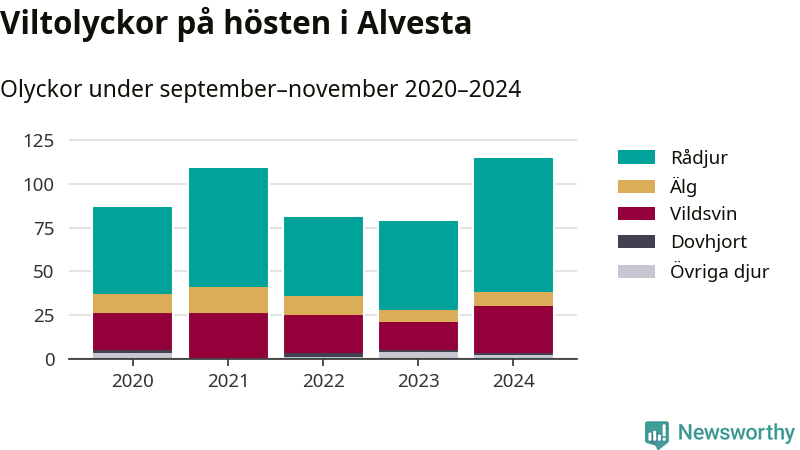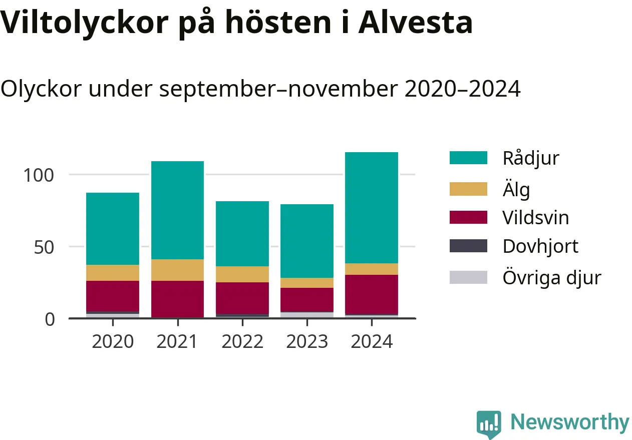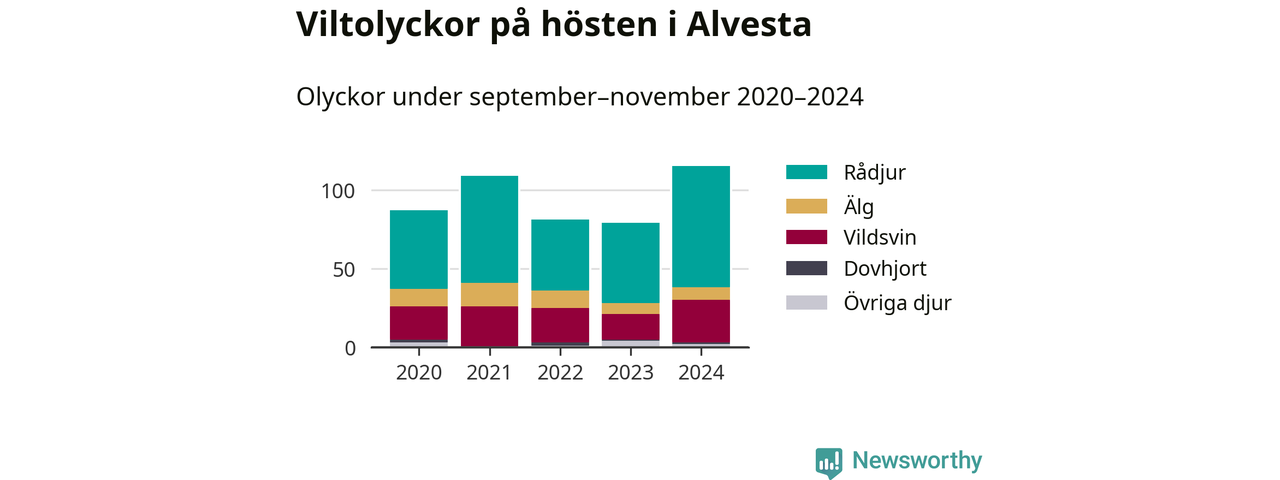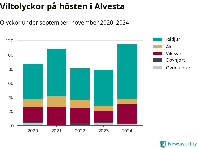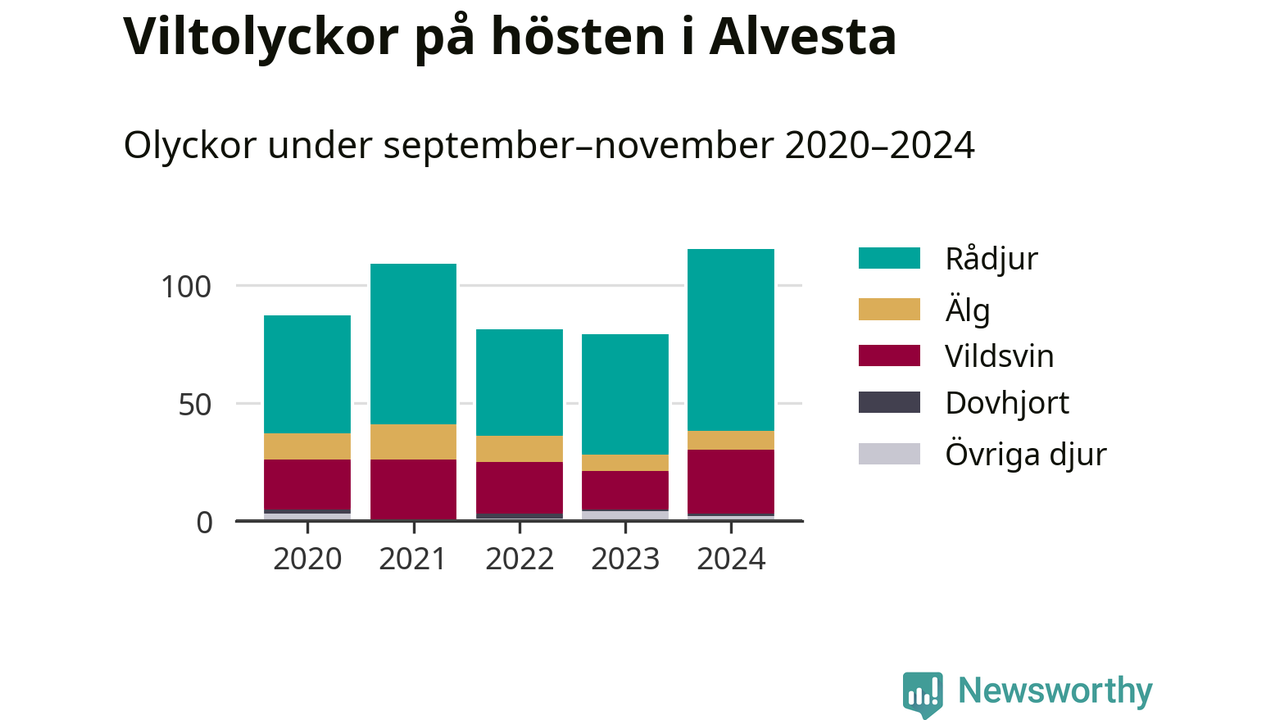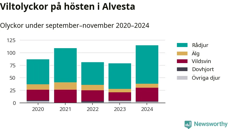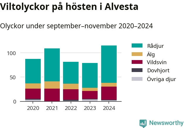Under de senaste höstarna har antalet viltolyckor ökat i Sverige. I fjol höst noterades också flest viltolyckor i Alvesta hittills under 2020-talet, totalt 115 stycken.