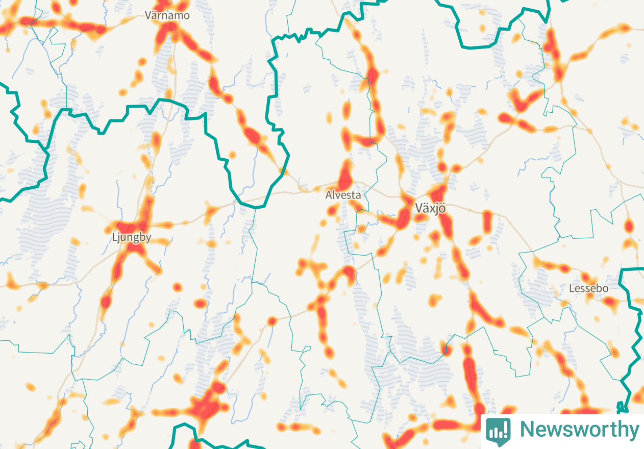 På hösten ökar risken för viltolyckor längs vägarna. Under de senaste fem höstarna har totalt 471 olyckor rapporterats i Alvesta kommun. Här är de mest drabbade vägarna.